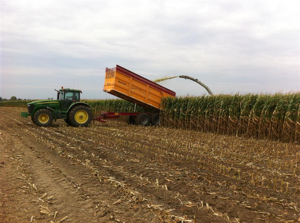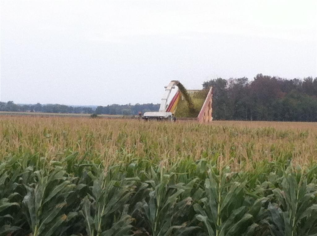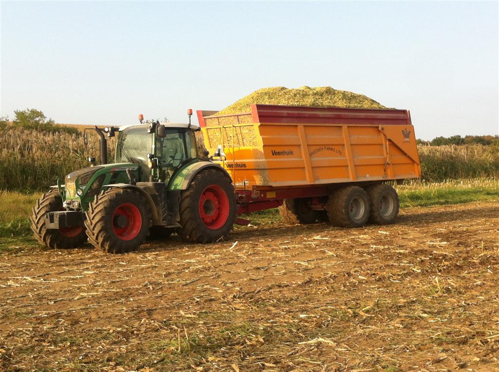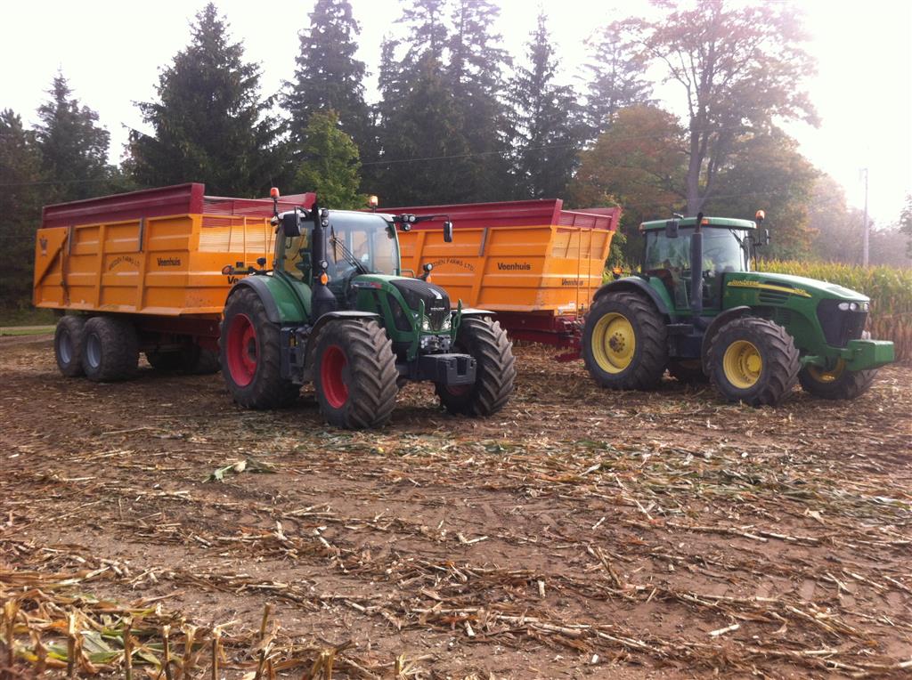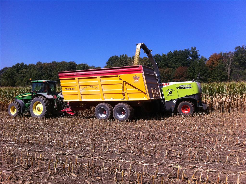 Maishakselen bij Greinden Farms LTD ON, Canada ook daar volop in de mais en dan ook nog met Veenhuis kipwagens