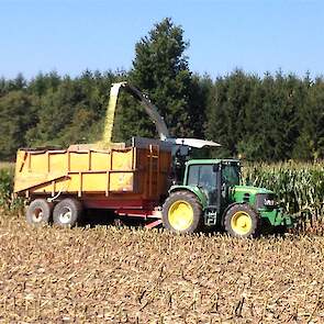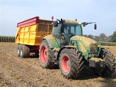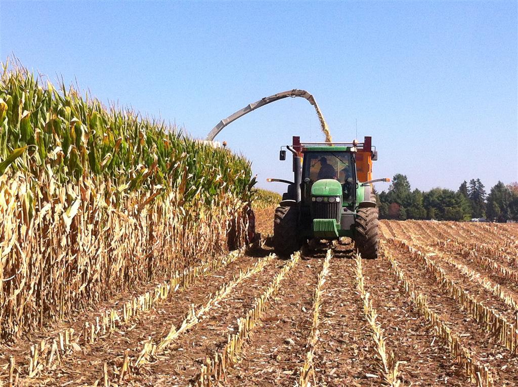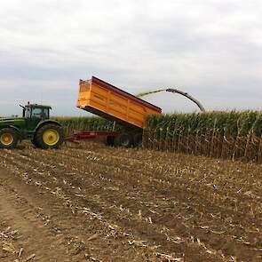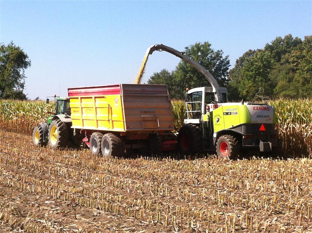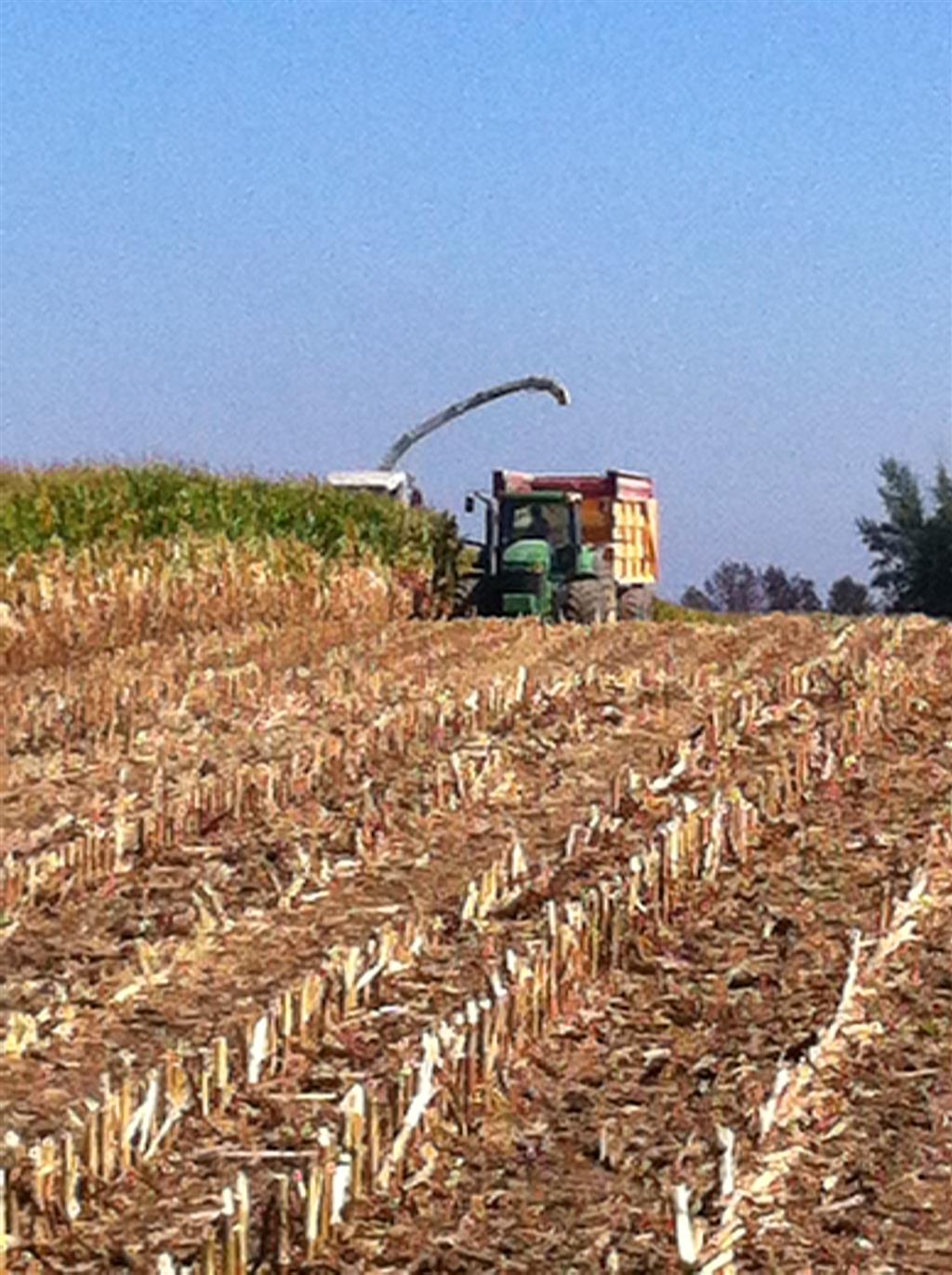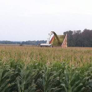 Maishakselen bij Greinden Farms LTD ON, Canada ook daar volop in de mais en dan ook nog met Veenhuis kipwagens