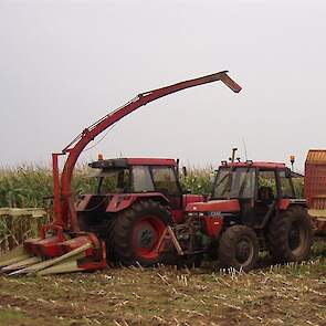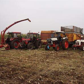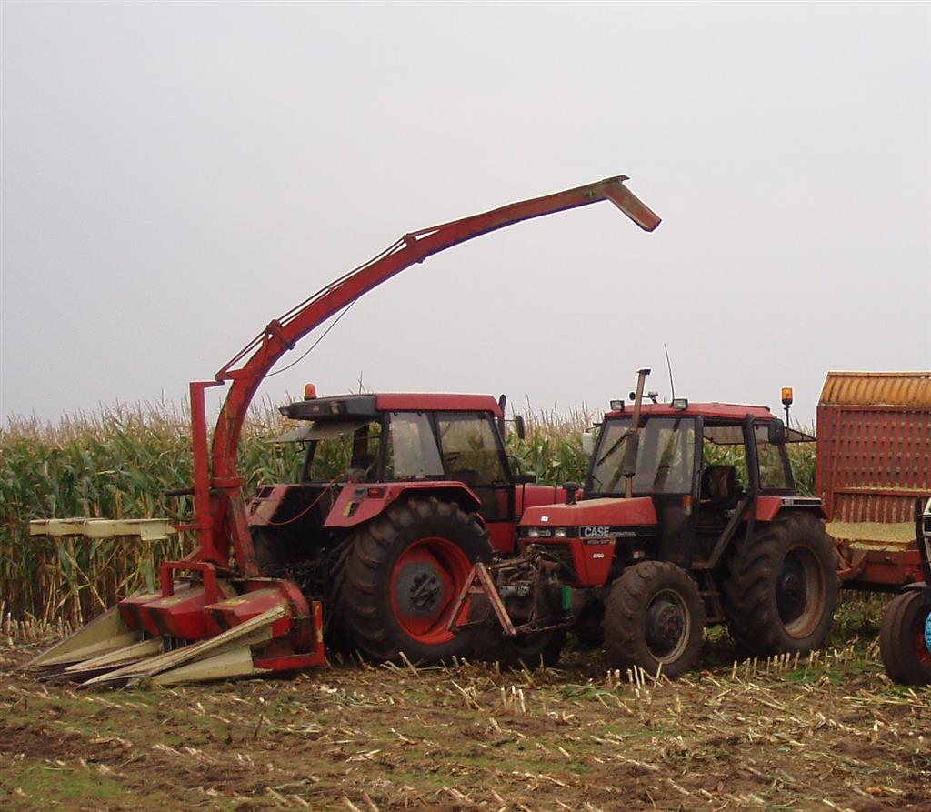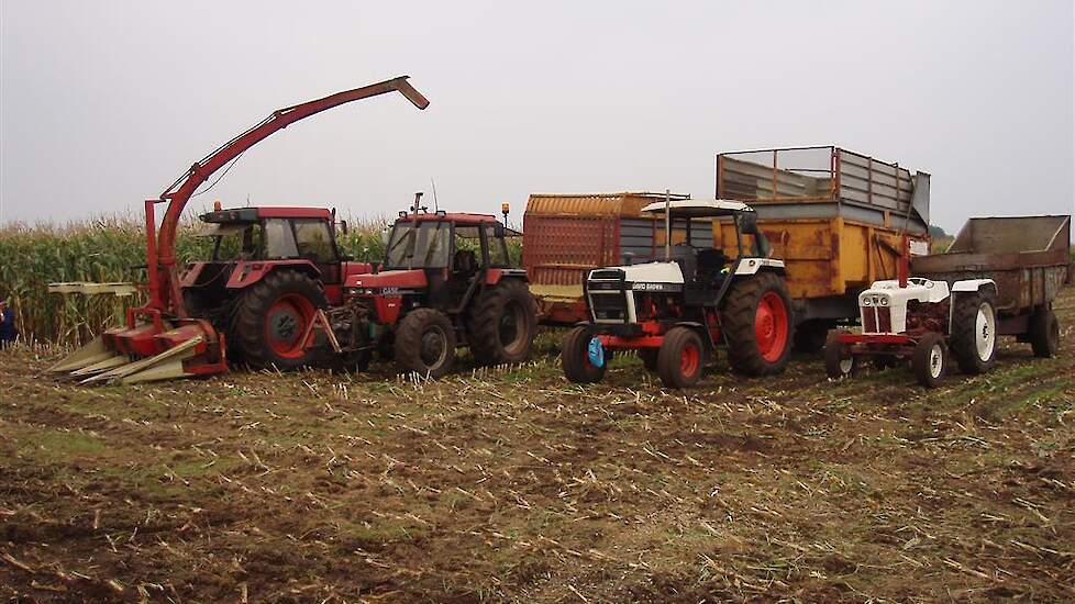 Mais oogst bij Van Noord in Dwingeloo Case 5140 met Vicon 3 rijer MH 240sen David brown voor het transport en op de bult een Sanderson