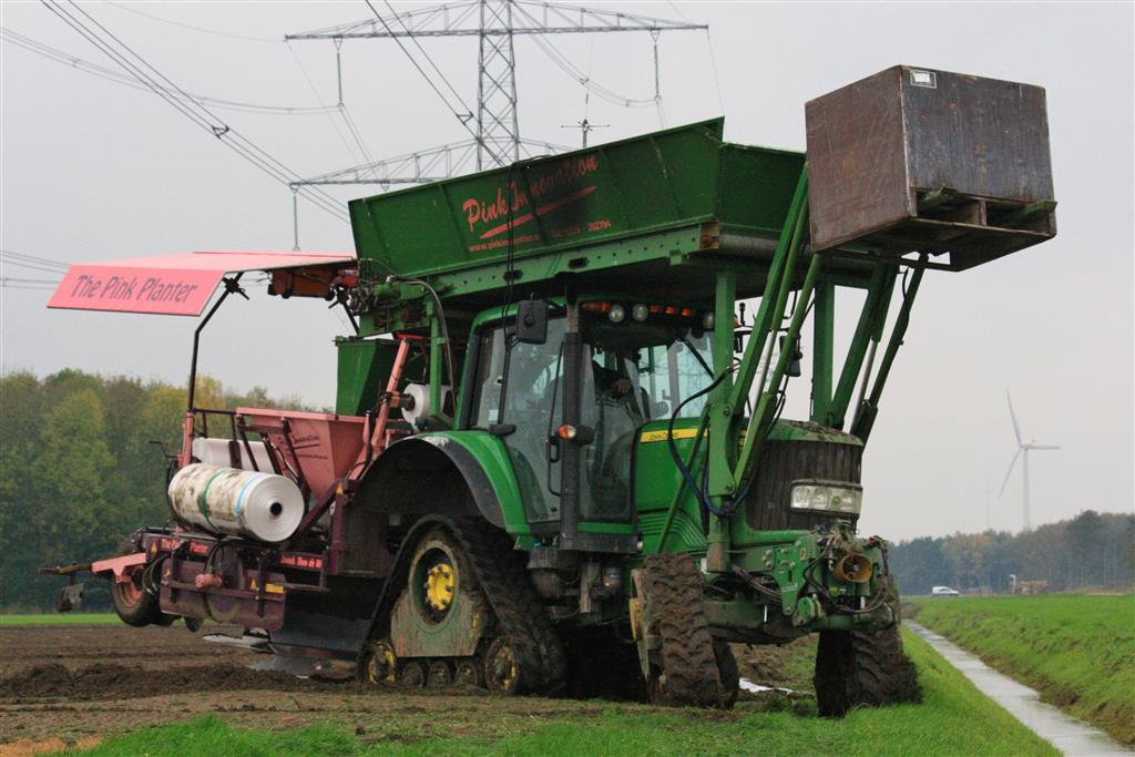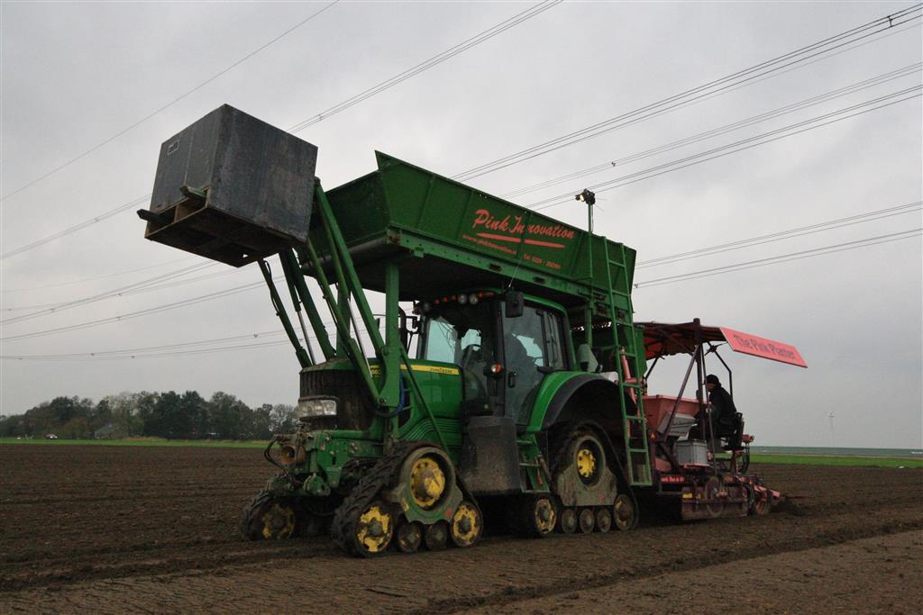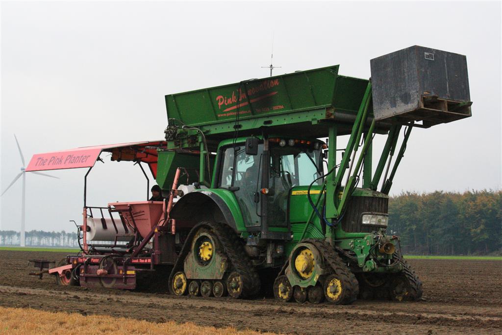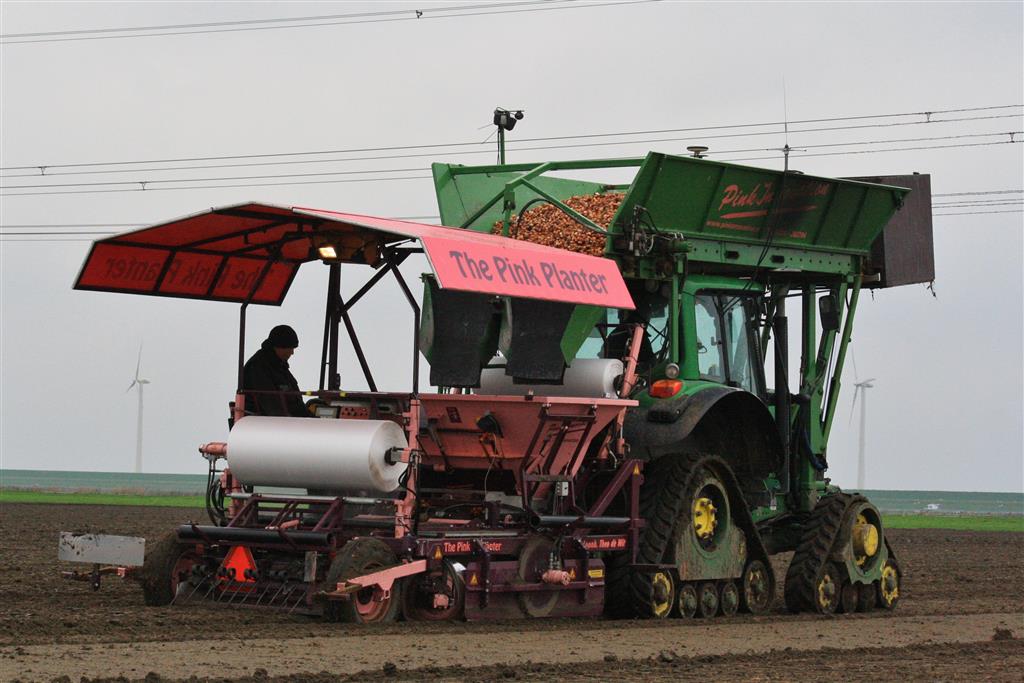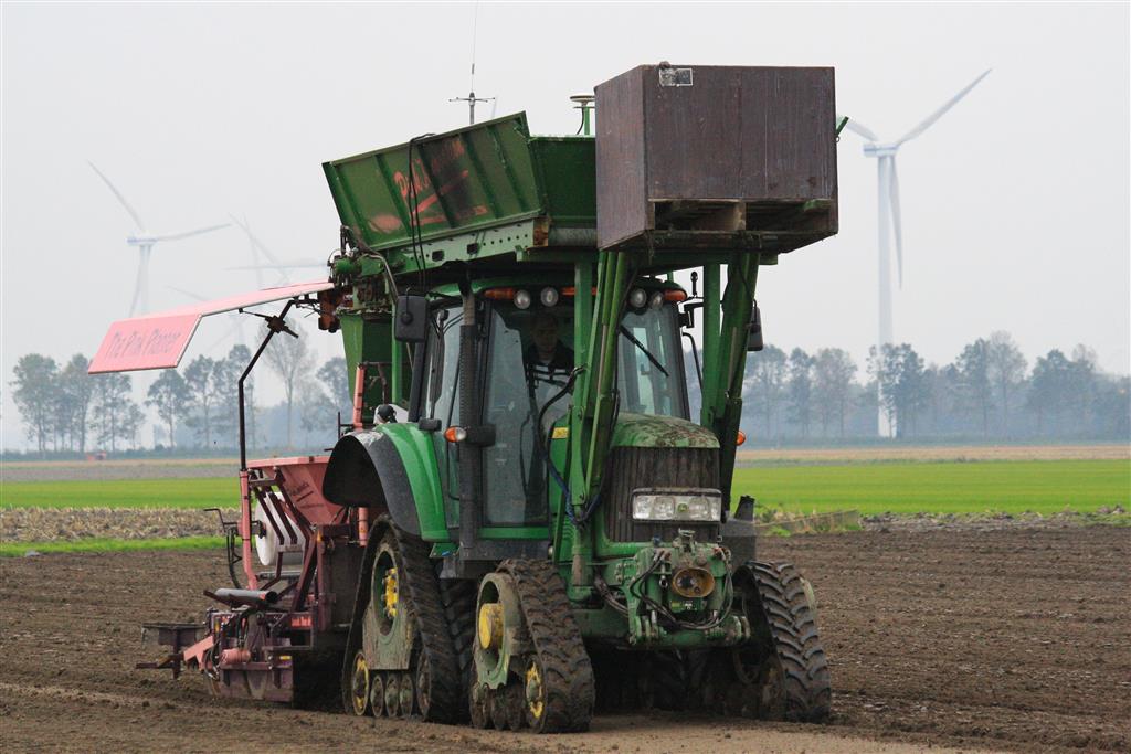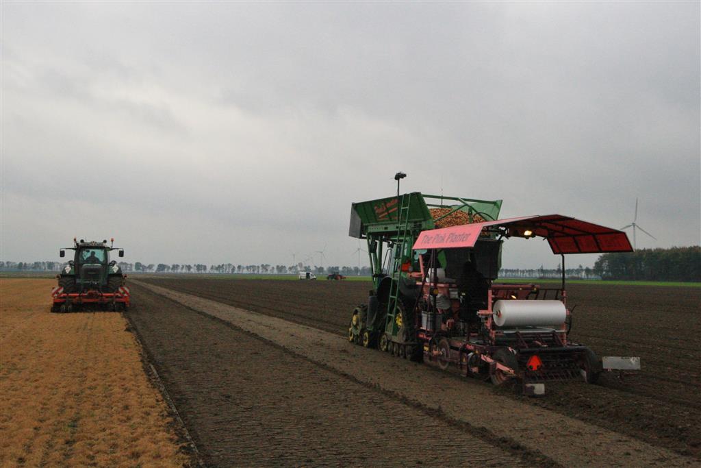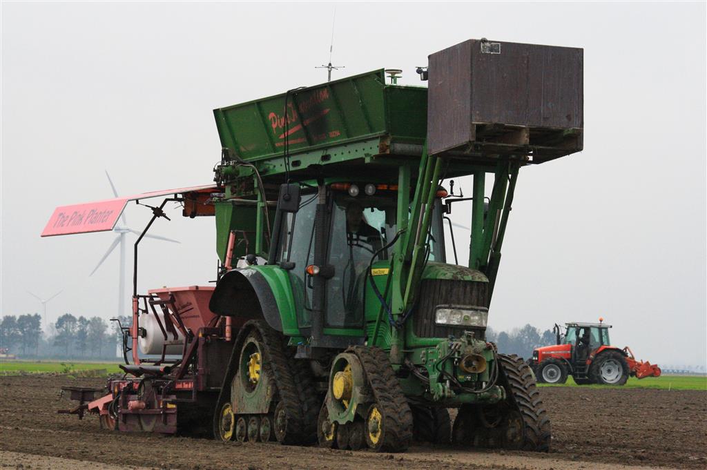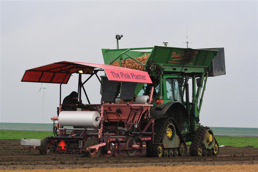tulpenbollen planten in de Flevopolder. Dit gebeurde door Loonbedrijf Theo de Wit uit Berkhout ( Noord - Holland ) Speciaal voor de tulpenteelt komt het bedrijf naar Flevoland, om ook daar te planten en te rooien