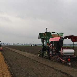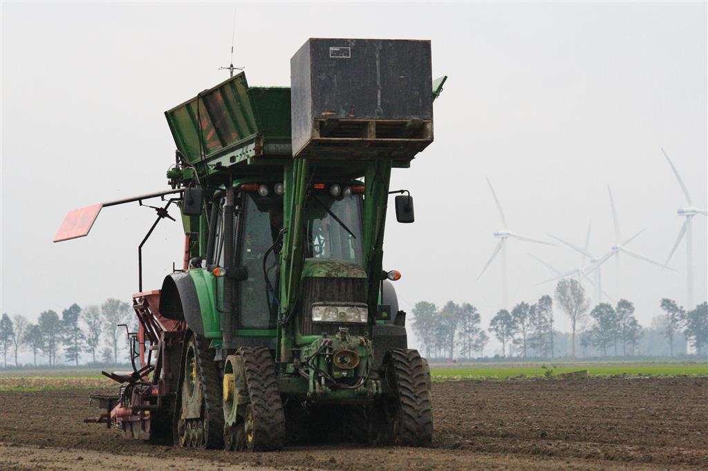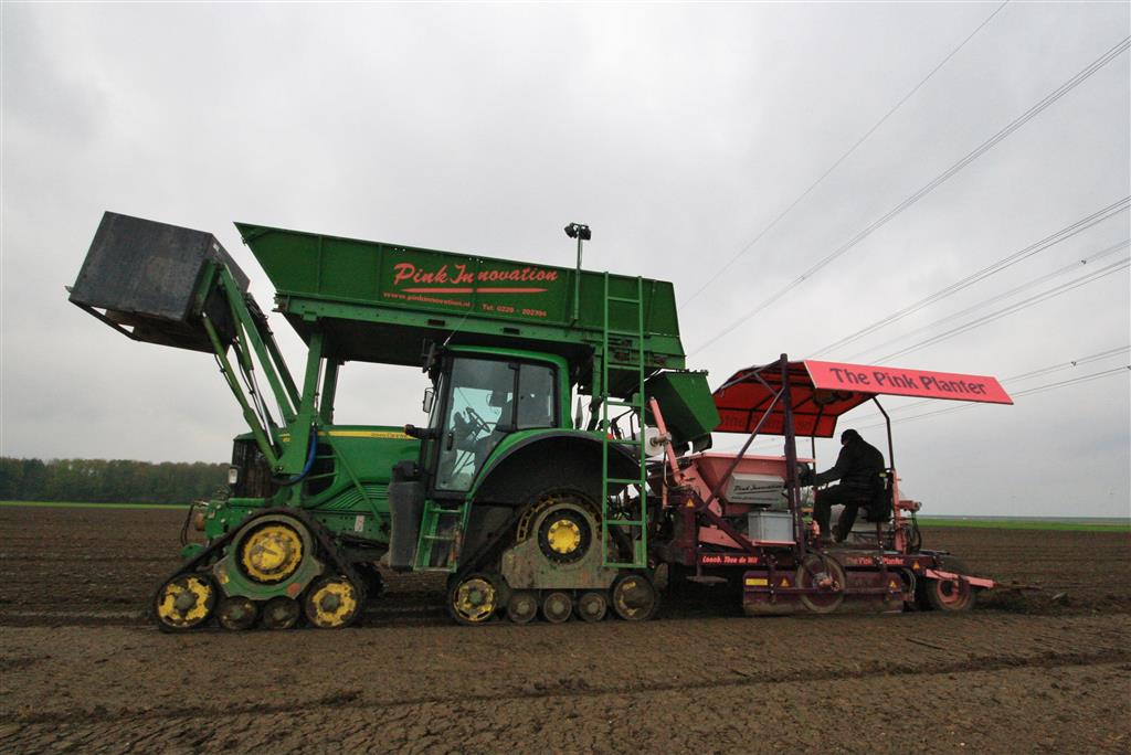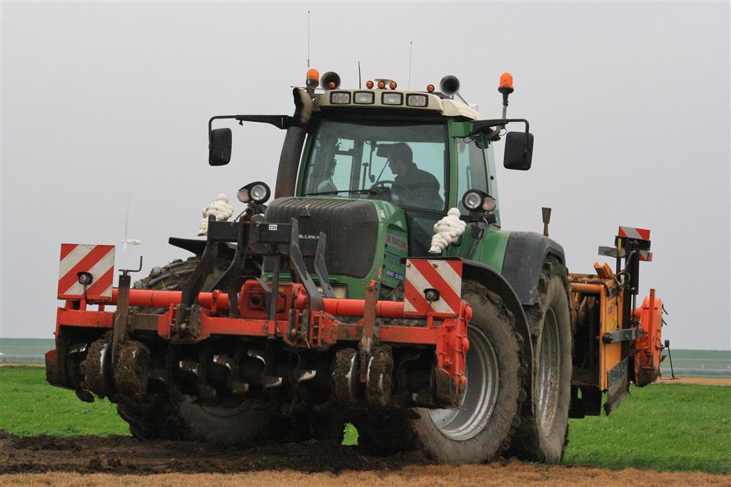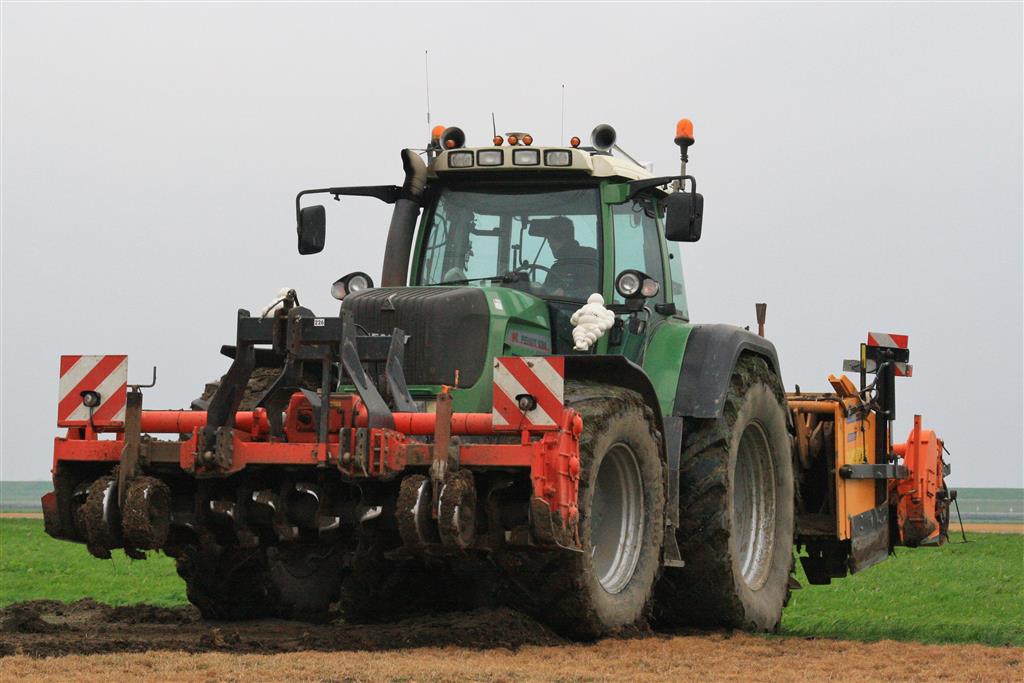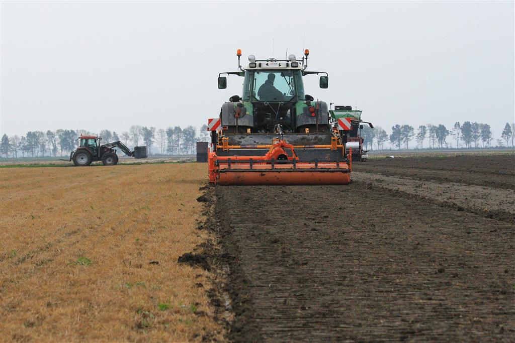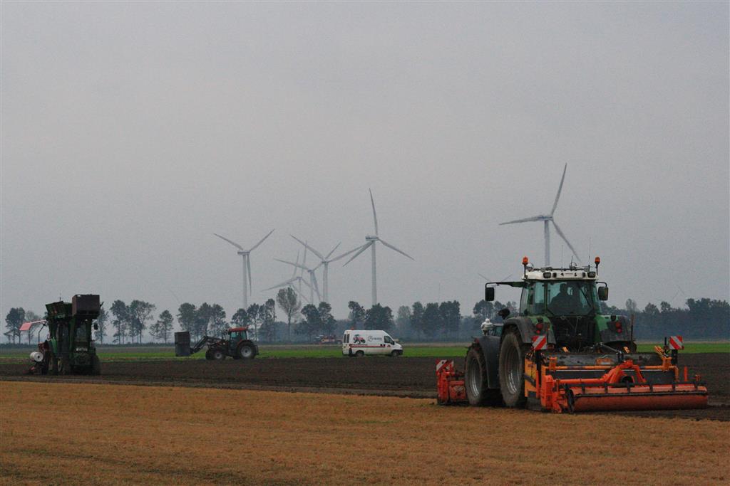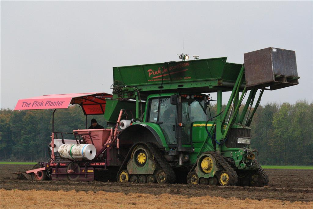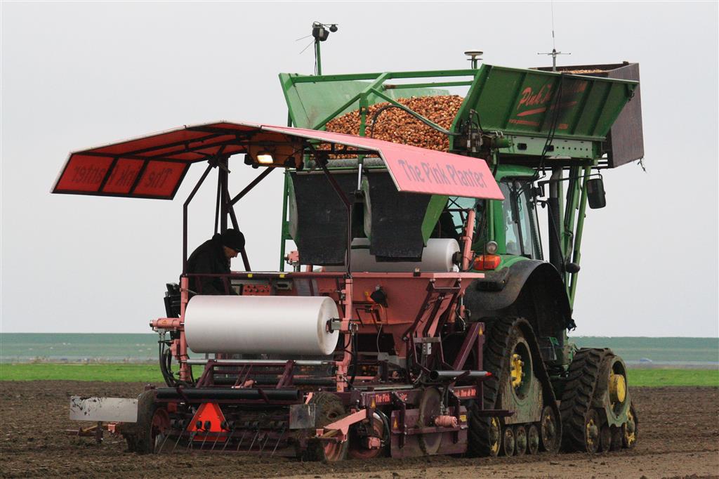 tulpenbollen planten in de Flevopolder. Dit gebeurde door Loonbedrijf Theo de Wit uit Berkhout ( Noord - Holland ) Speciaal voor de tulpenteelt komt het bedrijf naar Flevoland, om ook daar te planten en te rooien