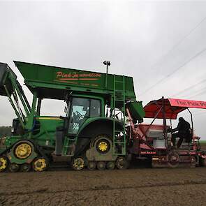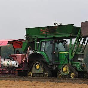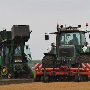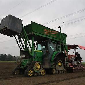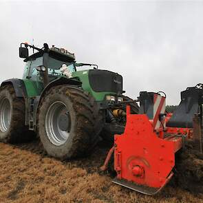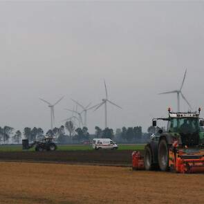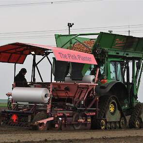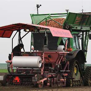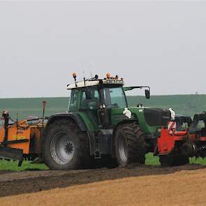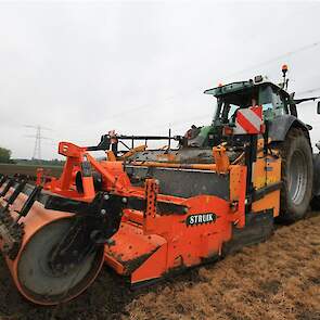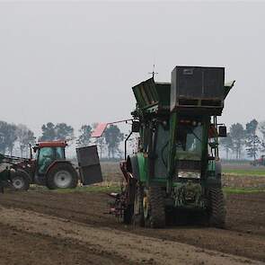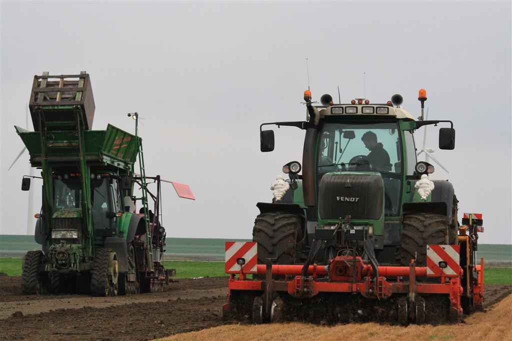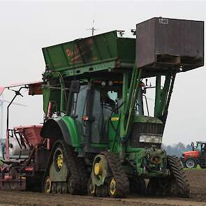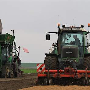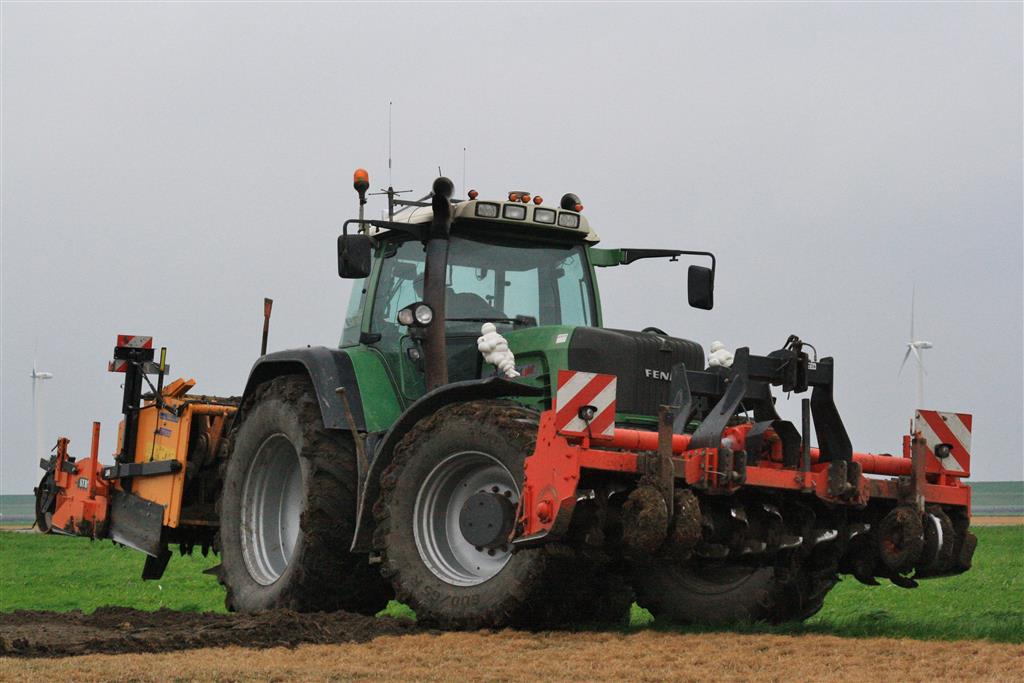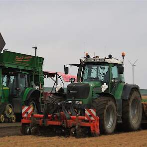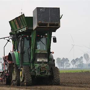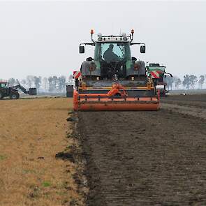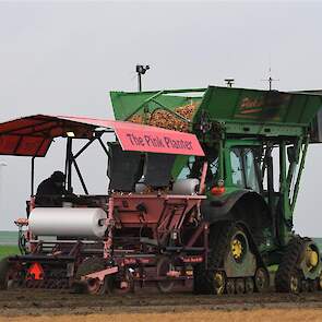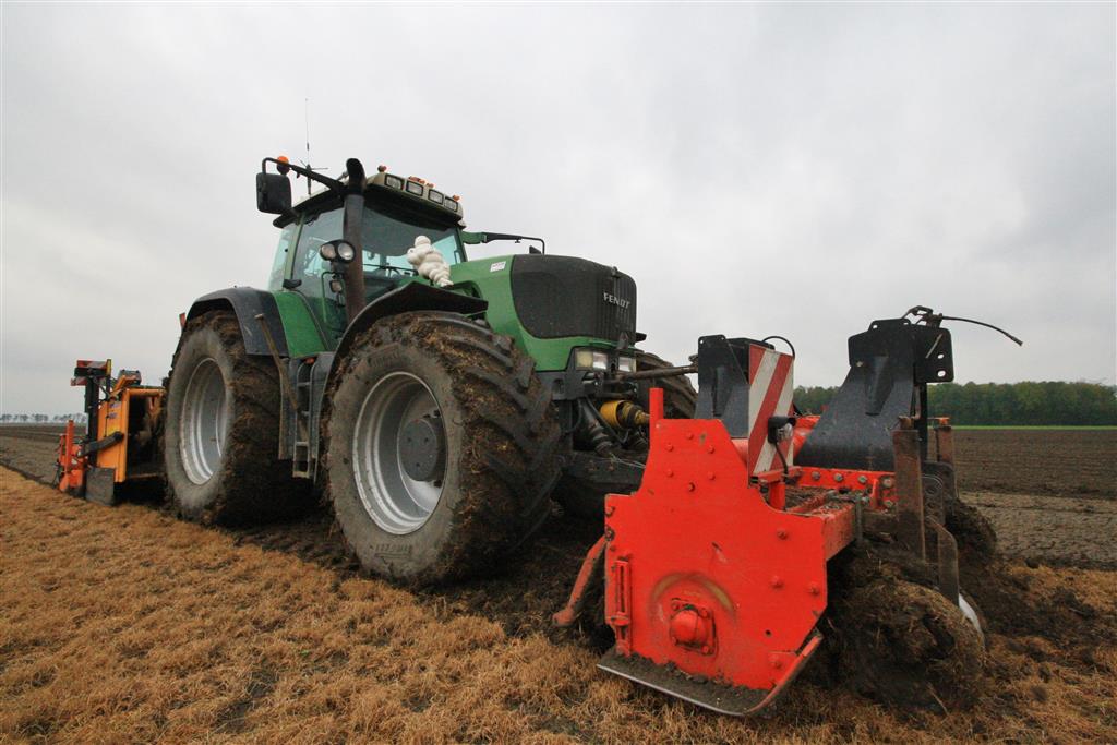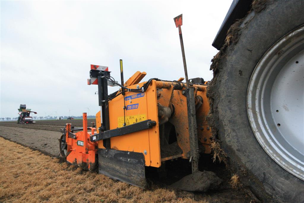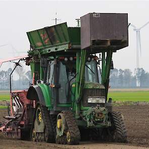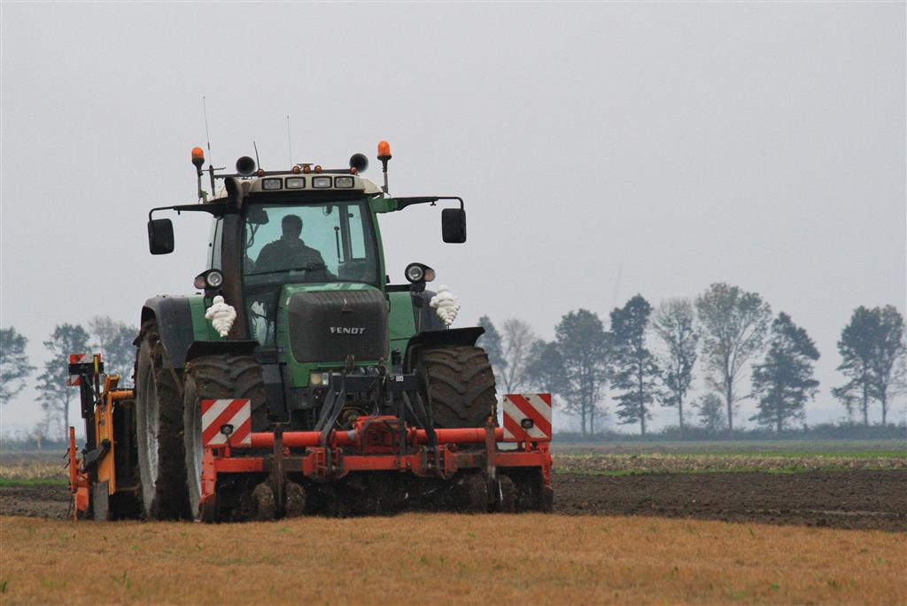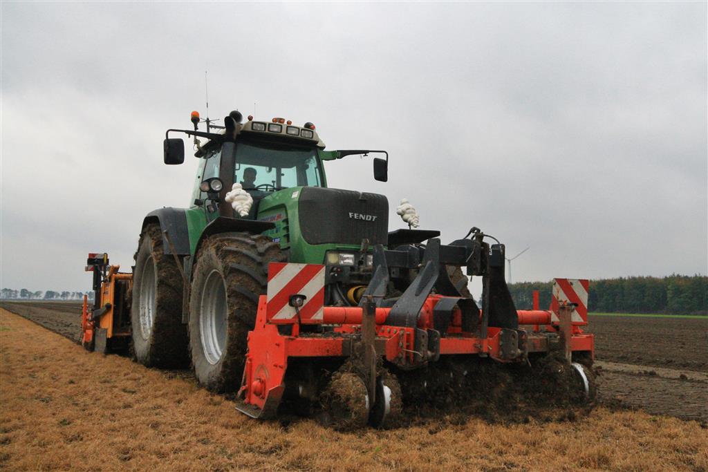tulpenbollen planten in de Flevopolder. Dit gebeurde door Loonbedrijf Theo de Wit uit Berkhout ( Noord - Holland ) Speciaal voor de tulpenteelt komt het bedrijf naar Flevoland, om ook daar te planten en te rooien
