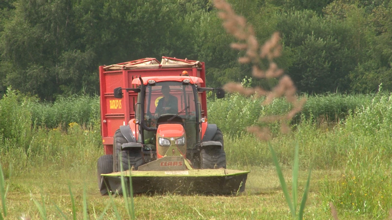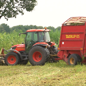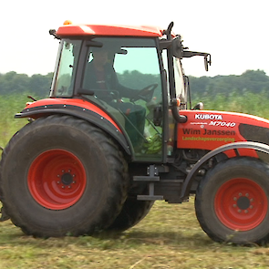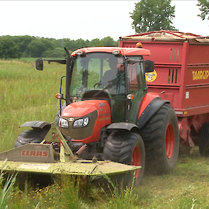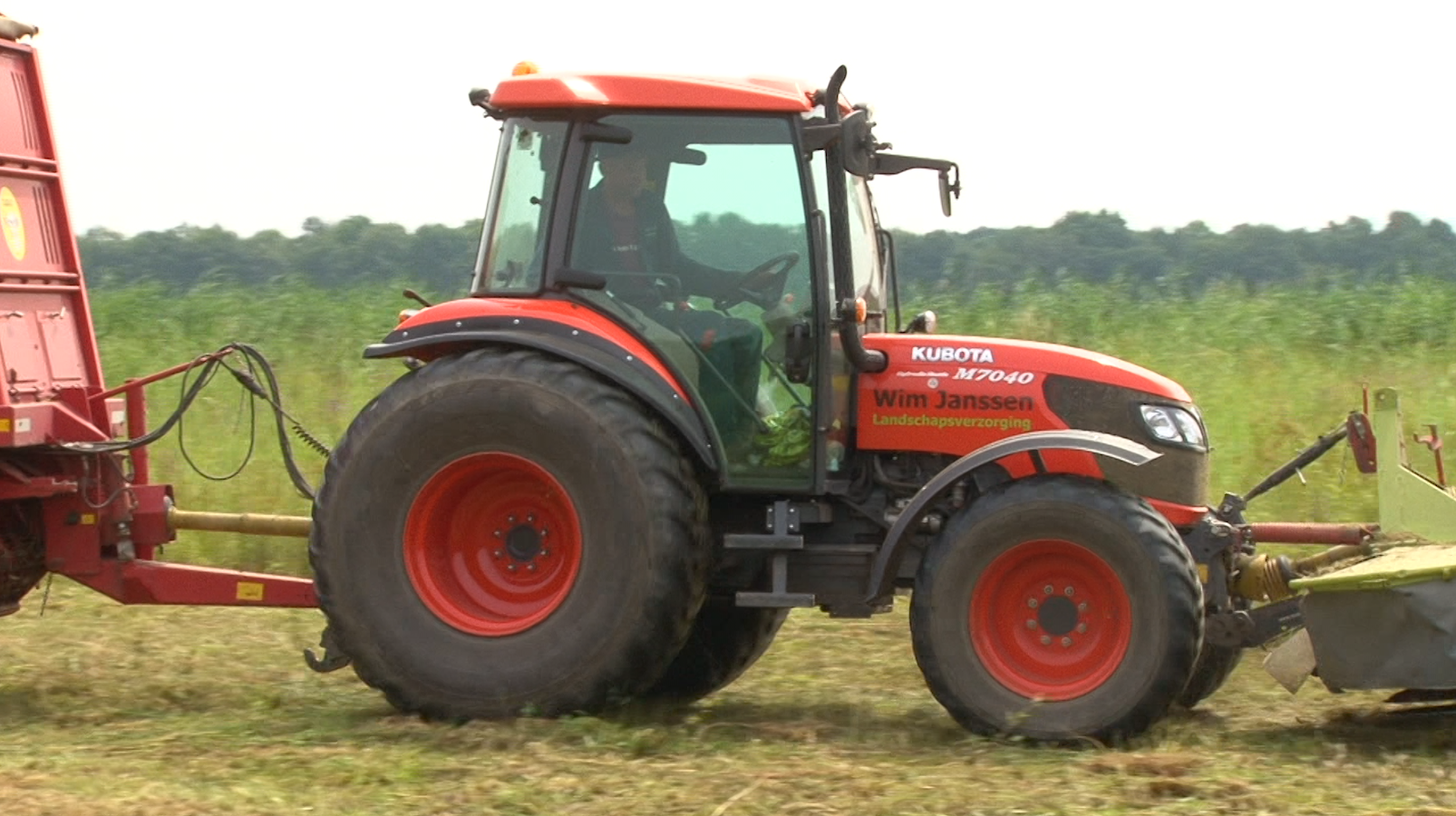 Natuurbeheer met Kubota M7040 met een Taarup 1015 en een Claas frontmaaier.