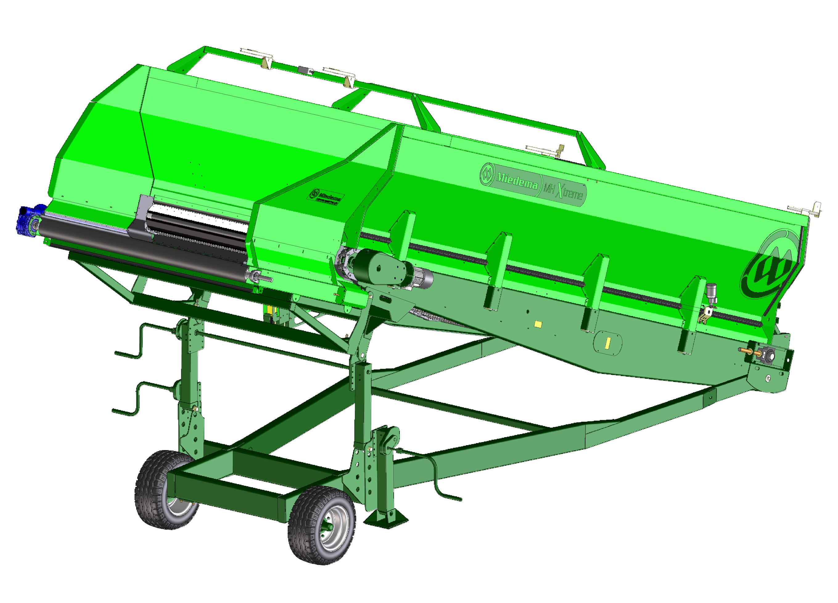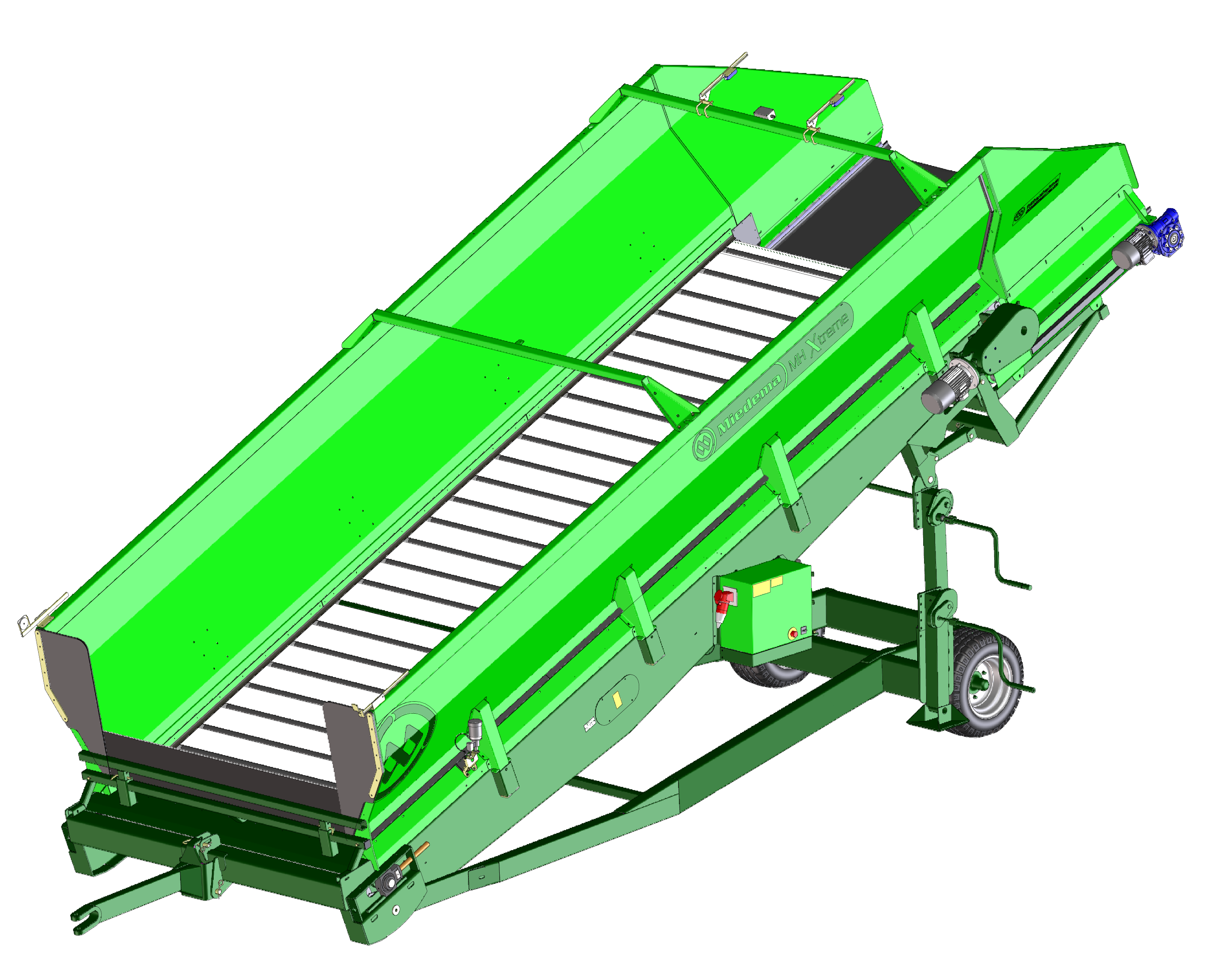 Onder de bodemmat is een dubbele rollenbaan aangebracht, extra zware aandrijfmotoren zorgen voor de aandrijving van de bodemmat via een zwaardere bodemketting met automatische smering en een terugloopblokkering.