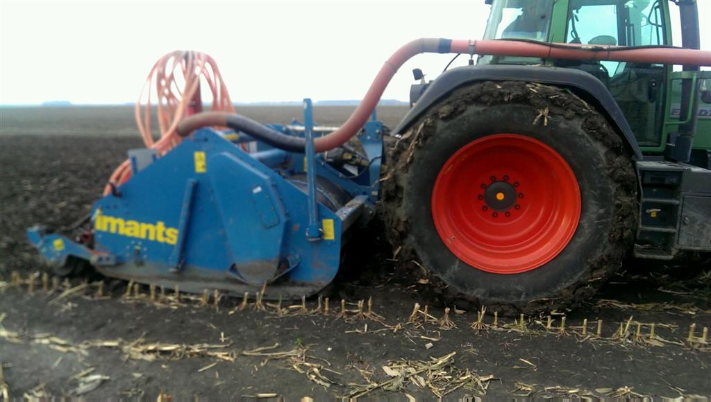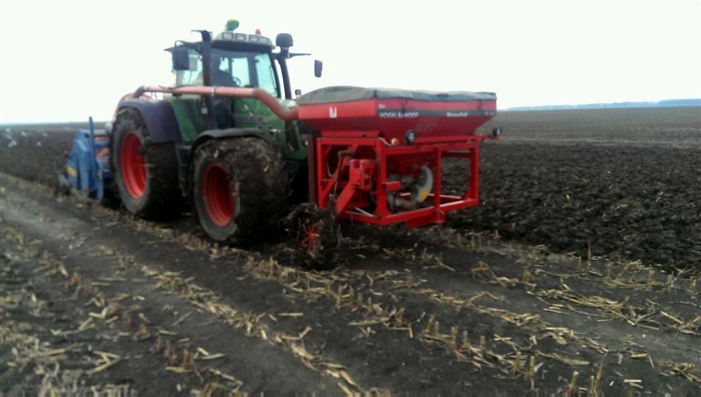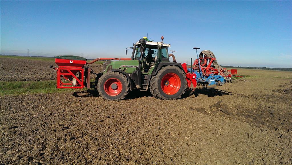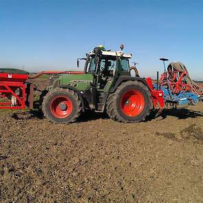 Fendt 815 met Imants SK47 spitmachine met zaai opbouw en vogel en noot zaadtank. grondsoort zware oldambtster klei.