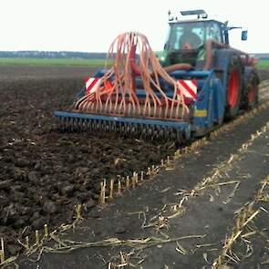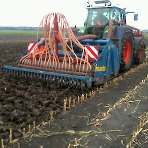 Spitten en tarwezaaien in één werkgang.op de Groningse klei