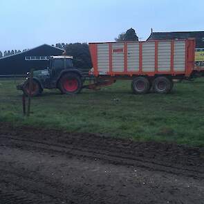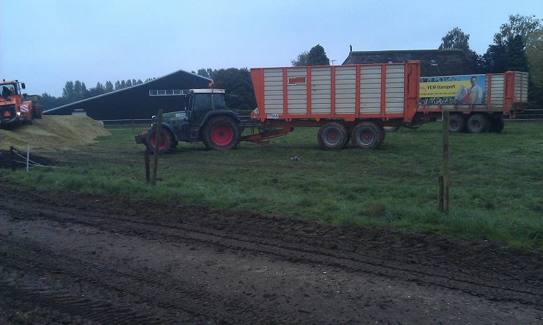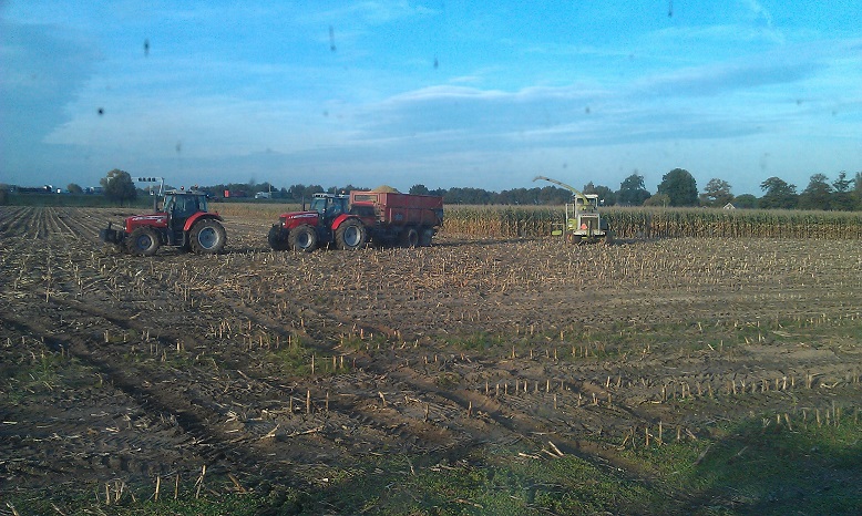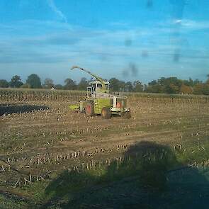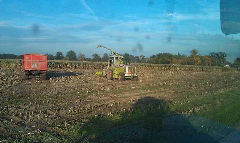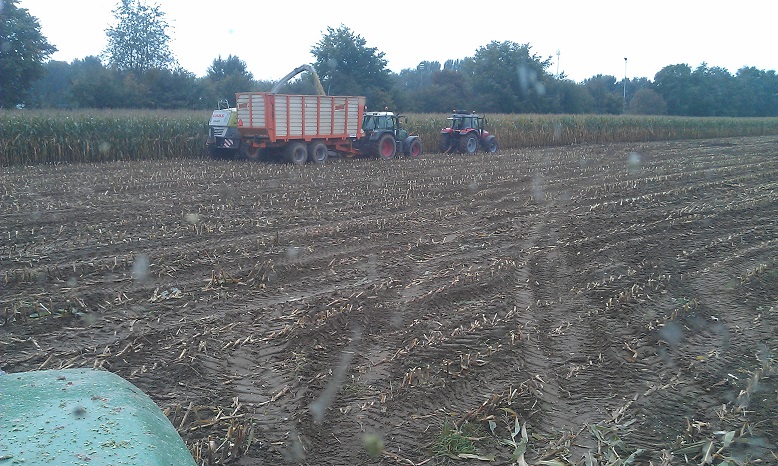 In de herfst hakselde Loonbedrijf Hofmeijer de maïs bij hen. Op één perceel was even een sleeptrekker nodig om te kunnen blijven rijden. Ook hadden ze maïs verkocht. Deze boer hakselde zelf zijn maïs met een Claas Mega 695.