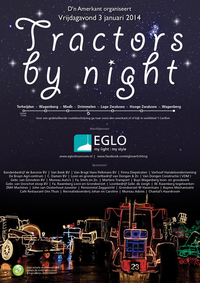 Op vrijdag 3 januari 2014 organiseert vereniging D'n Amerkant i.s.m. Eglo verlichting voor de 8e maal "Tractors By Night".