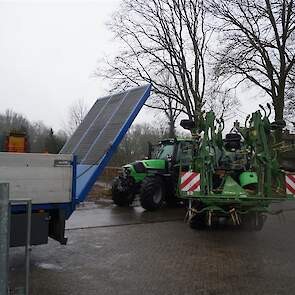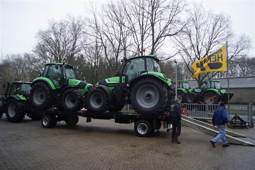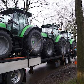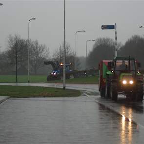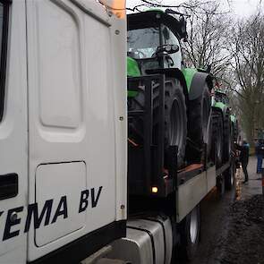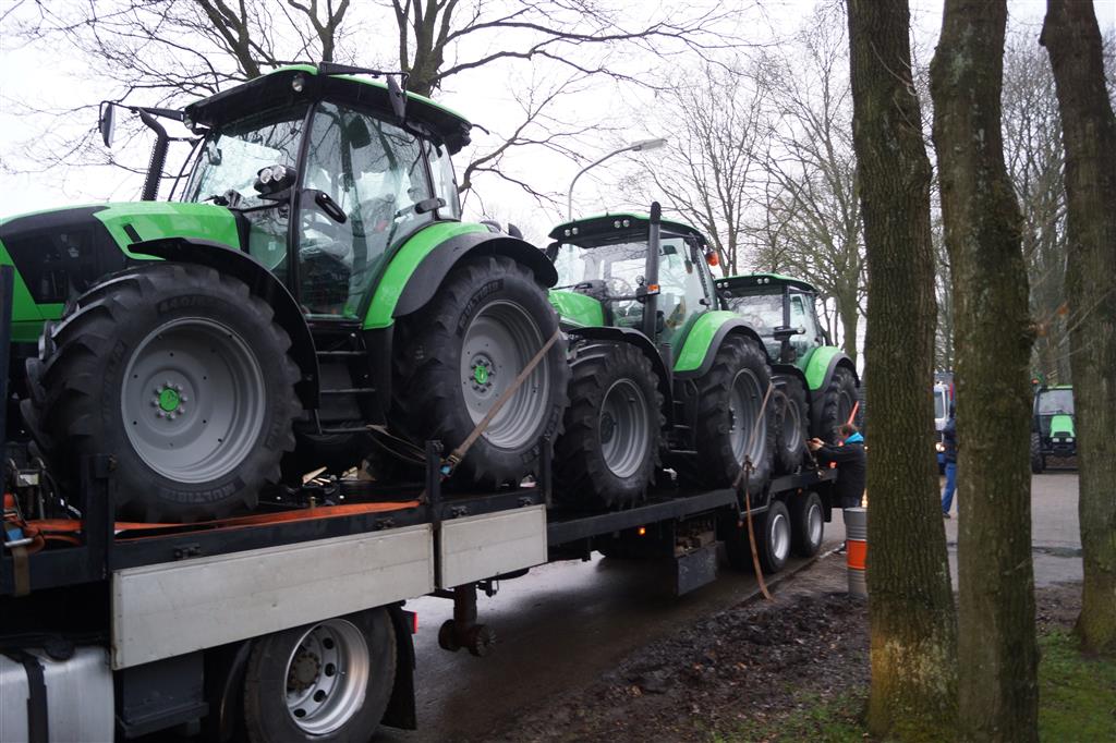 Trekker transport Broekema BV van Sleen naar Schildwolde. voor de show komende week in Schildolde ging al het materiaal op transport naar Schildwolde wat een mooie optocht opleverde
