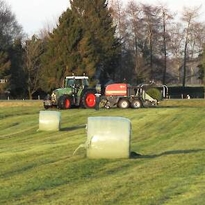 Loonbedrijf Altena uit Kloosterhaar: zijn ze dit jaar vroeg met balen maken of zijn ze juist laat? Hoe dan ook, ze zitten strak in de folie.