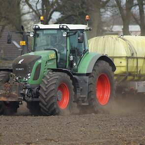 Fendt 922 vario met Duport spaakwielbemester aan het bouwland bemesten met Anasol