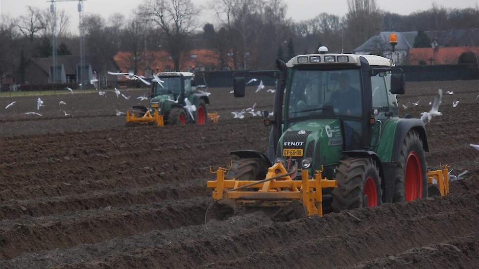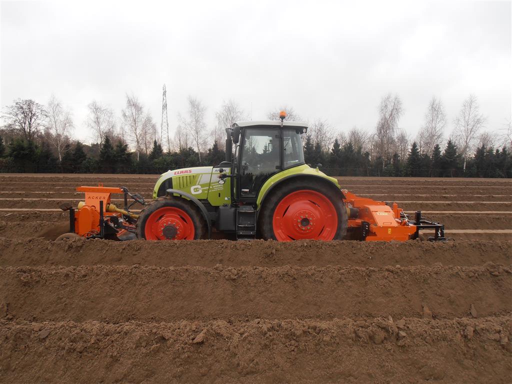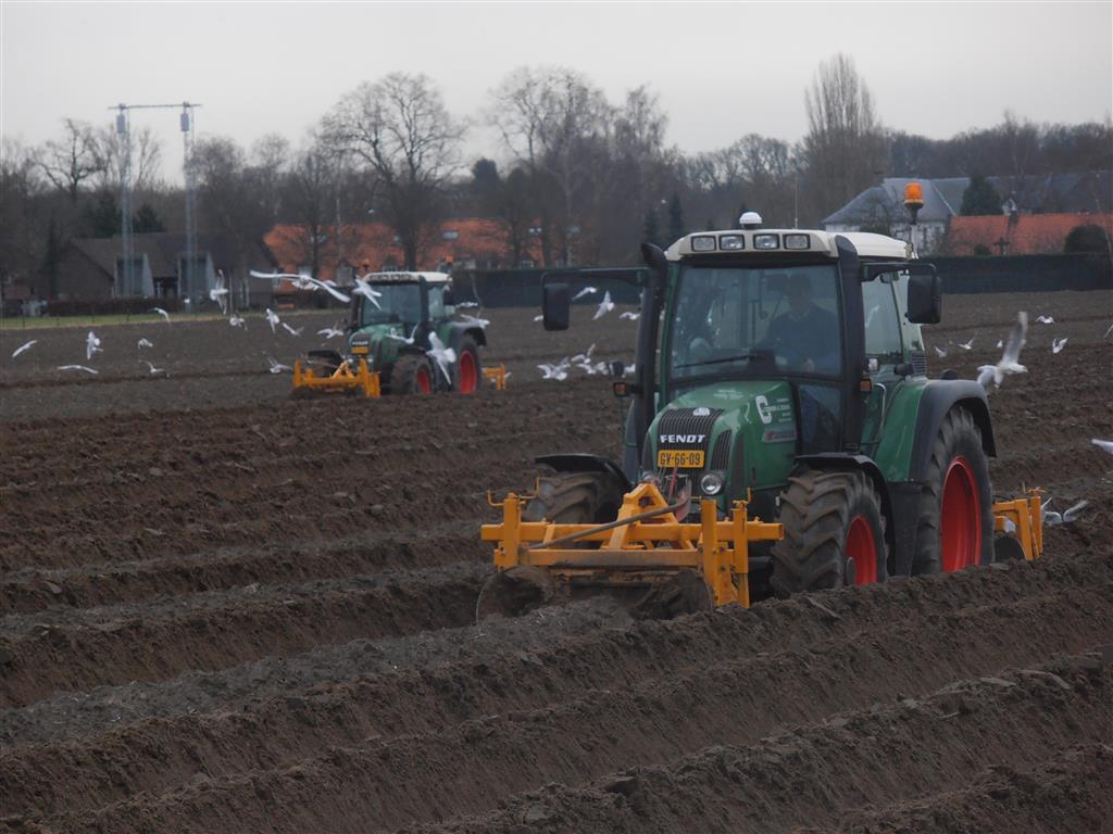 10 februari was Loonbedrijf Coenen uit Montfort (L) op de lichte zandgrond met 3 trekkers in de asperge bezig, de Fendt 412 en de 714 met de Panther combinatie aan het frezen en ruw voor aan het ploegen zodat de bedden aan konden drogen, en de Claas Arion 640 met de Acker combinatie was de Bedden af aan het strijken zodat ze klaar liggen om folie te leggen.