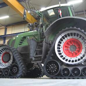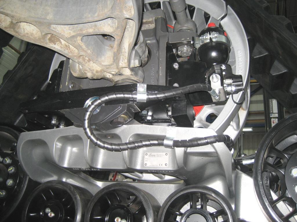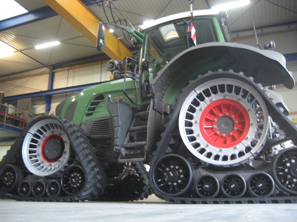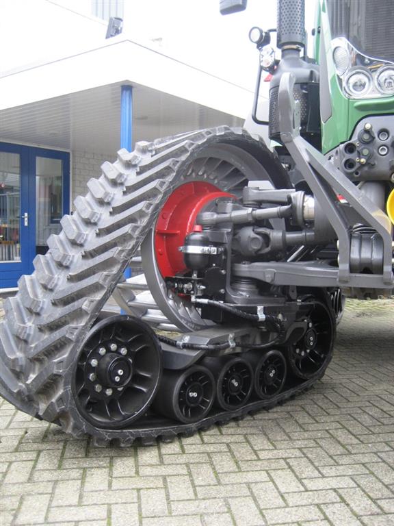 - Pendelende assen van kleine loopwielen, voor het beter volgen van contouren ondergrond, continue tractie en vermogensoverdracht en geen piekbelasting onder de wielen meer.