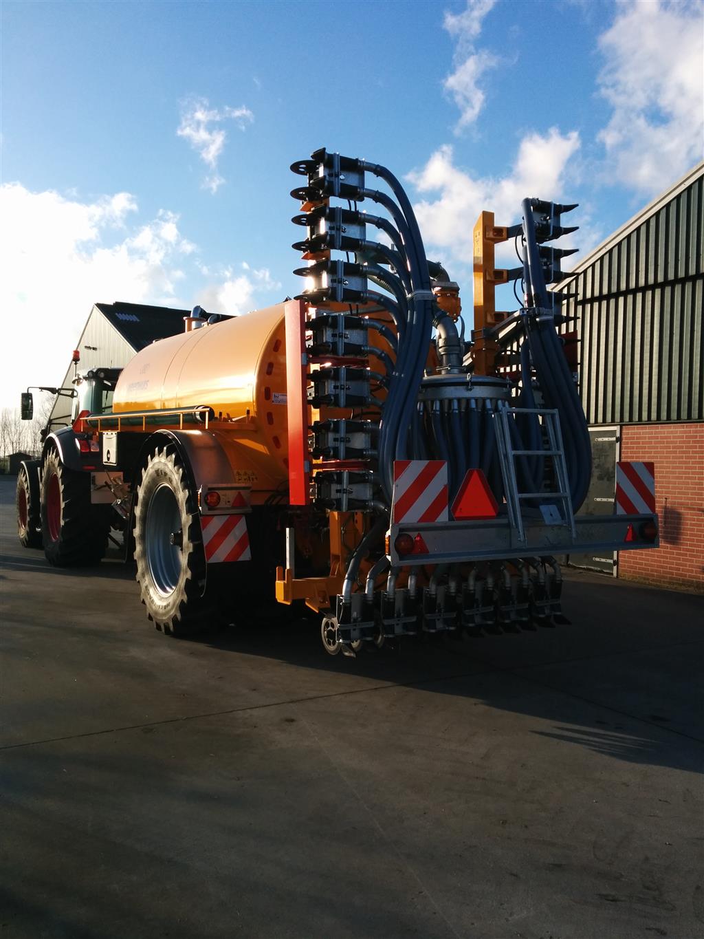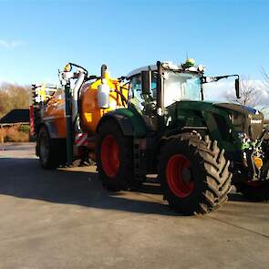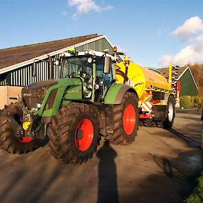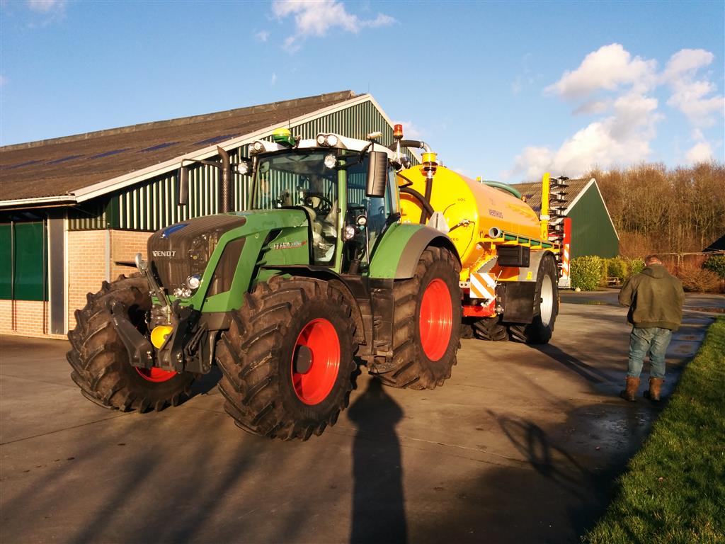 Met de nieuwe combinatie: Fendt 826 Vario en Veenhuis Premium Quad 14m3 mesttank. Ook is de 826 uitgerust met een ingebouwde versie van het John Deere GPS systeem starfire om optimaal te kunnen bemesten. Dit systeem gaat samenwerken met de mesttank.