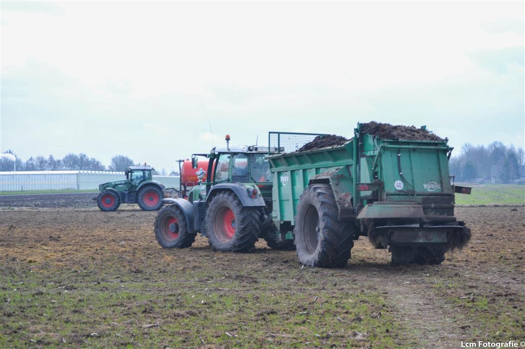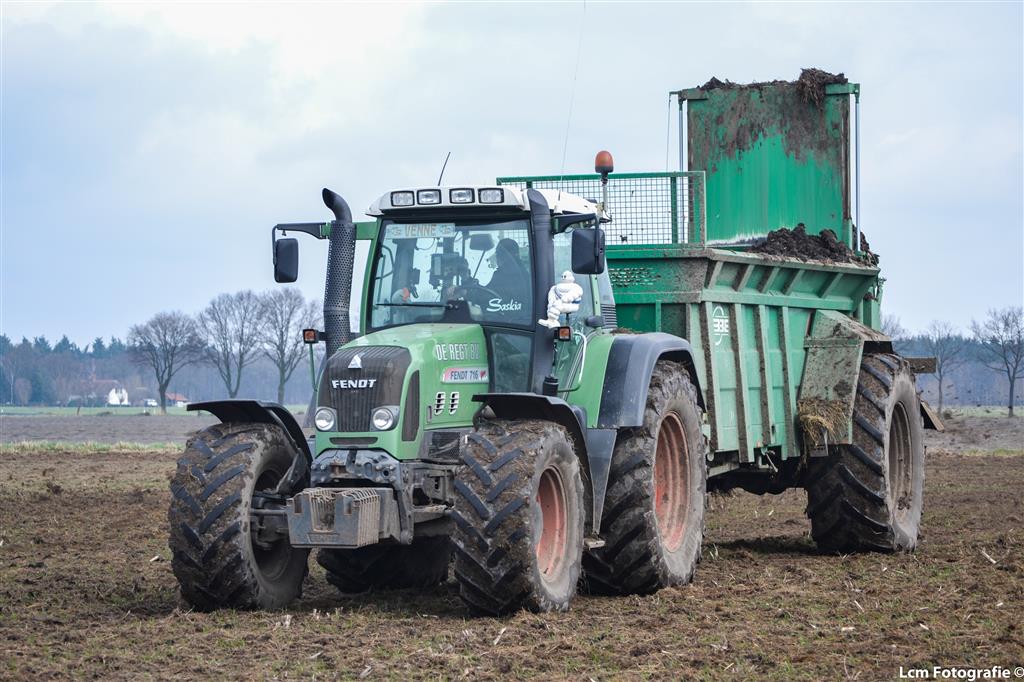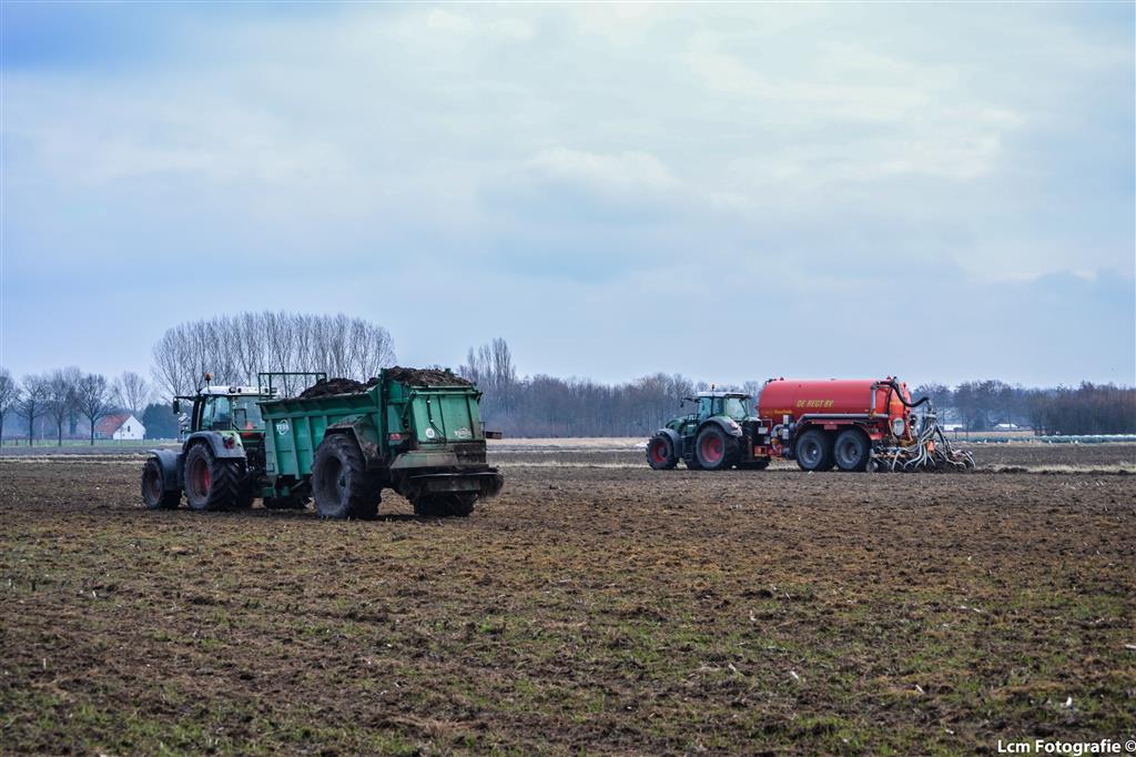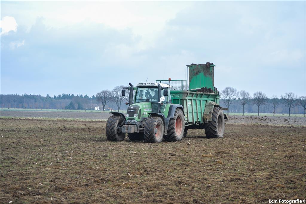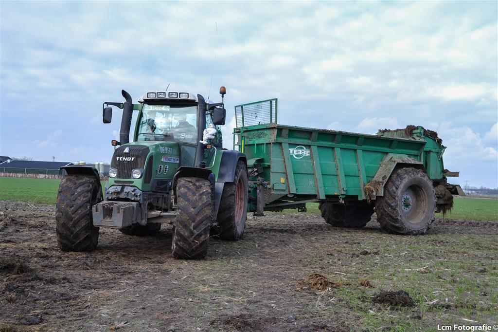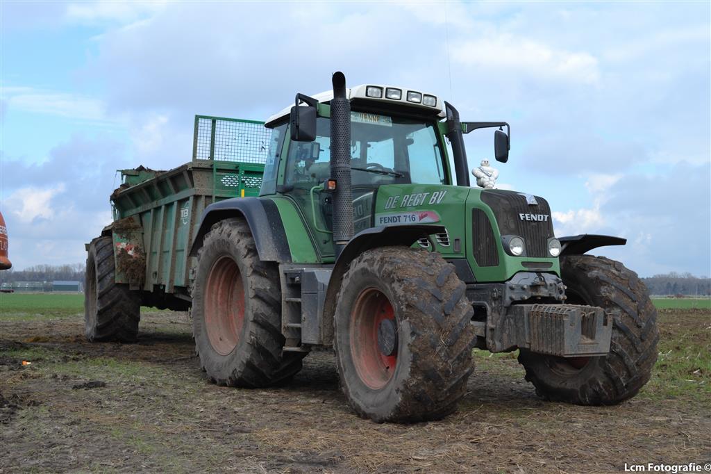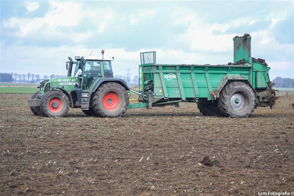 Loonbedrijf Ph de Regt & z'n druk in de weer in de mest.zo word er vaste mest over het bouwland gestrooid met een Fendt 716 en een Tebbe MS 140, Daarnaast word het bouwland bemest met een Fendt 924 met Veenhuis giertank
