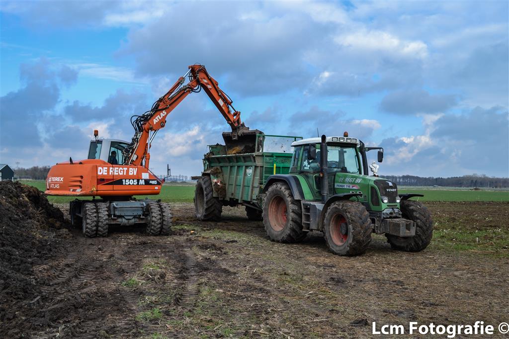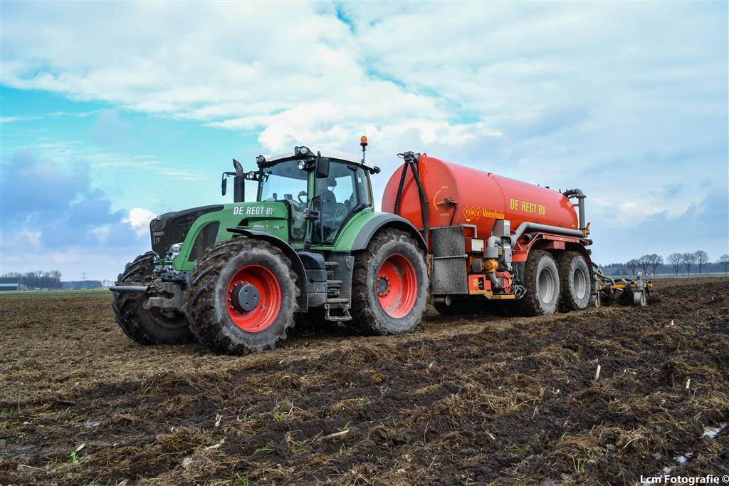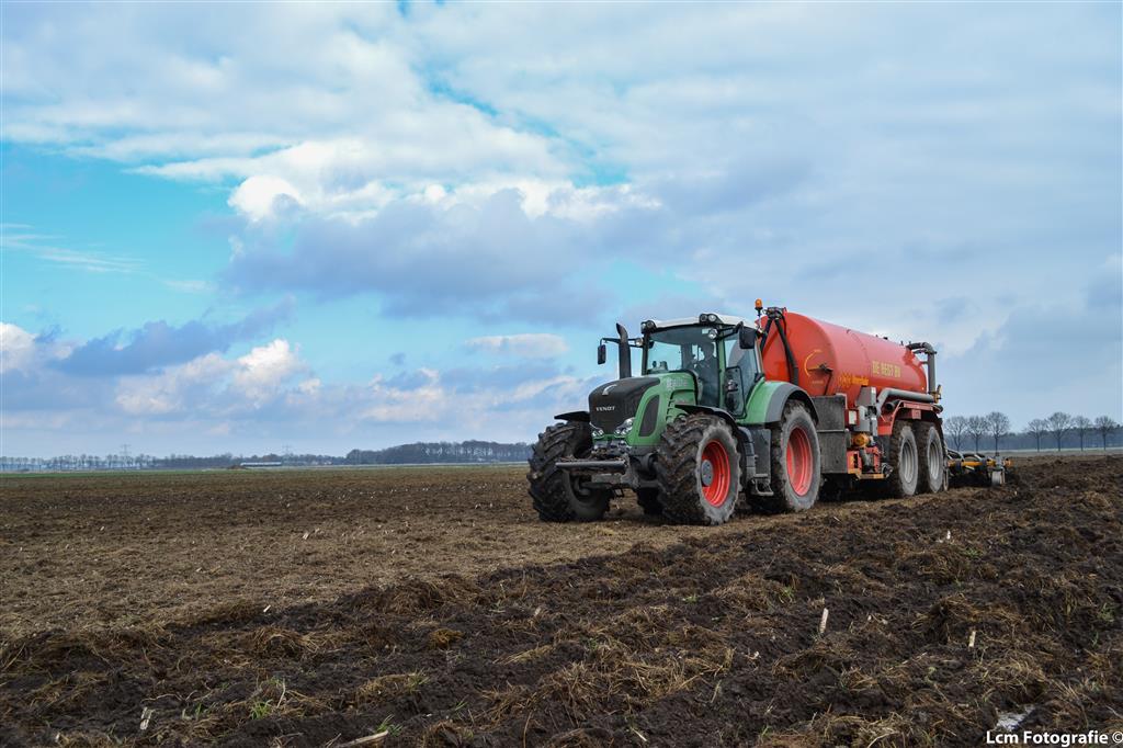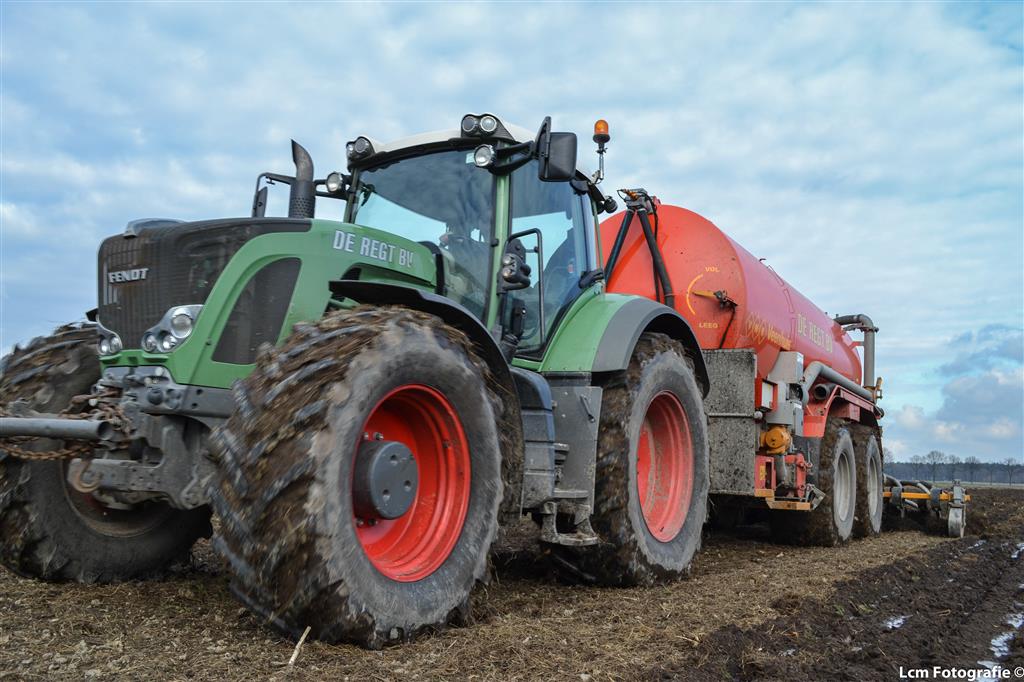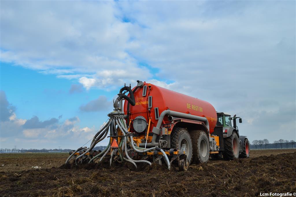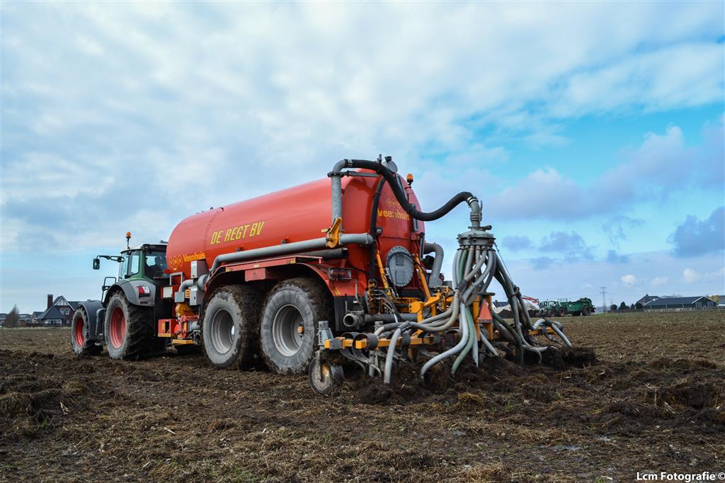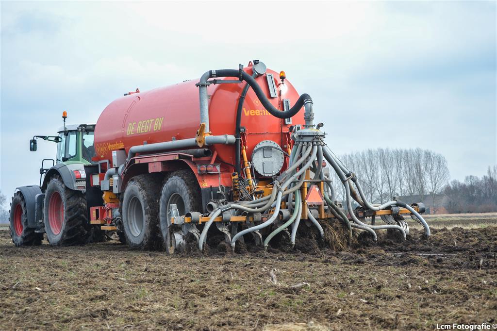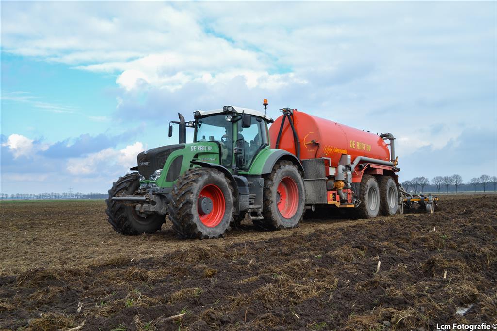 Loonbedrijf Ph de Regt & z'n druk in de weer in de mest.zo word er vaste mest over het bouwland gestrooid met een Fendt 716 en een Tebbe MS 140, Daarnaast word het bouwland bemest met een Fendt 924 met Veenhuis giertank
