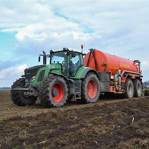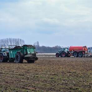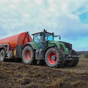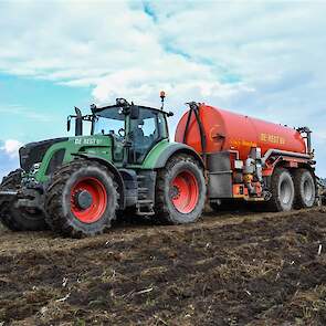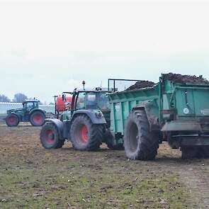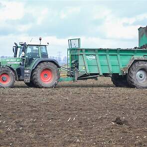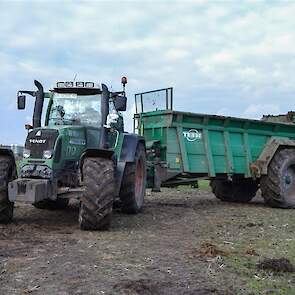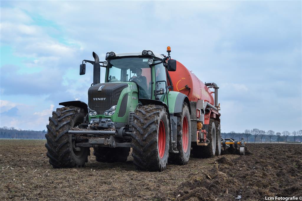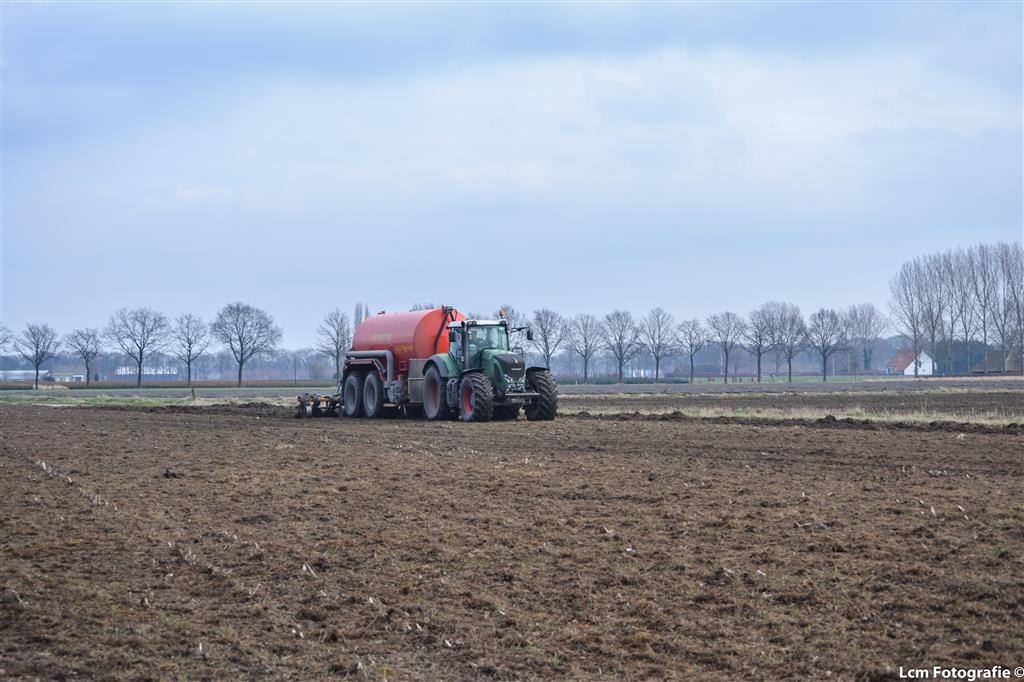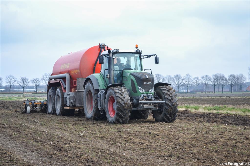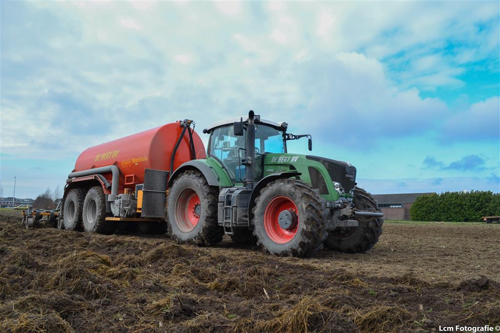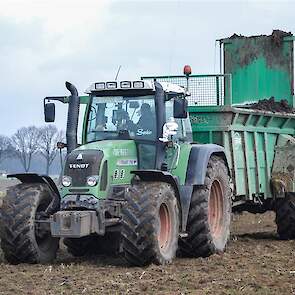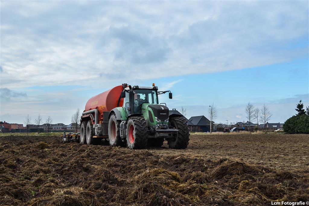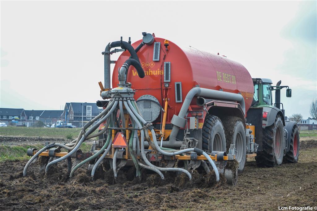 Loonbedrijf Ph de Regt & z'n druk in de weer in de mest.zo word er vaste mest over het bouwland gestrooid met een Fendt 716 en een Tebbe MS 140, Daarnaast word het bouwland bemest met een Fendt 924 met Veenhuis giertank