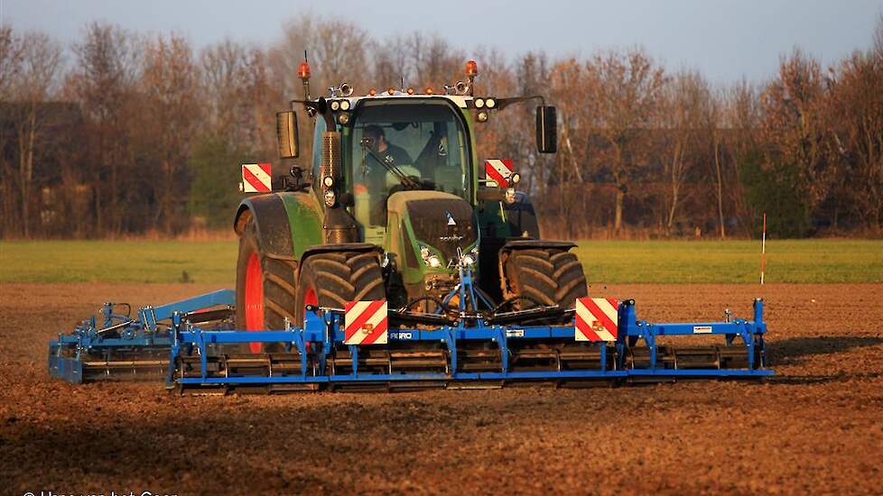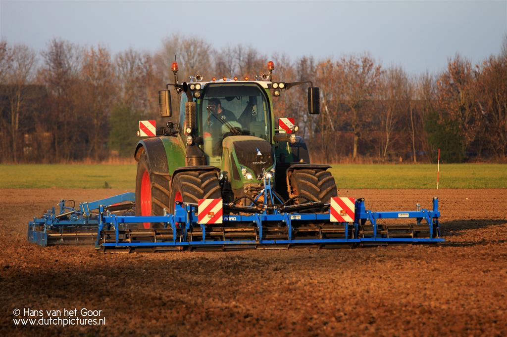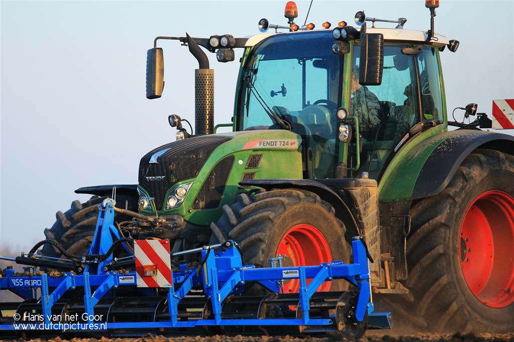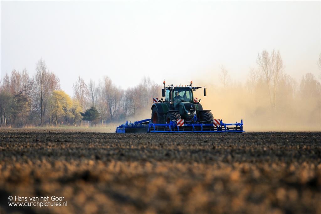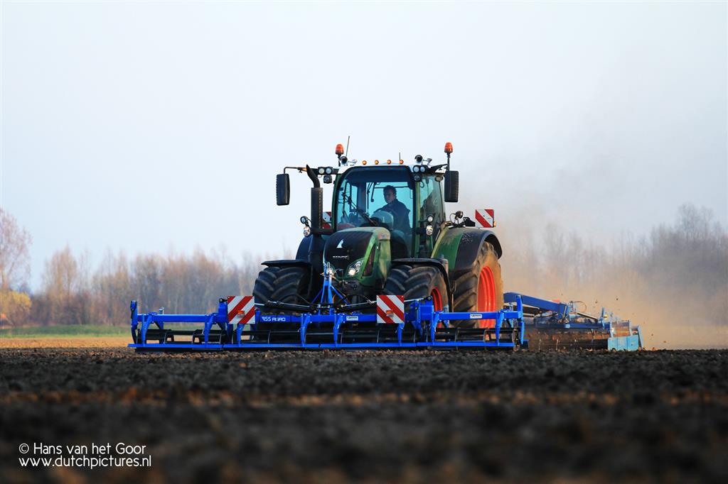 Boer aan het snel eggen bij Biddinghuizen, Flevoland. Prachtig nieuw materiaal in de vorm van een Fendt 724 Vario en een Lemken System Kompaktor, geleverd door van Arendonk Mechanisatie.