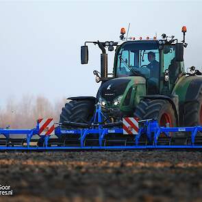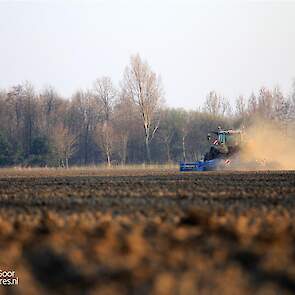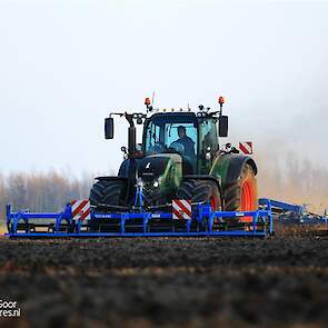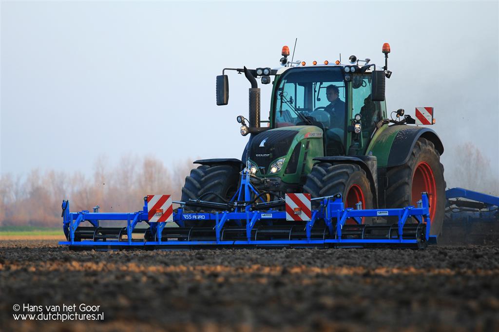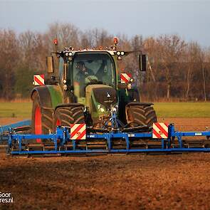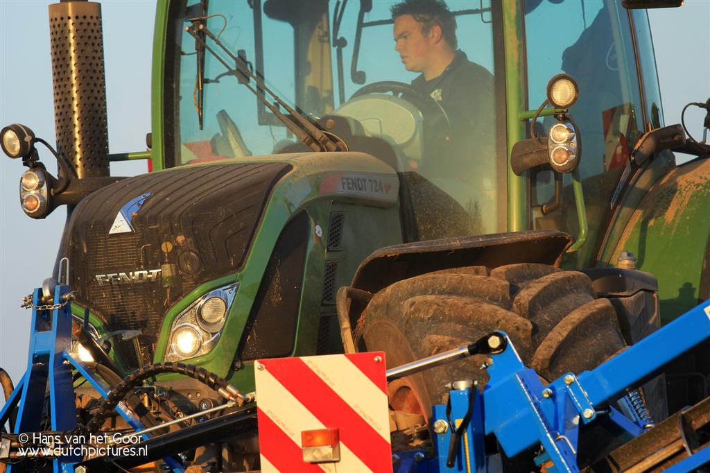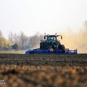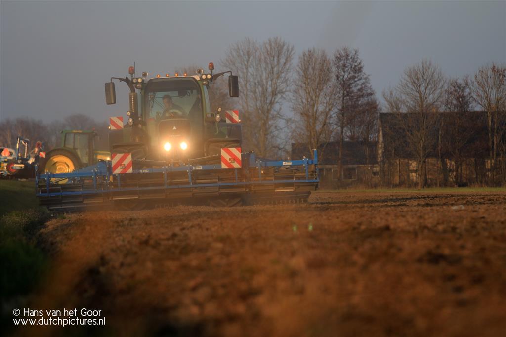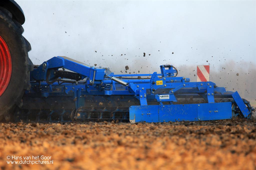 Boer aan het snel eggen bij Biddinghuizen, Flevoland. Prachtig nieuw materiaal in de vorm van een Fendt 724 Vario en een Lemken System Kompaktor, geleverd door van Arendonk Mechanisatie.