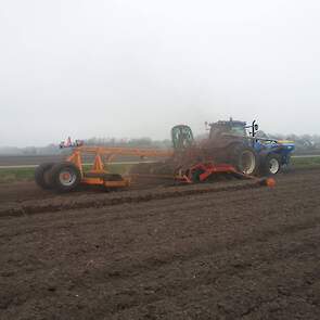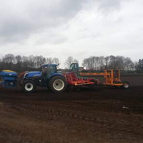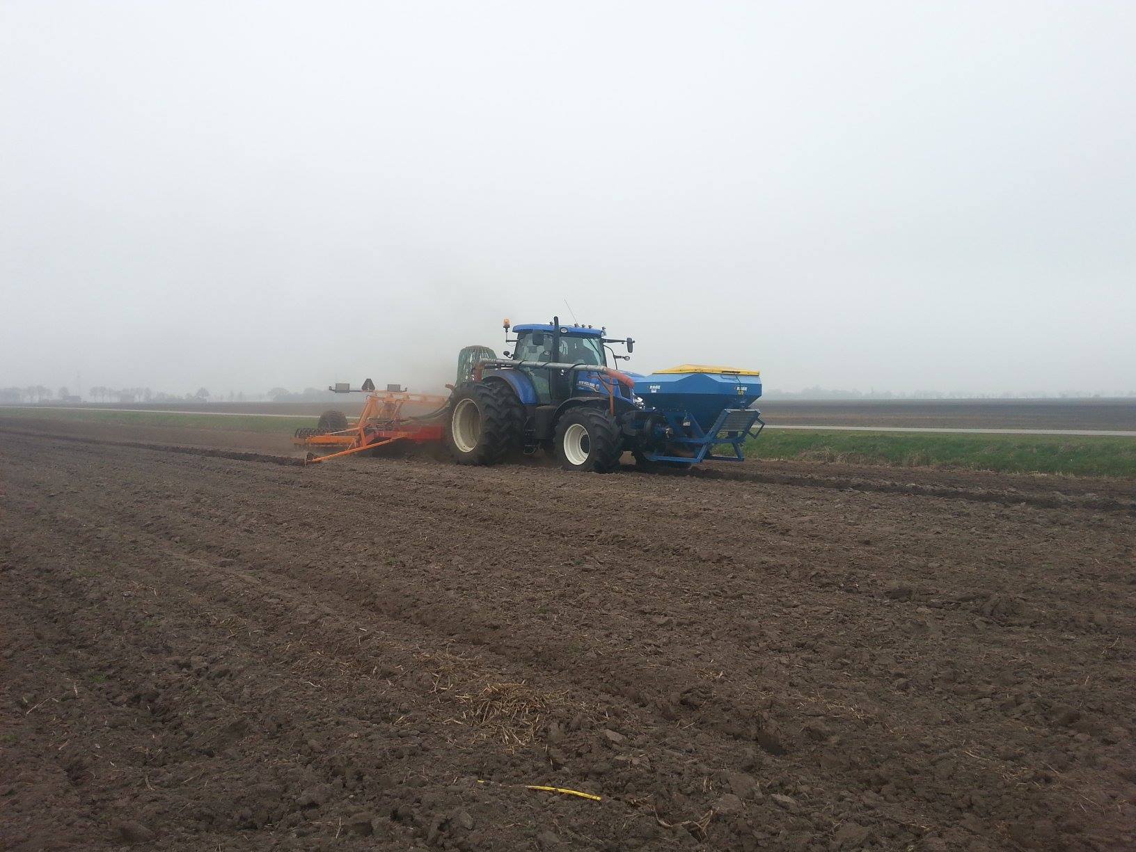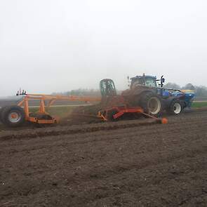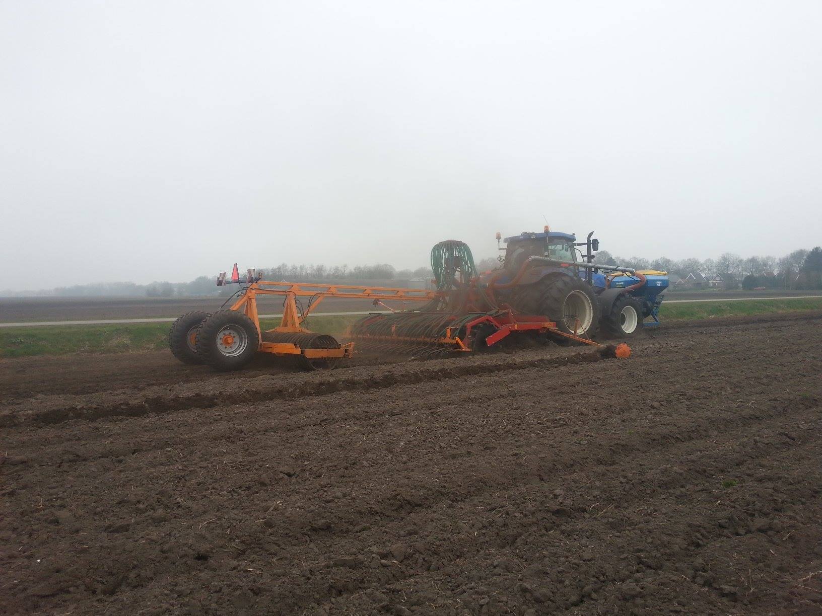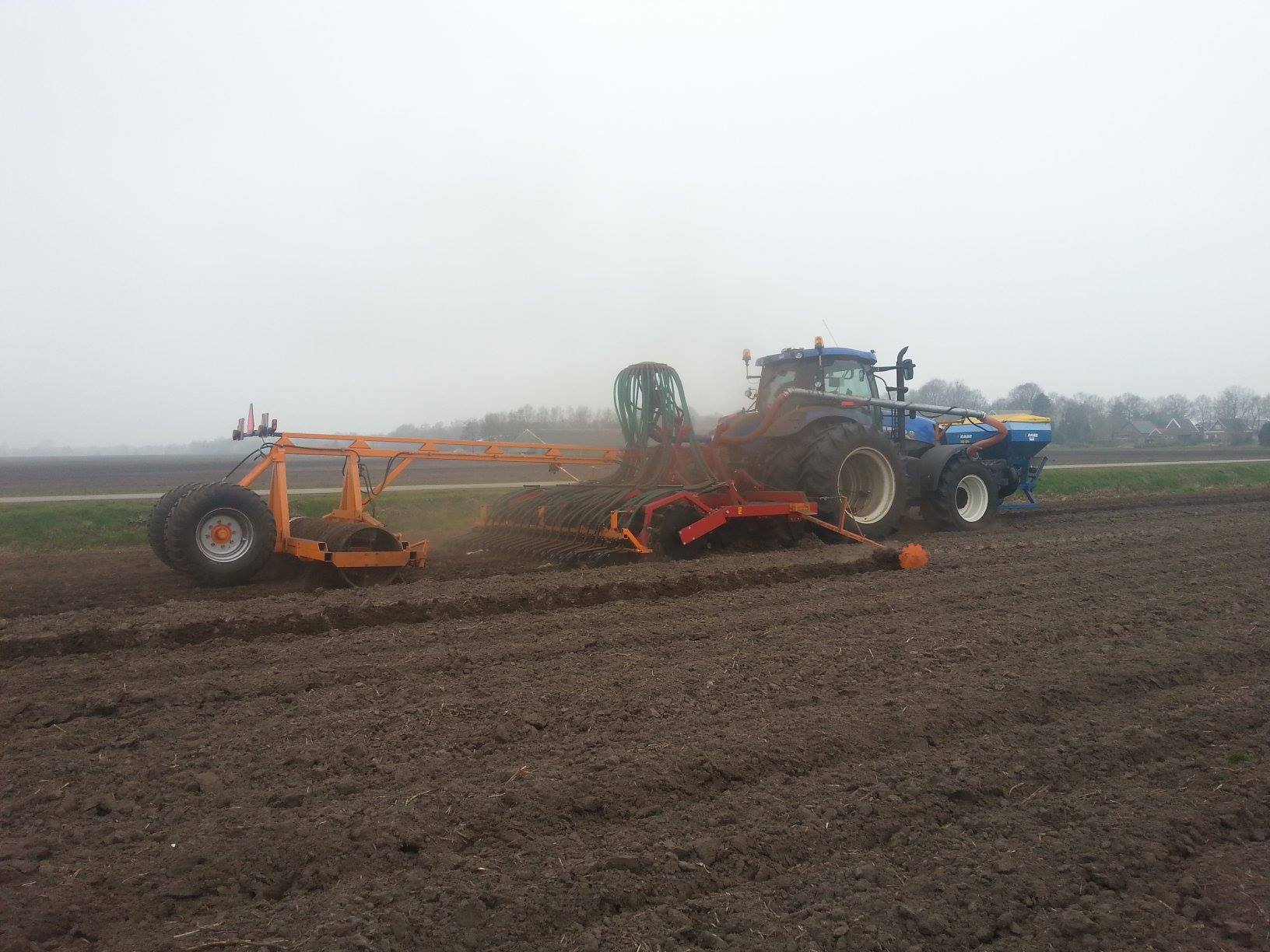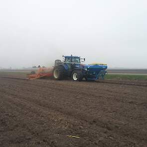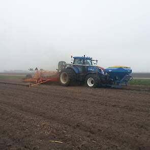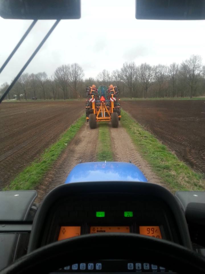 Douwe Jan Moorlag uit Nieuw Weerdinge graan zaaien met deels zelf gebouwde 4,5meter brede zaaibedcombinatie aan het graan zaaien,gemaakt met Rabe frontank en Evers vaste tand cultivator.