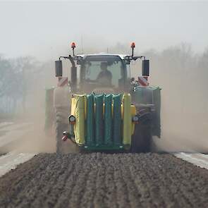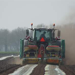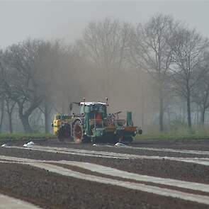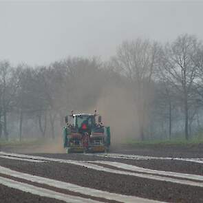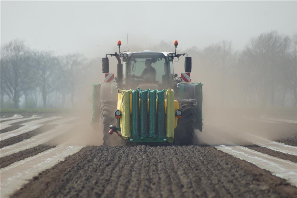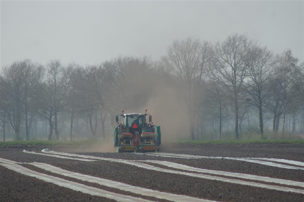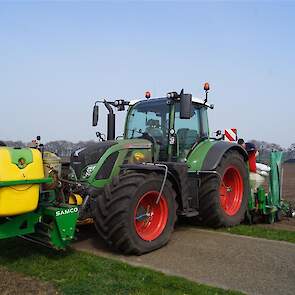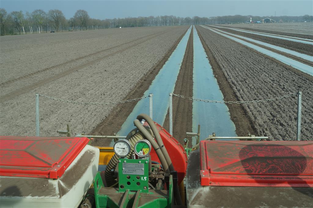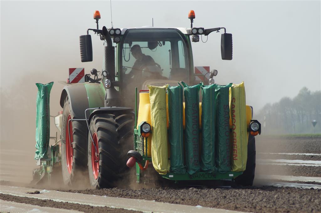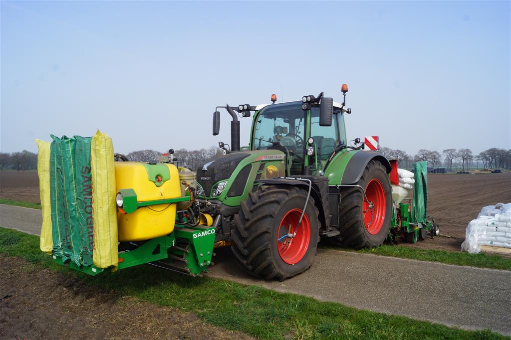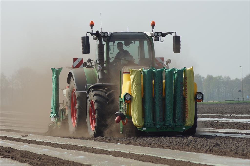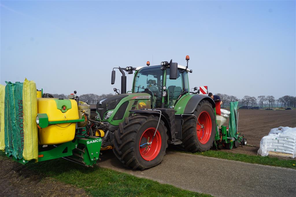 Loonbedrijf Heeringa met Fendt 724 mais zaaien onder plastic