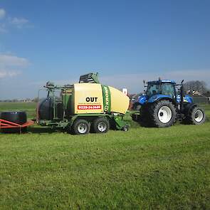 Zaterdag 5 april is het eerste gras van 2014 in de pers gegaan. Op een perceel van Dirk Stam aan het Wijzenddijkje werd zaterdag 5 ha in de ronde baal geperst. Het perceel is in de herfst van 2013 ingezaaid, en door de zachte winter stond er nu al een beste snede gras. Op bijgaande fotos de Krone ronde balenpers (2011) en de New Holland T7040 (2012)