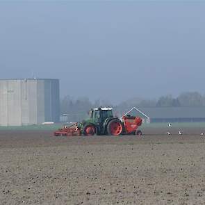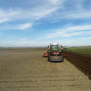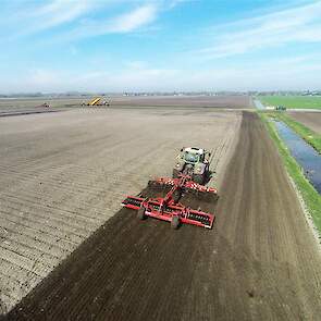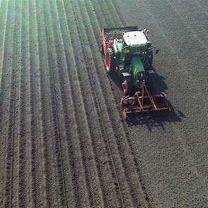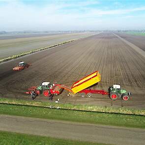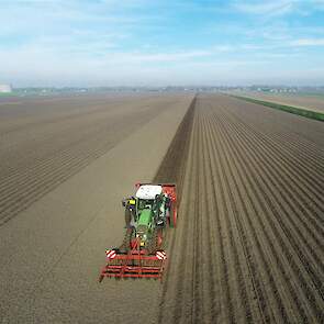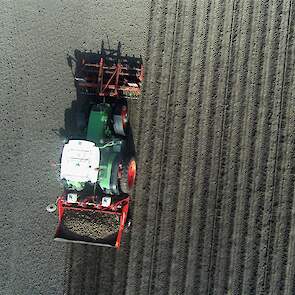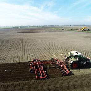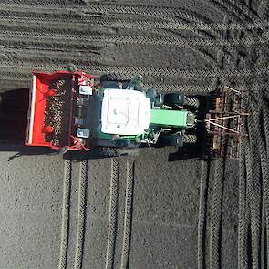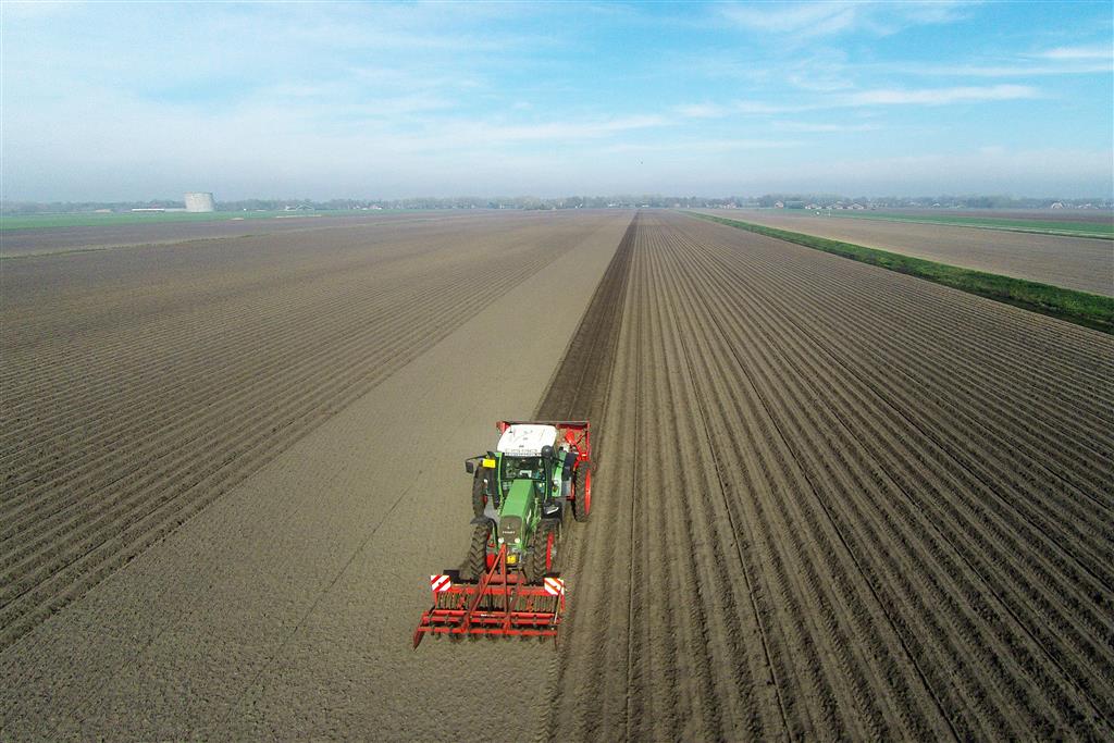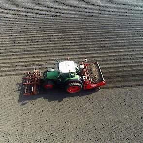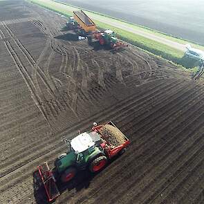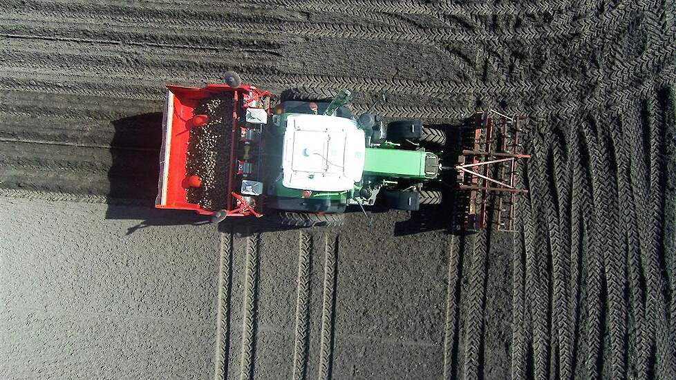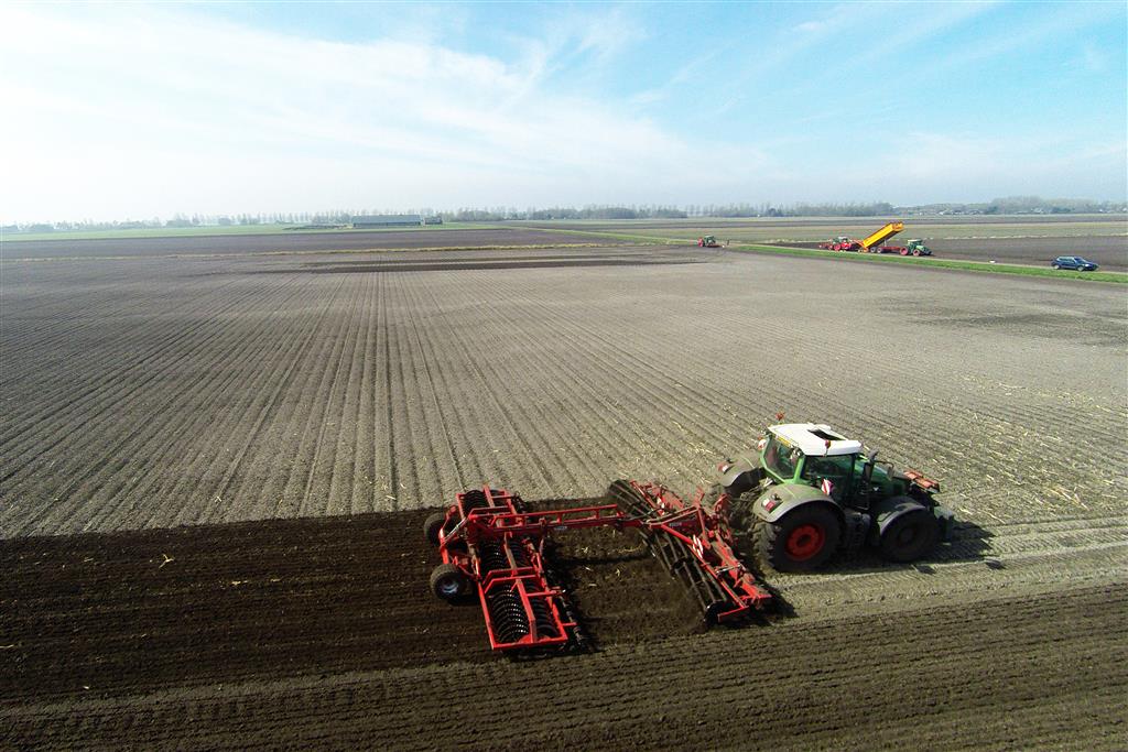 Landbouw- en loonbedrijf Simon Berends aardappels poten gezien vanuit de lucht .prachtige beelden van het poten met de Fendt en Grimme pootmachine en de grondbewerking met de Fendt met Evers vaste tand combinatie