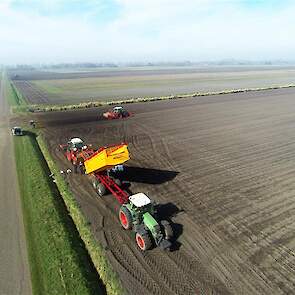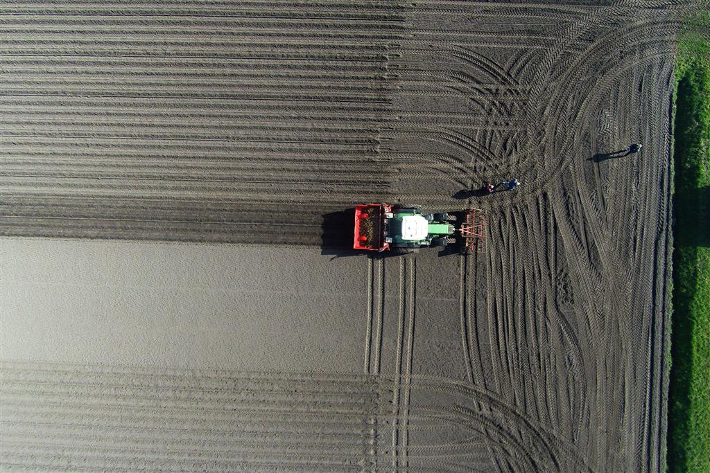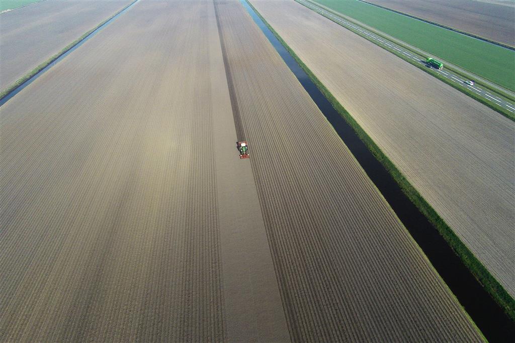 Landbouw- en loonbedrijf Simon Berends aardappels poten gezien vanuit de lucht
