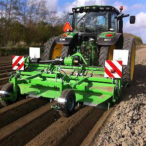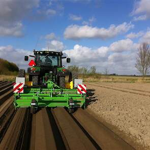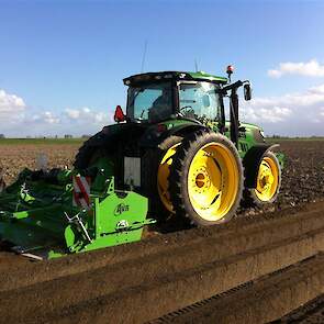 In Groningen wordt voorzichtig gestart met het poten van de pootaardappelen. Om de grond mooi fijn te krijgen wordt er gefreesd.De AVR HD frees is uitgerust met tandwielaandrijving.De frees heeft het bewezen en gepatenteerde 6-haaks systeem op de rotoras. Hierdoor zijn er altijd evenveel haken in de grond, wat een constante belasting aan de motor geeft. Dit resulteert in lichter trekken, 30% minder toeren en 30% minder brandstofverbruik!De standaard geveerde kap boven de rotor zorgt er voor dat de grond minder snel aanbakt in de kap. Optioneel kunnen er cilinders boven de geveerde kap gemonteerd worden waardoor de kap vlak boven de rotor kan worden gedrukt en de kap zelfreinigend is.Er kan gekozen worden uit verschillende aanaardkappen achter de frees.Een grote bolle vorm voor pootgoed of consumptie aardappels of een rechte rug met grote bovenbreedte voor bijvoorbeeld wortels. De aanaardkap kan optioneel hydraulisch op druk worden gezet en is uit te rusten met high speed delen voor een strakke rug bij een hoge rij snelheid.