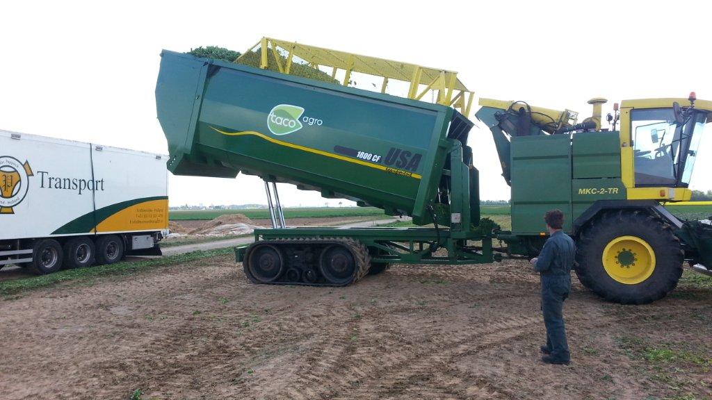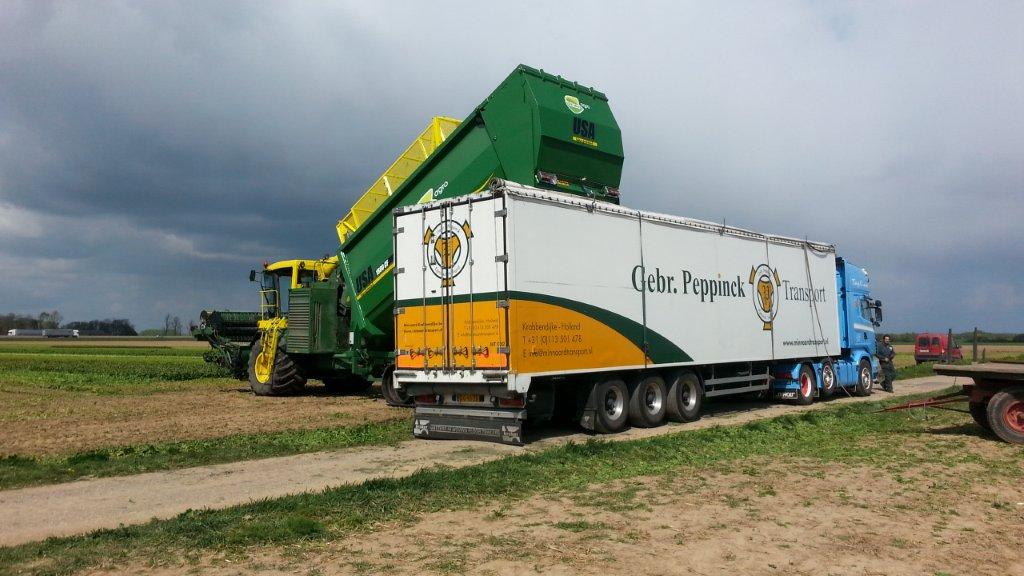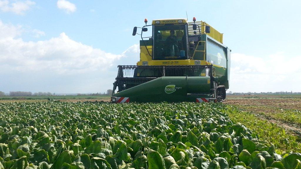 De oogst van winterspinazie is momenteel in volle gang. Na vele uren werk in de werkplaats is er sinds dit jaar is er een andere spinaziemaaier in gebruik genomen zoals te zien is op de fotos. Het maaien van de eerste spinazie verloopt vlot met de nieuwe machine.