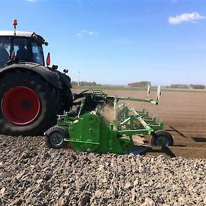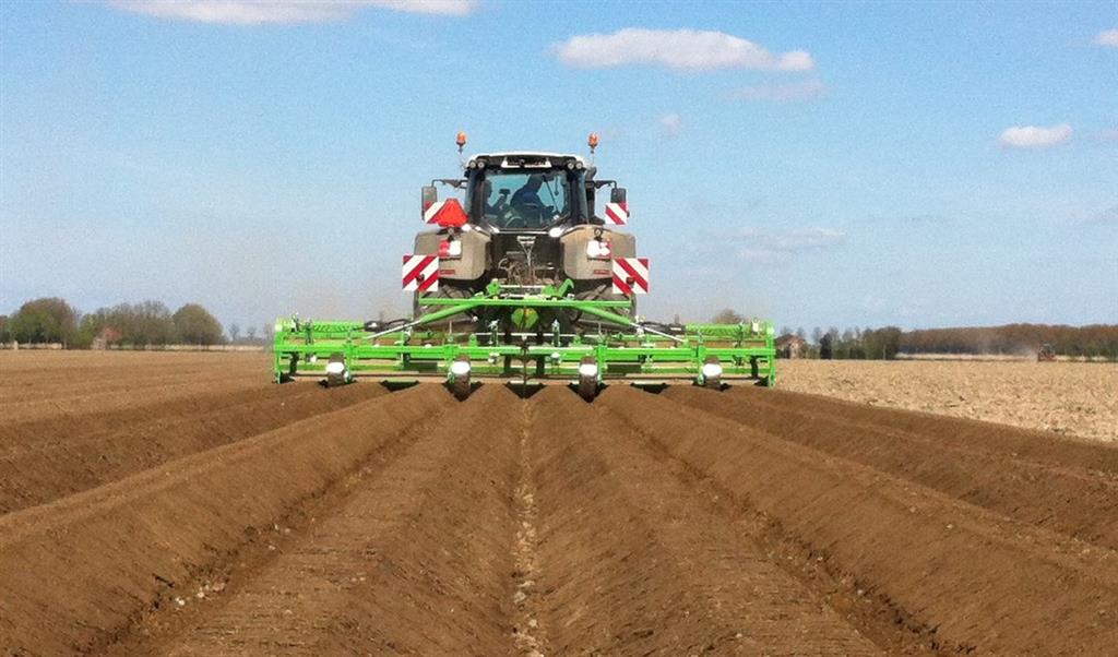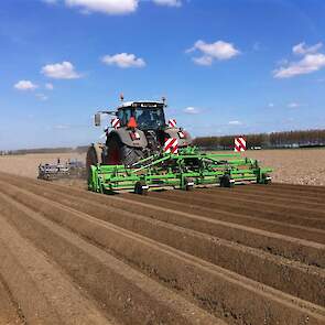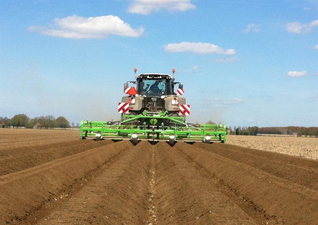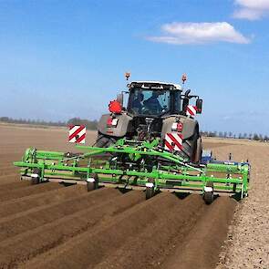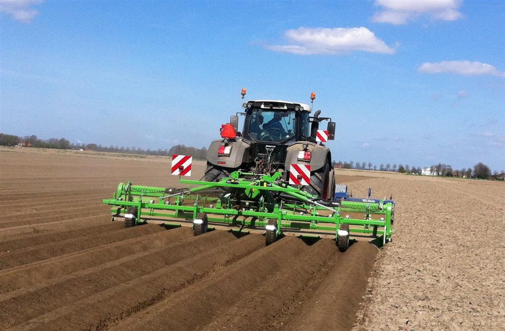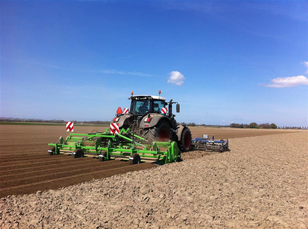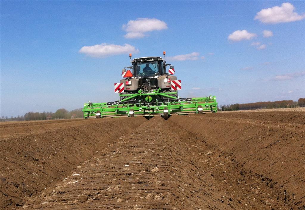 De frees is uitgerust met het 6 haaks systeem wat de grond goed zeer goed verkruimeld en op de juiste diepte om bij het poten met de aanaardkap voldoende losse grond te hebben voor een mooie rugopbouw. Trekker en frees worden gestuurd d.m.v. GPS wat resulteert in mooie rechte ruggen.