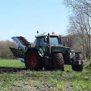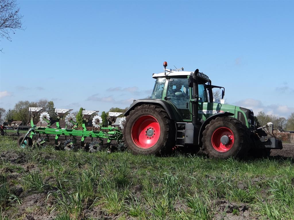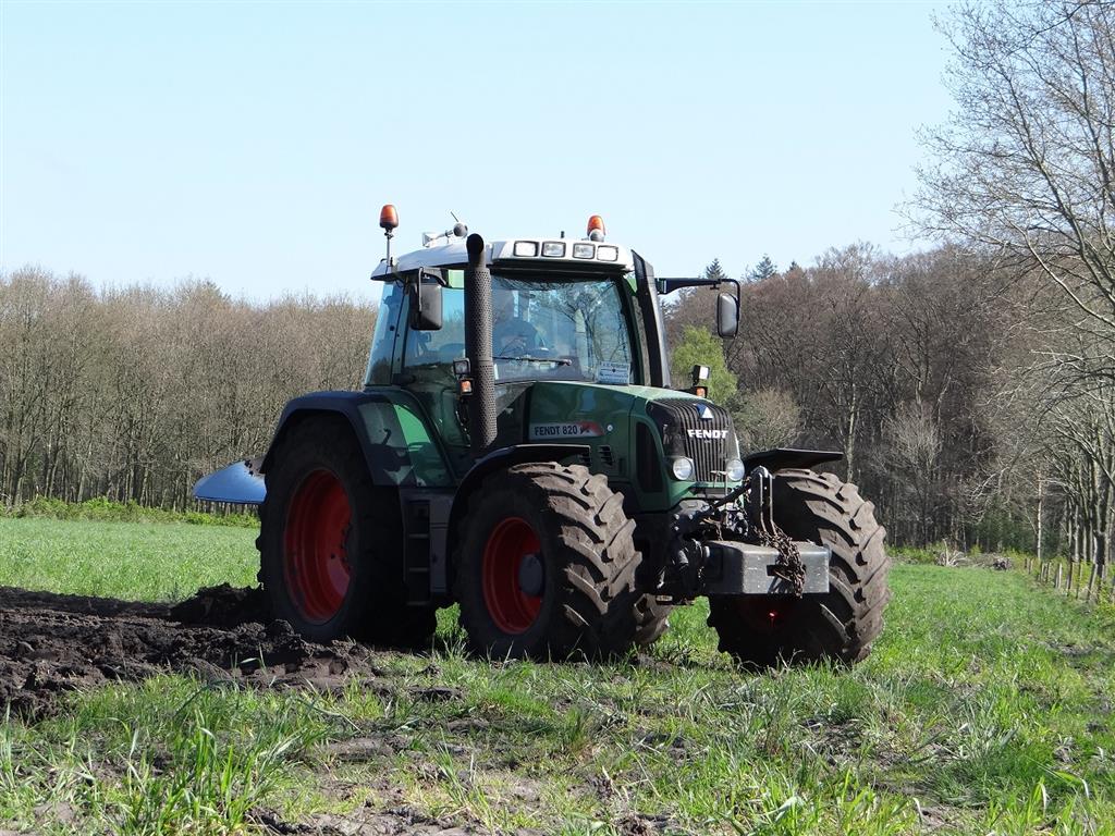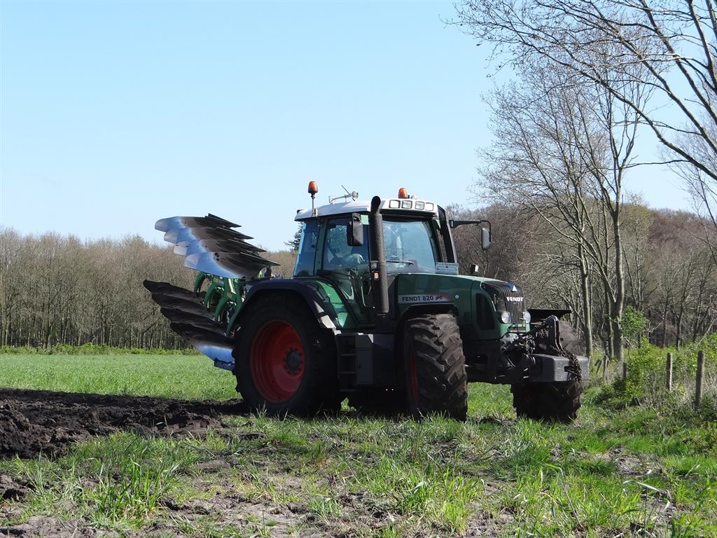 Loonbedrijf P van den Hardenberg uit Elspeet aan het ploegen met een Fendt 820