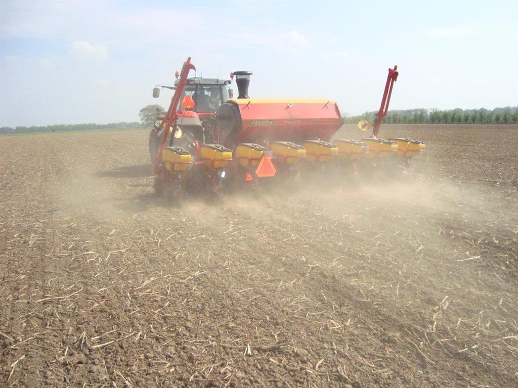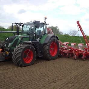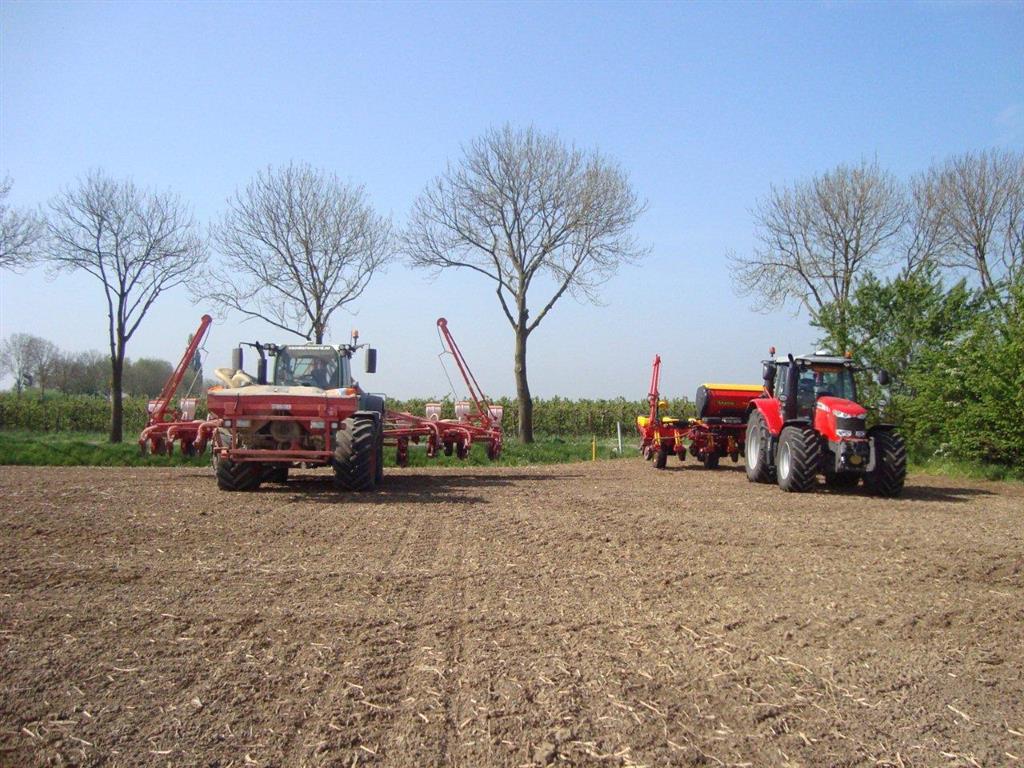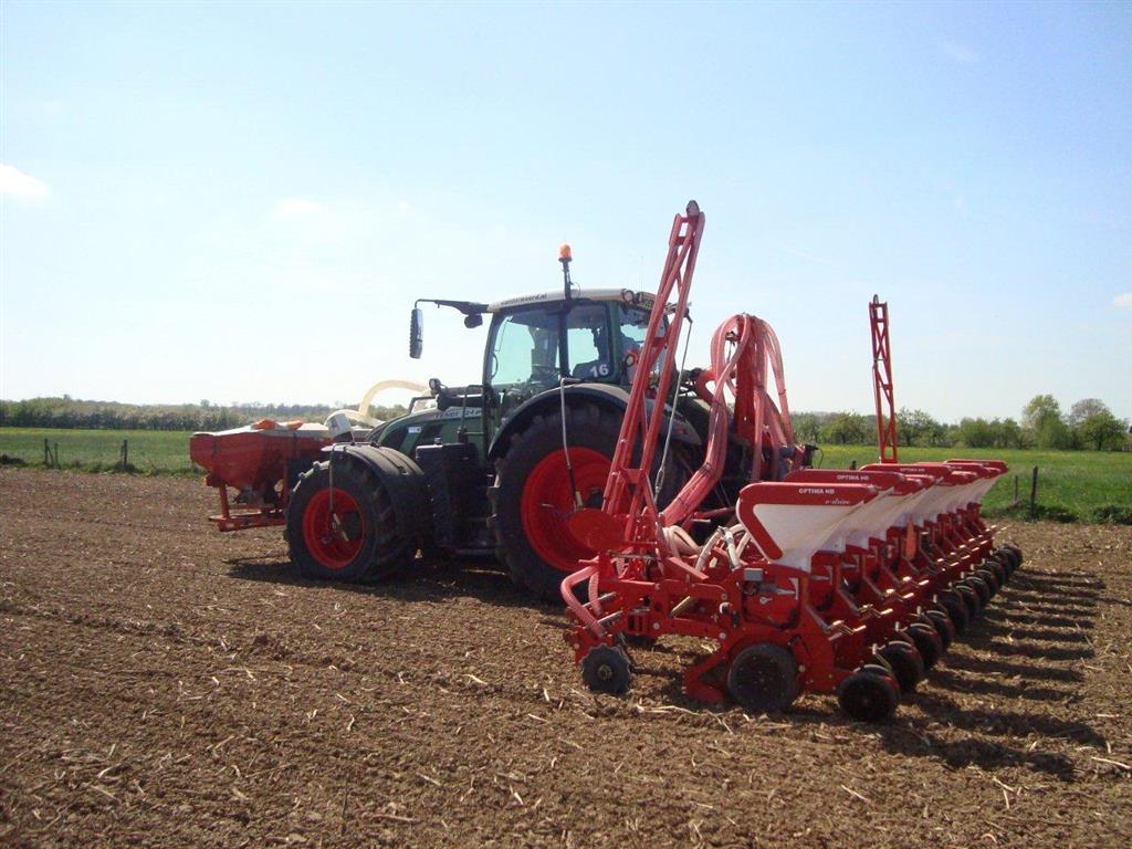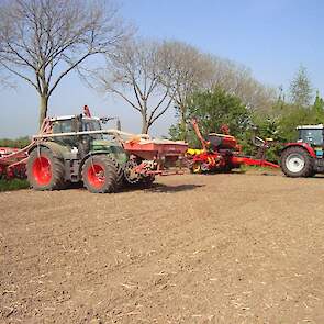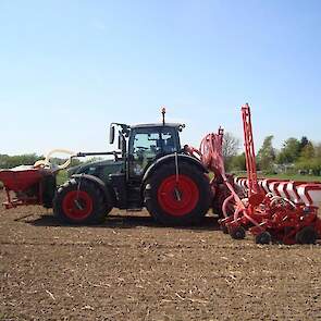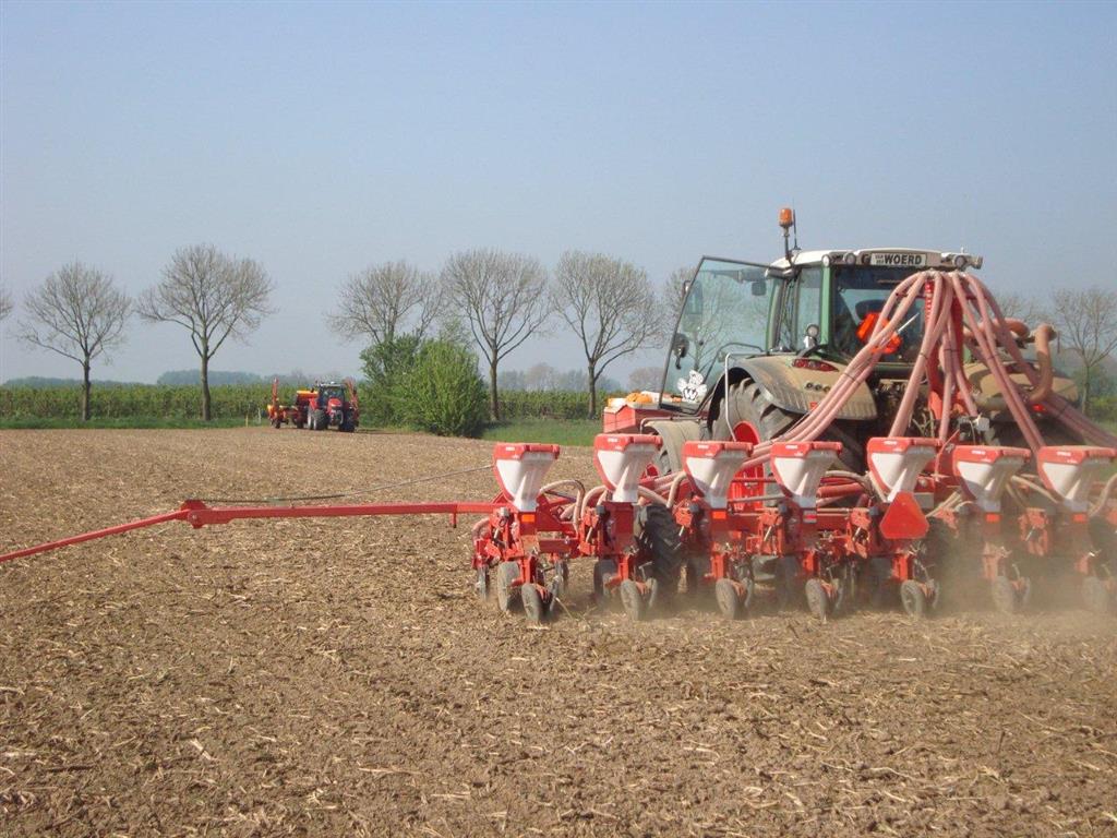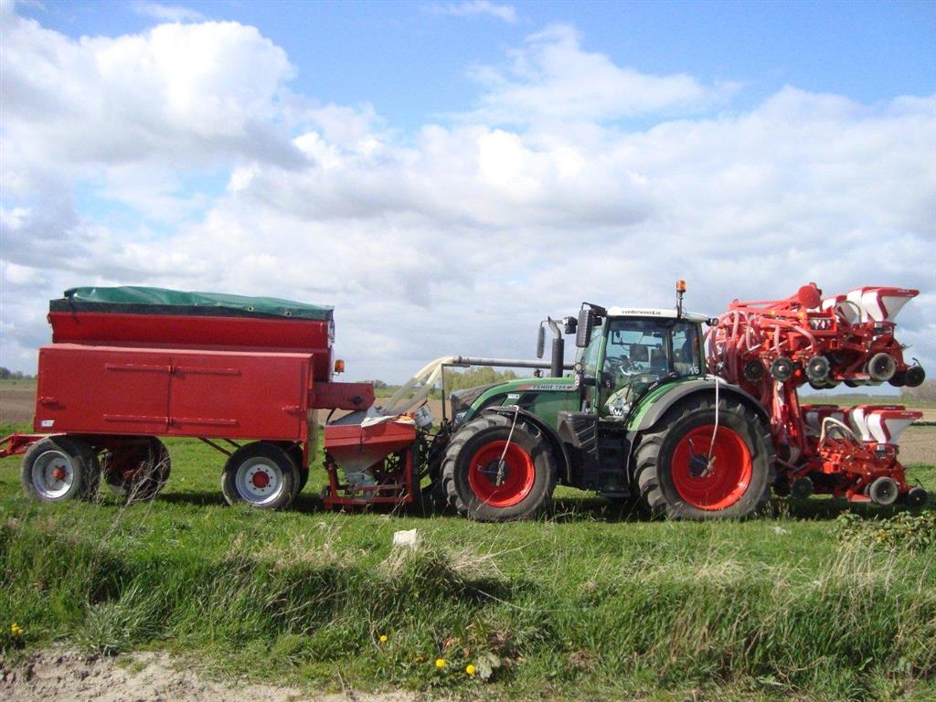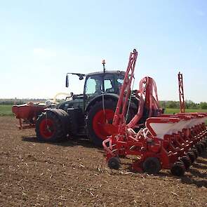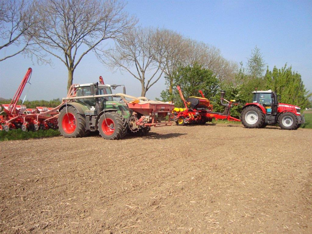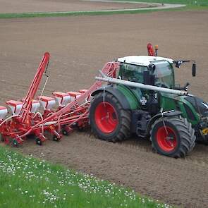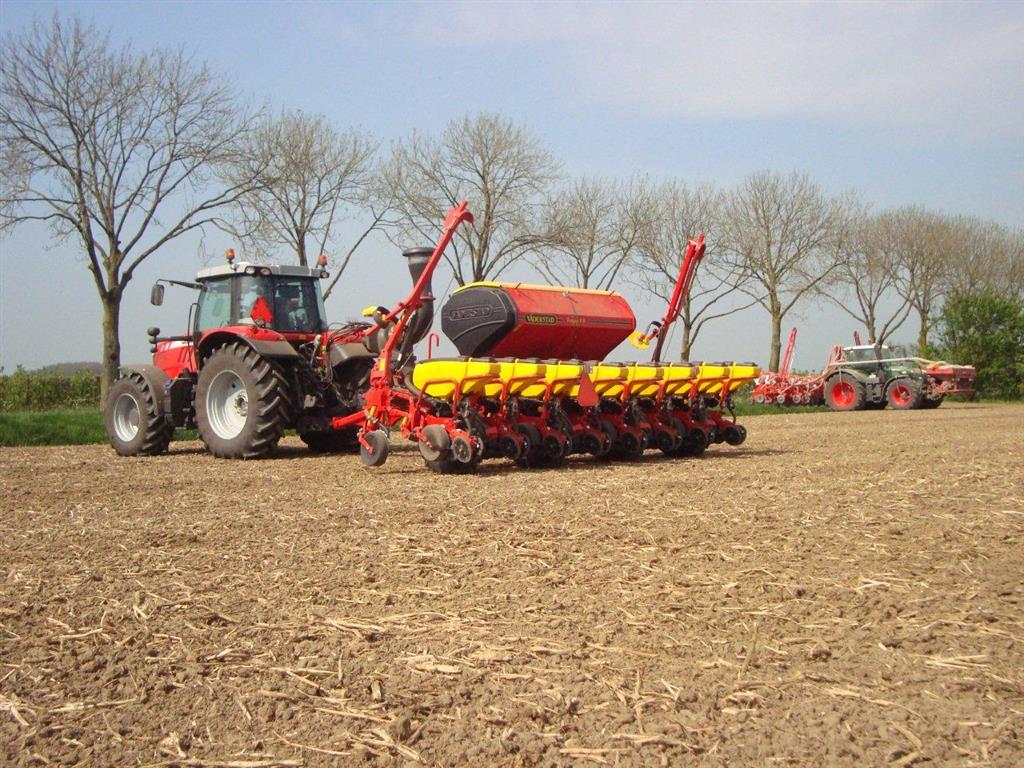 Loonbedrijf van der Woerd aan het maiszaaien met de Fendt 724
