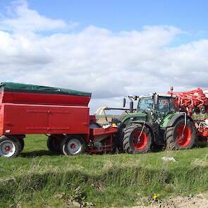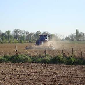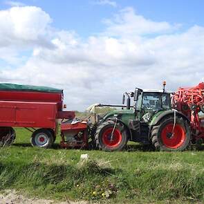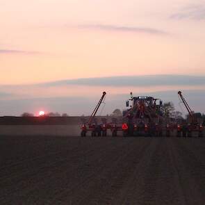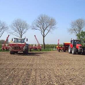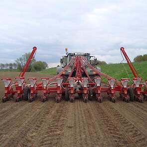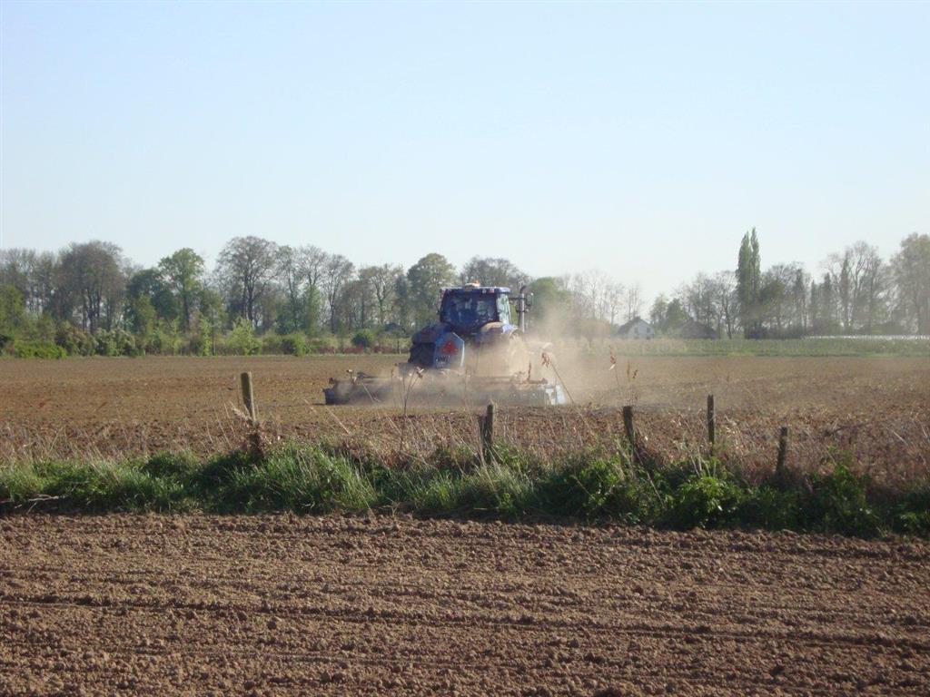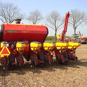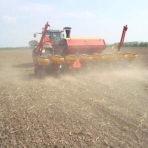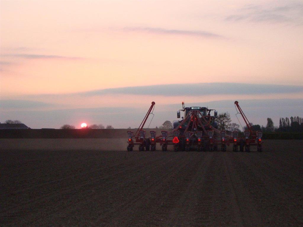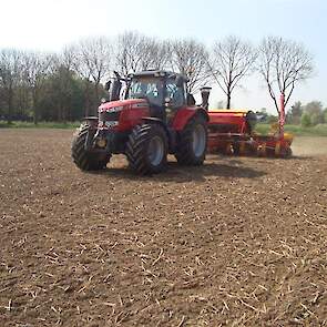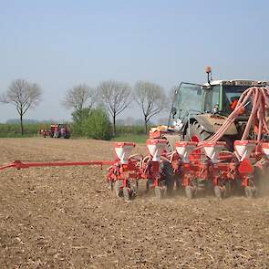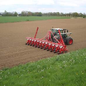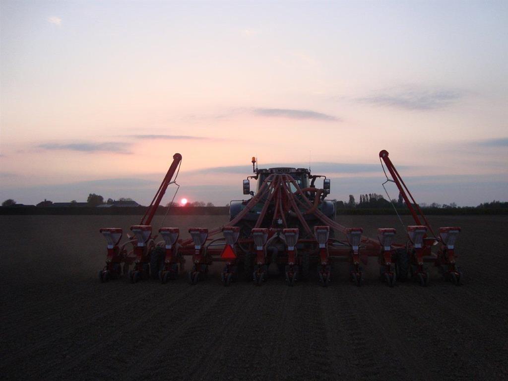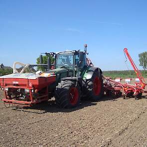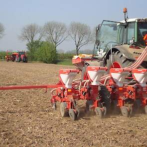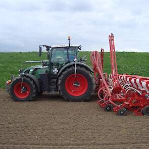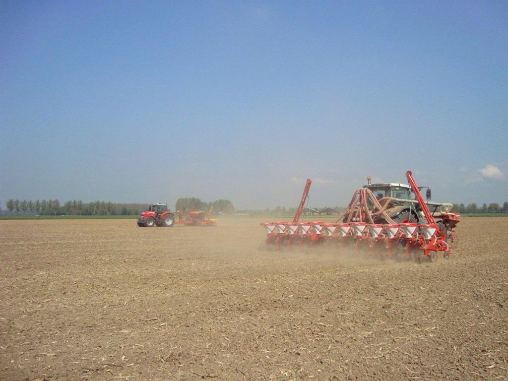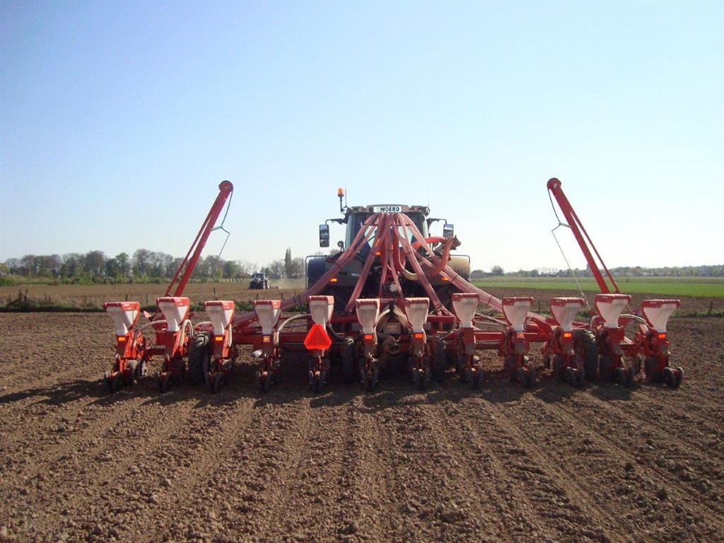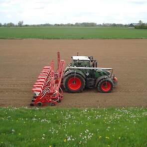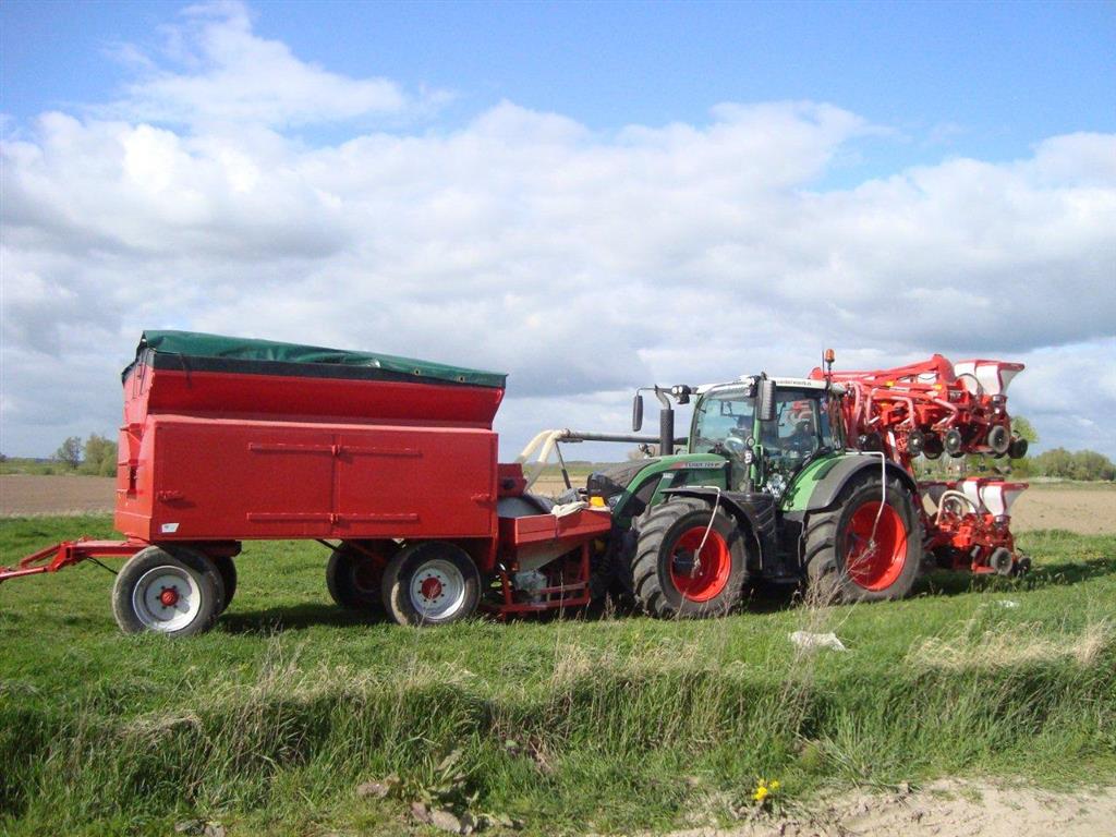 Loonbedrijf van der Woerd aan het maiszaaien met de Fendt 724