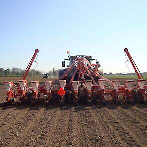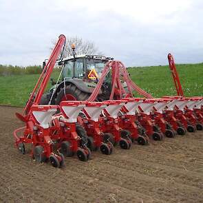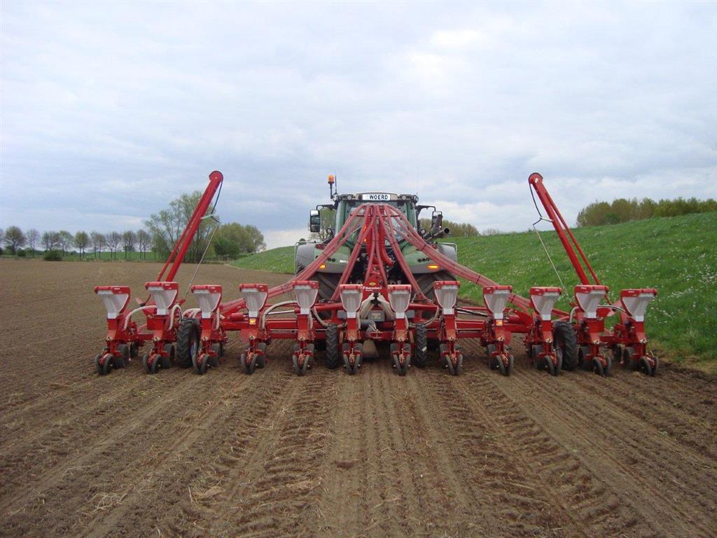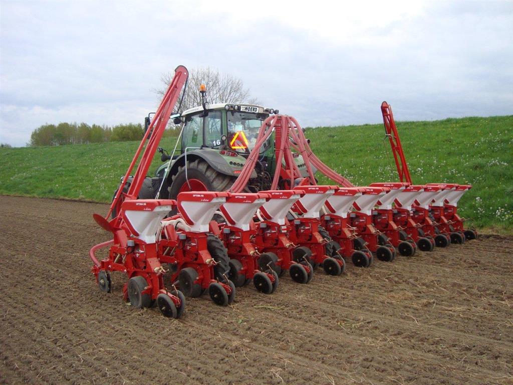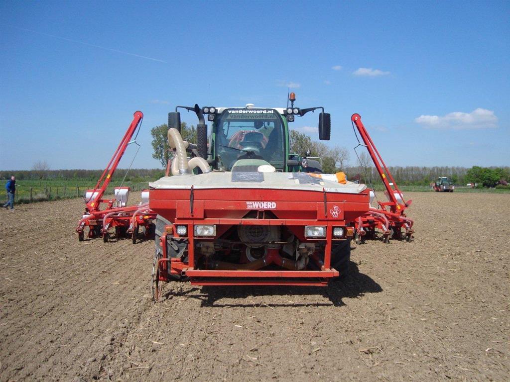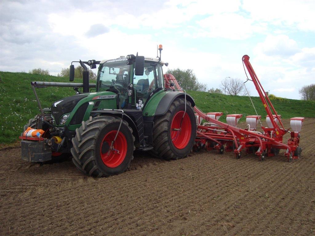 Loonbedrijf van der Woerd aan het maiszaaien met de Fendt 724 en de nieuwe 12 rijige Kverneland Optima HD samen met de VADERSTAD Tempo F8 demo tour.