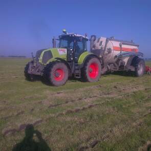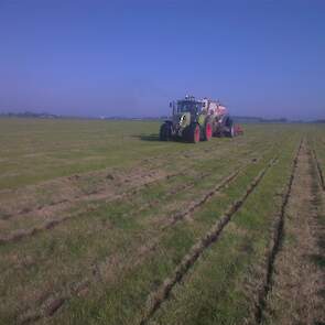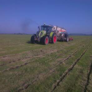 Loonbedrijf gebr. Buma aan het strokenbemesten op 75 cm op GPS