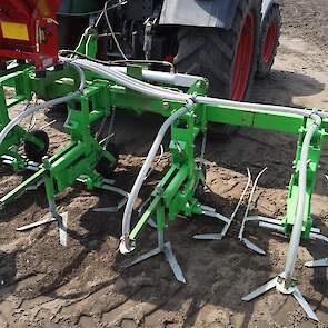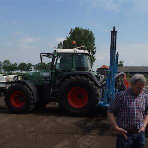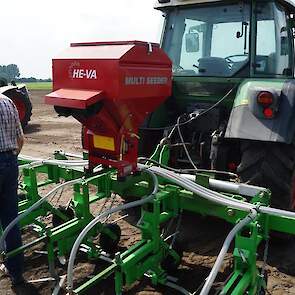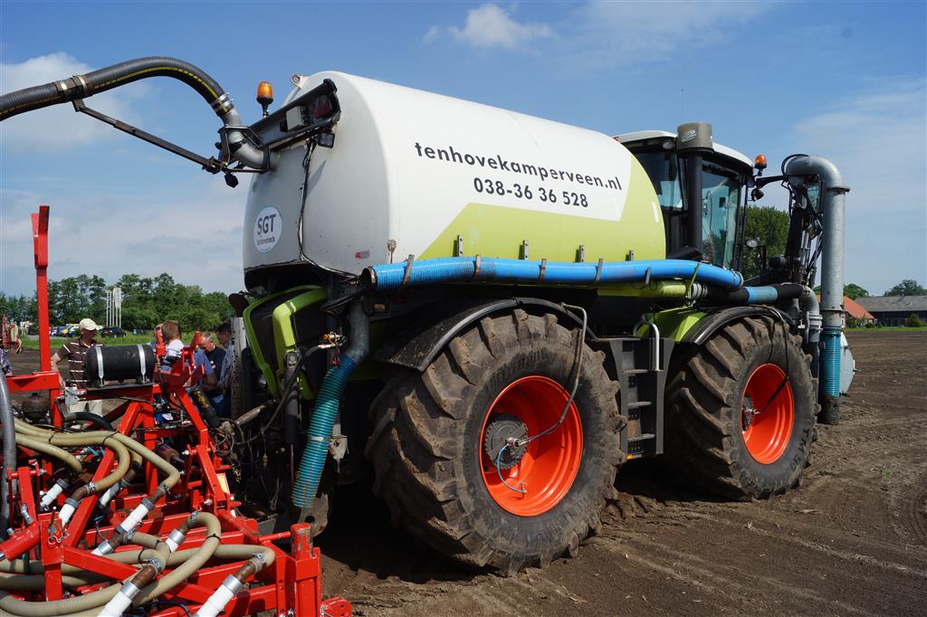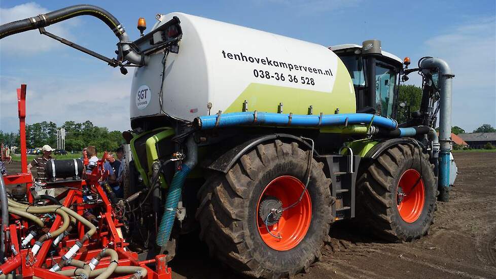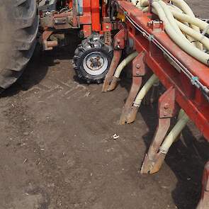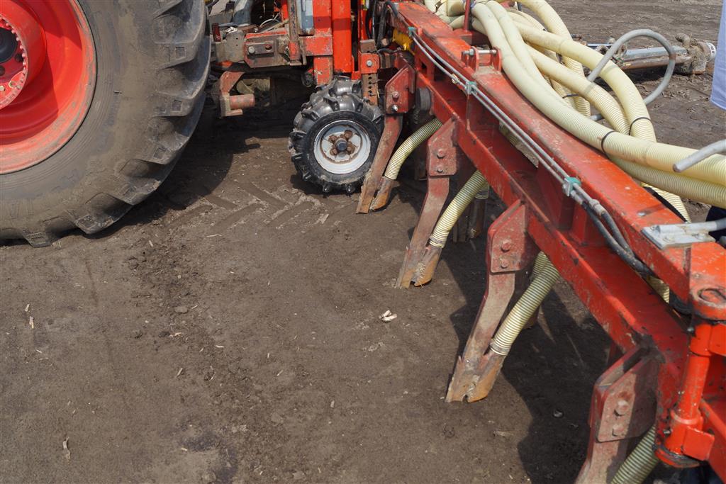 Een sleepslanginjecteur, GPS gestuurd, eveneens voor drijfmesttoediening in de rij voorafgaand aan het zaaien van mais.