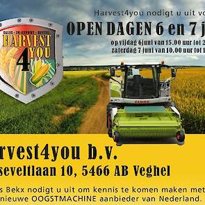 Op vrijdag 6 en zaterdag 7 juni aanstaande opent Harvest 4 You haar deuren. U vindt Harvest 4 You op Industrieterrein De Dubbelen, Rooseveltlaan 10 in Veghel.