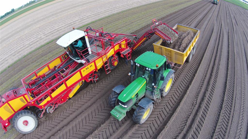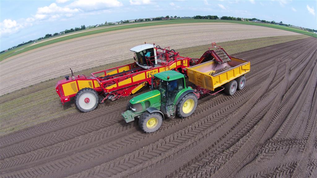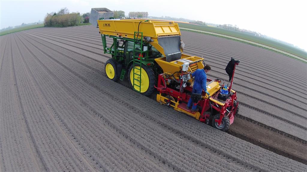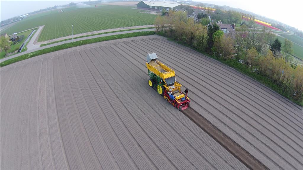 Te zien op de fotos de M.H. Zelfrijdende Bollenrooier (2x 1,5m) en van de M.H. Multi-Planter in combinatie met een M.H. Frontladerbunkerdak van, van Lierop