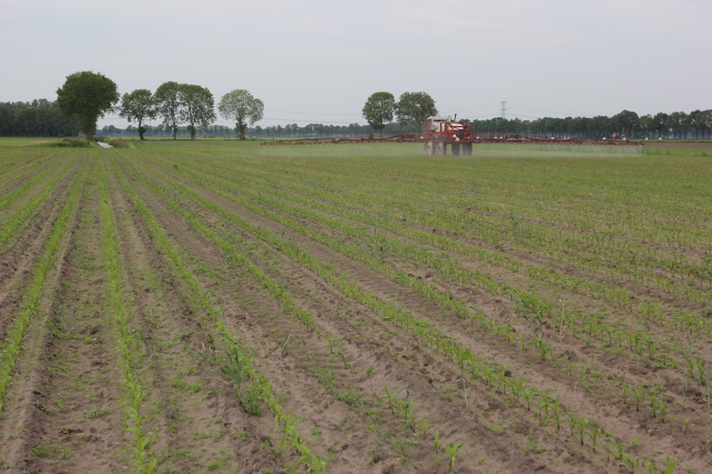 Loonbedrijf Koonstra uit Balkbrug mais aan het spuiten.