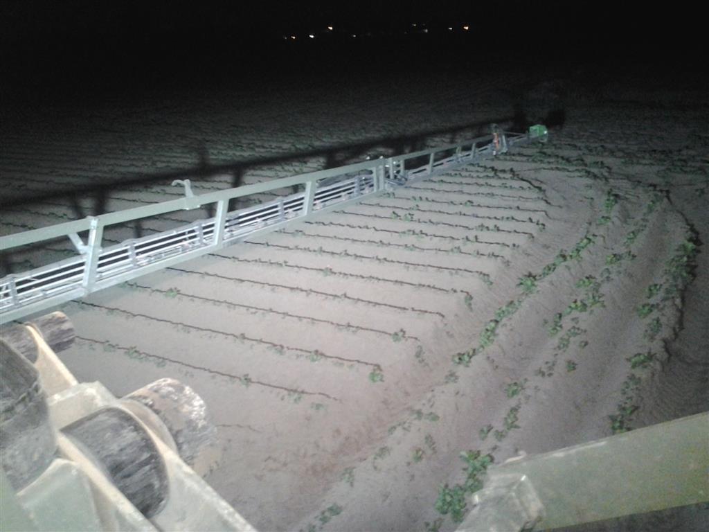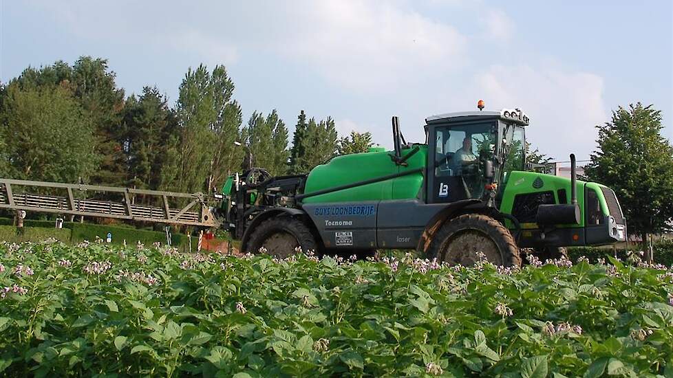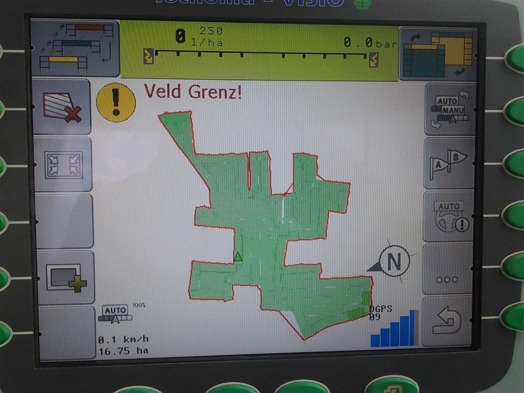 Tarwe, gerst, aardappelen, bieten en zelfs kerstbomen worden behandeld. De machine is ook uitgerust met speciale 7-straals meststofdoppen om perfect vloeibare stikstof te kunnen toedienen. De machine is voorzien van alle denkbare opties die leverbaar zijn bij Tecnoma zoals GPS gestuurde sectie-controle, Novaflow vulinrichting met middeleninjectie, boomcontrol voor automatische boomhoogteregeling, speciaal reinigingsprogramma voor zowel tank als spuitboom te reinigen, spoorbreedte traploos verstelbaar van 1m80 tot 2m80,....Verder zijn nog extra Hella Powerbeam werklichten bijgeplaatst om ook 's nachts over voldoende verlichting te beschikken bij het spuiten. Een stel smalle cultuurwielen en een extra stel 600 brede banden zorgen er voor dat in alle omstandigheden kan worden gespoten.