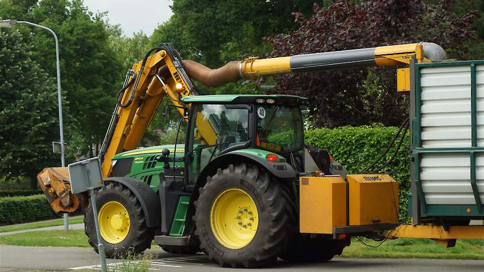 John Deere 6140R met Hemos aan het bermenmaaien Trekkerweb