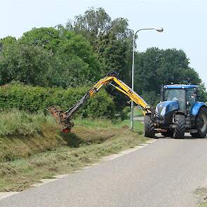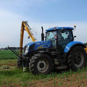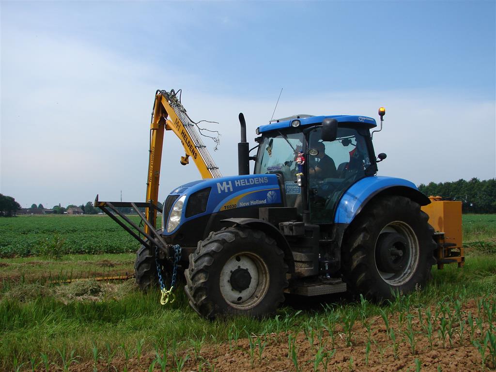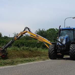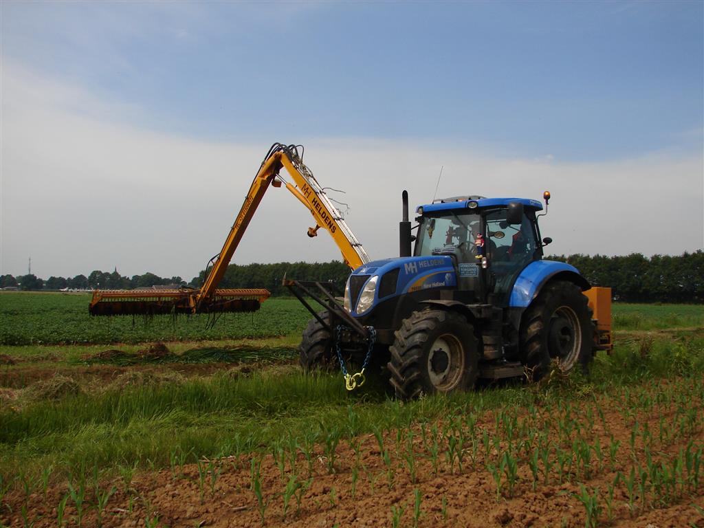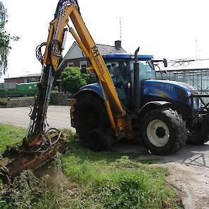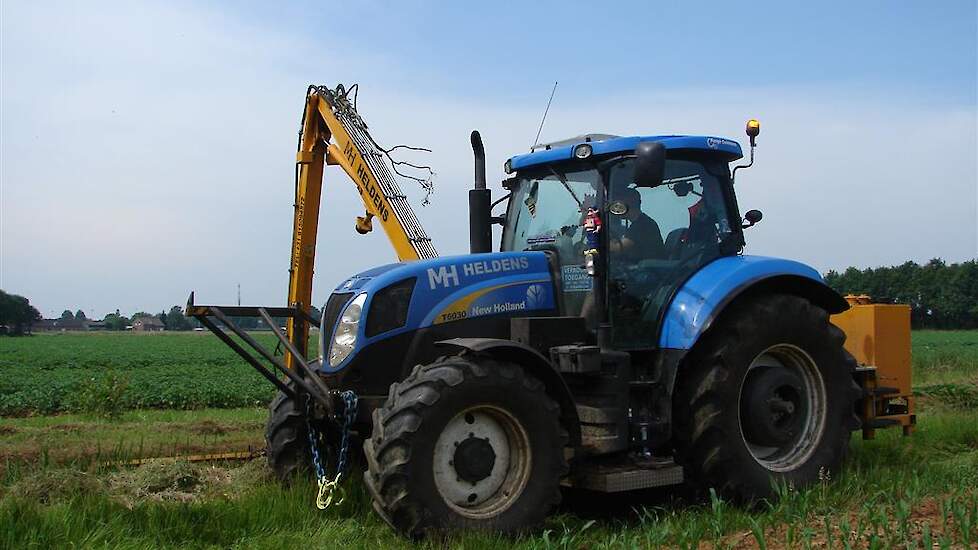 In Velden (Limburg) is M. Heldens Maaiwerk bermen en beken aan het maaien. de trekkers die daar voor gebruikt worden zijn een