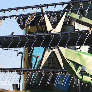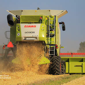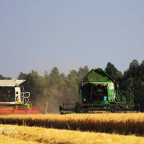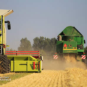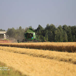 Twee rassen worden afzonderlijk van elkaar gemaaid voor gewasveredeling. De John Deere 9780 CTS is van akkerbouwer Van Woerden Flevo BV en de Claas Lexion 670 Terra Trac is van Blitterswijk Agro.