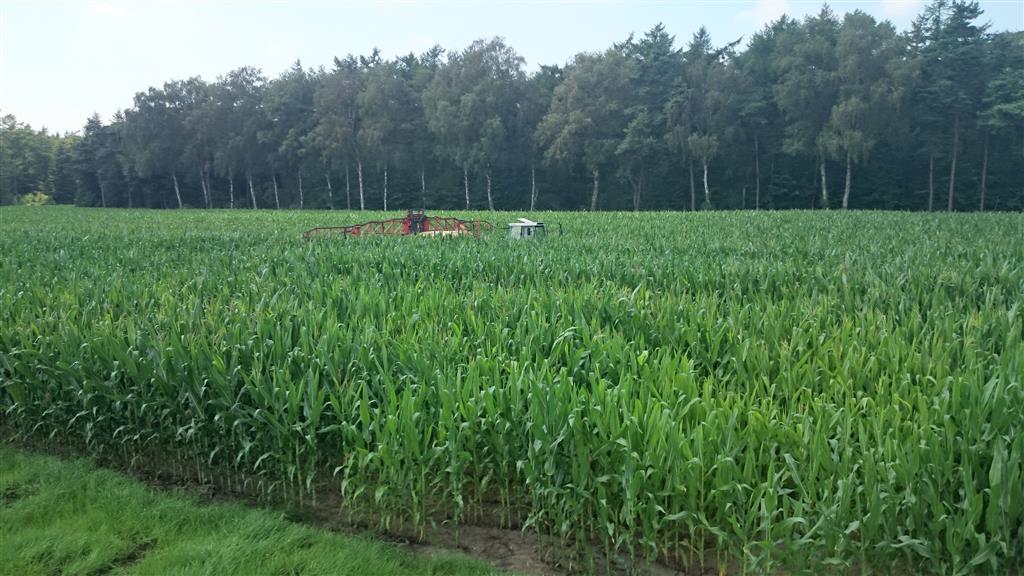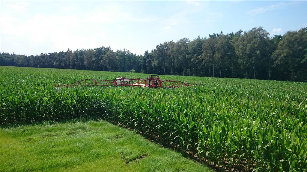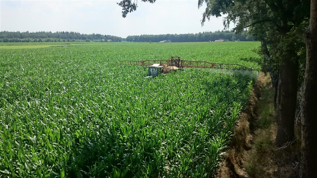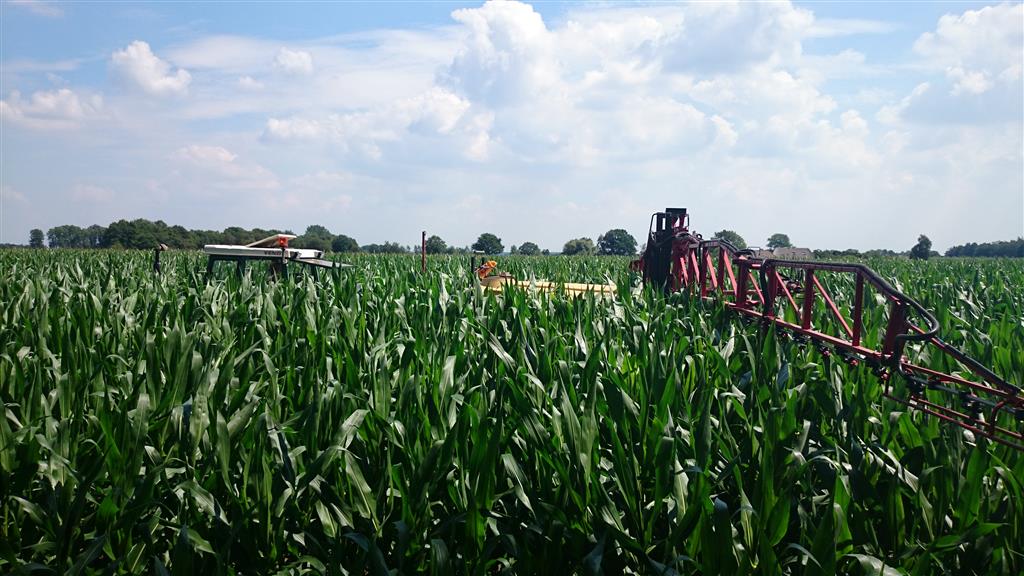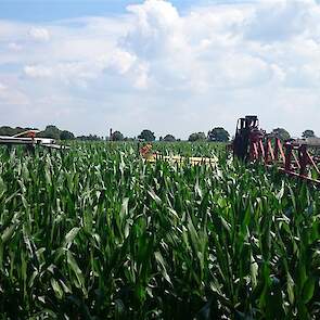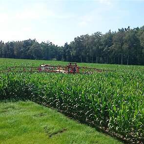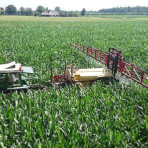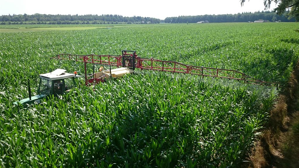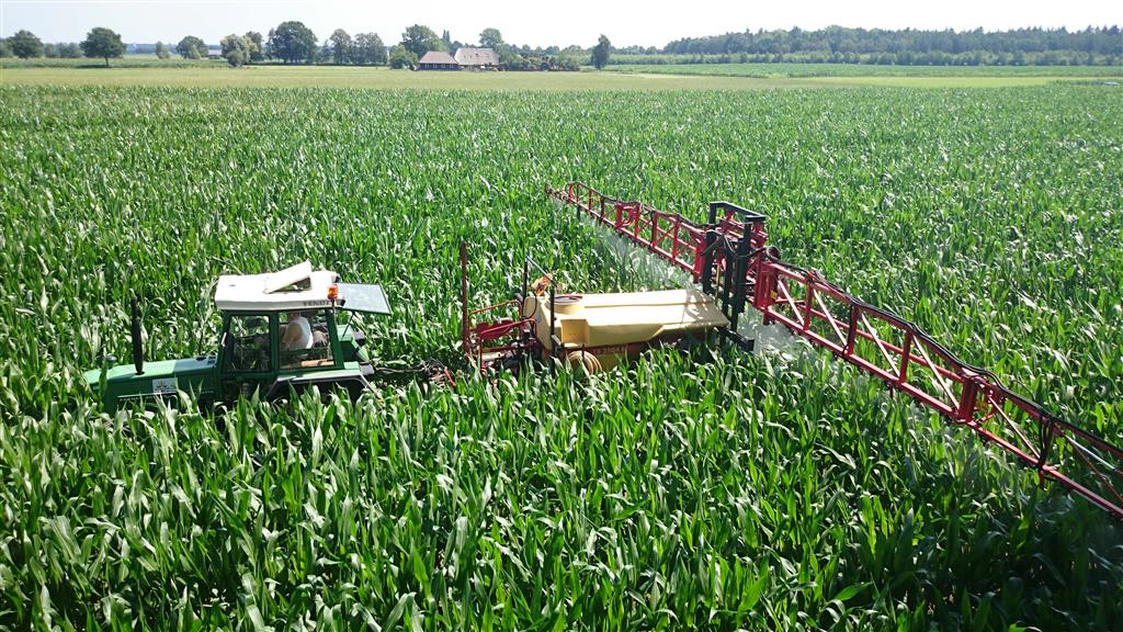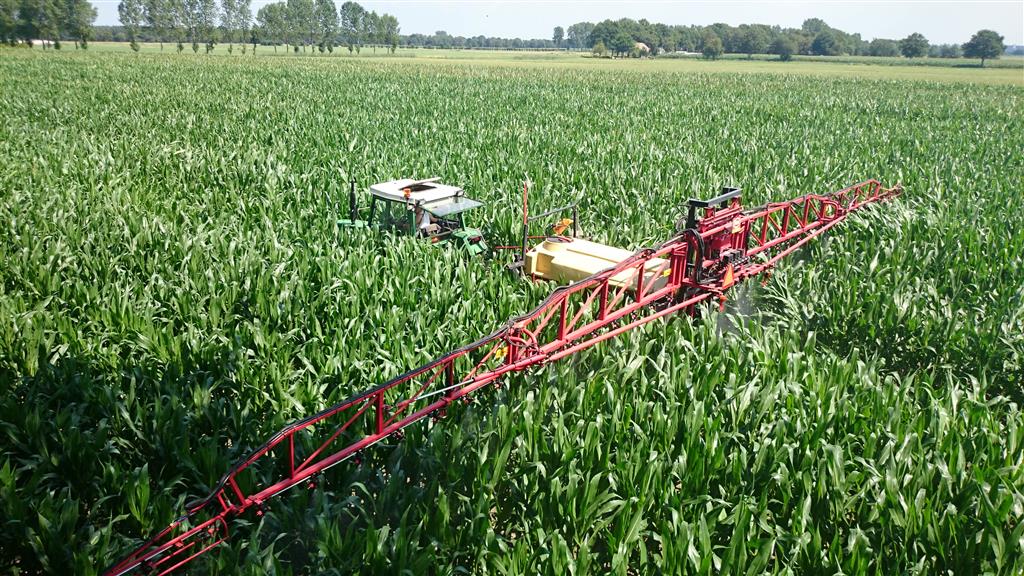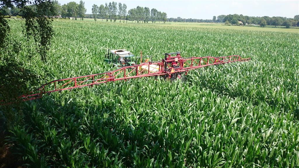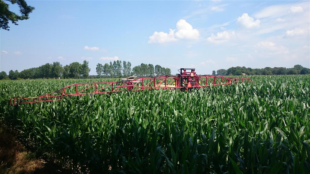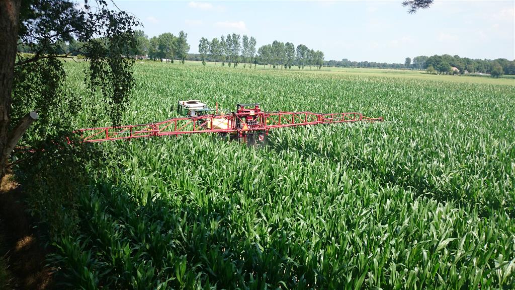 Loonbedrijf van Der Vegt uit Marienheem Ze zijn hier in de mais aan het spuiten tegen de bladvlekkenziekte