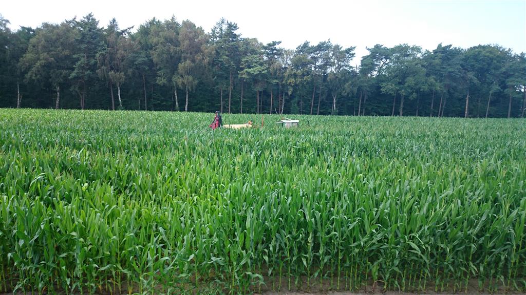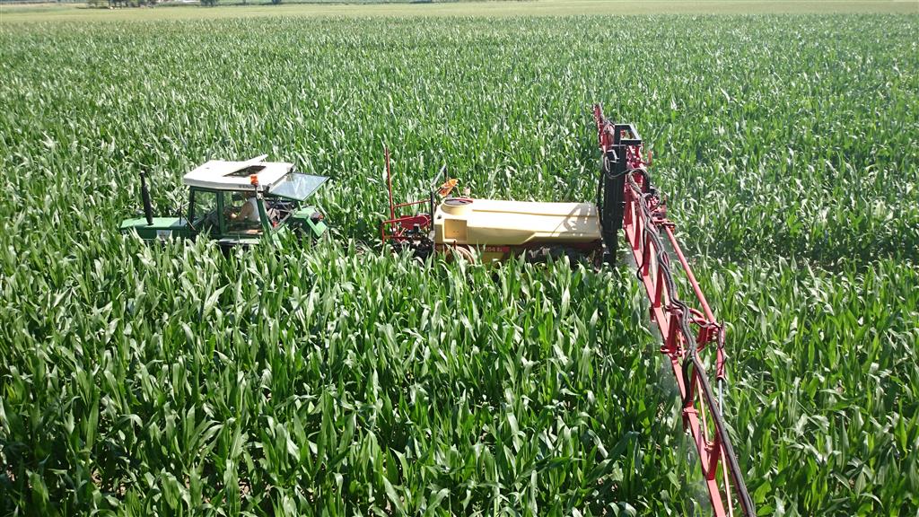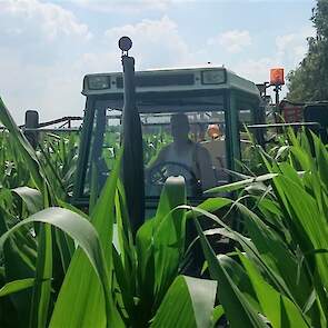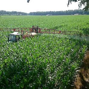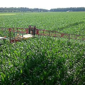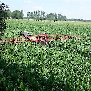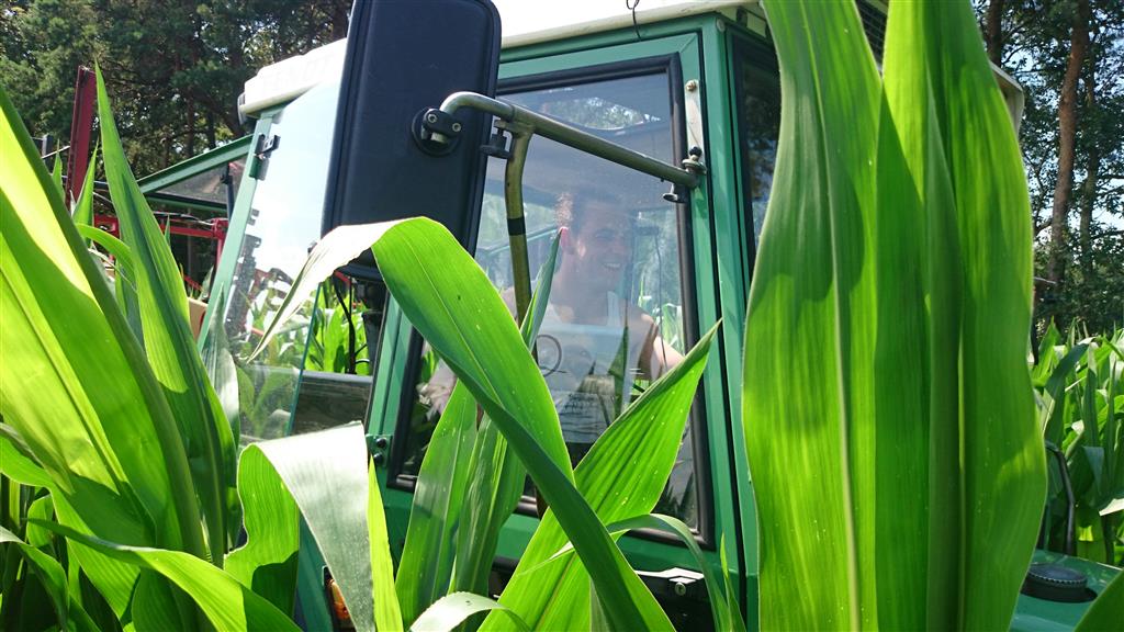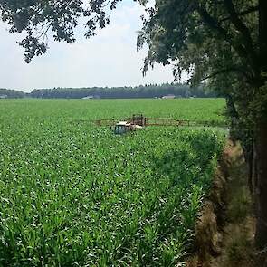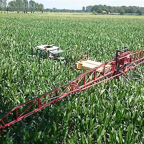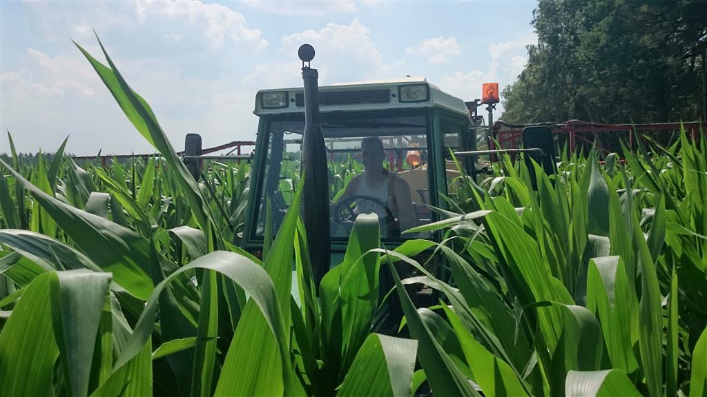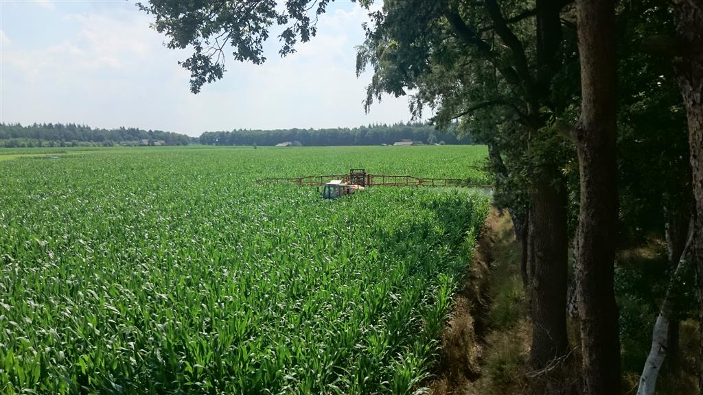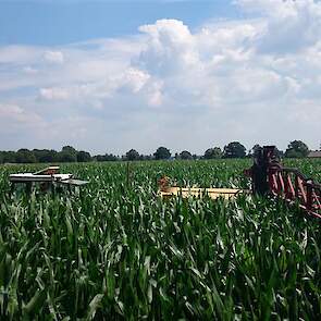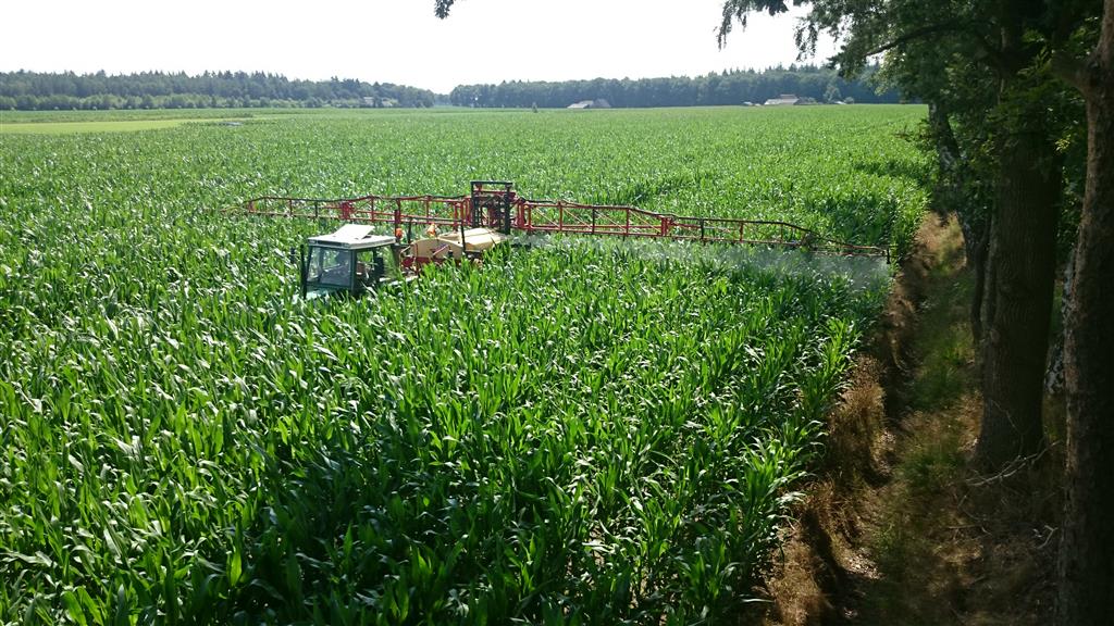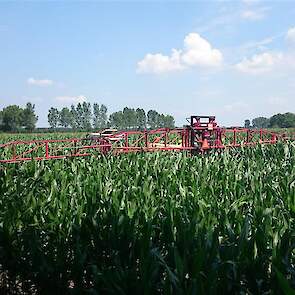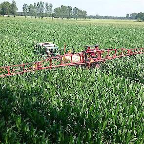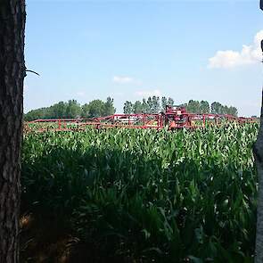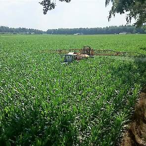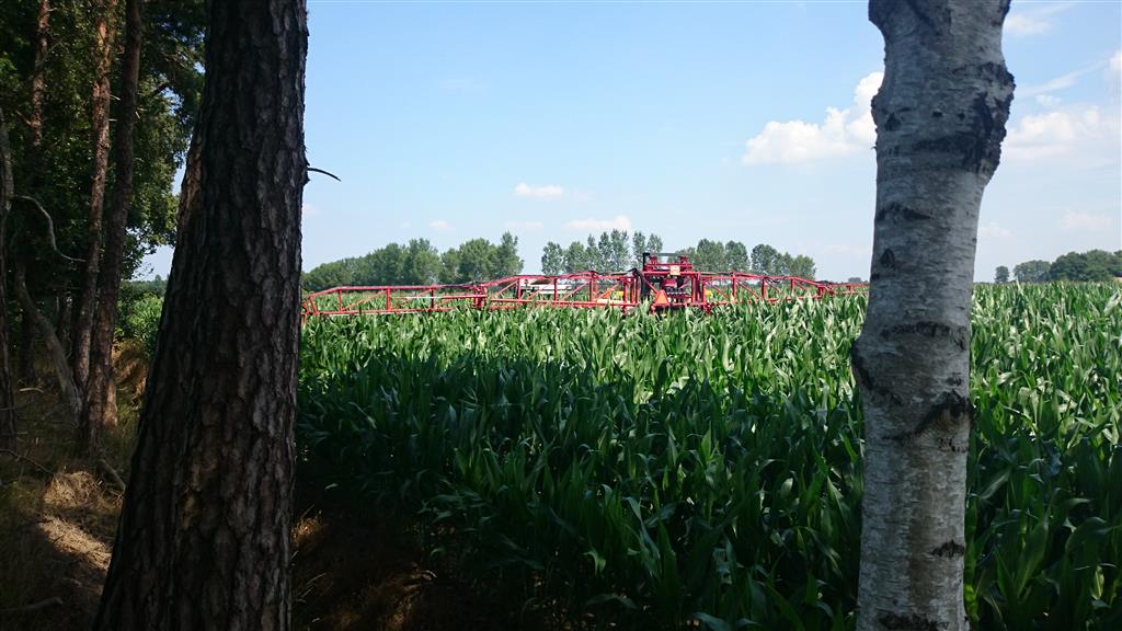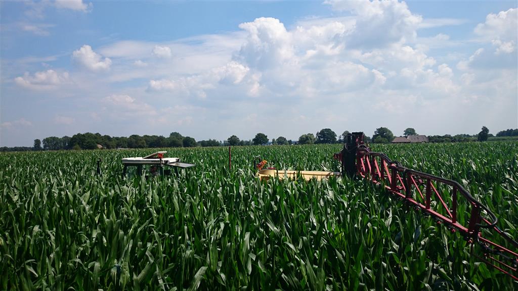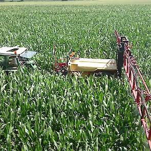 Loonbedrijf van Der Vegt uit Marienheem Ze zijn hier in de mais aan het spuiten tegen de bladvlekkenziekte