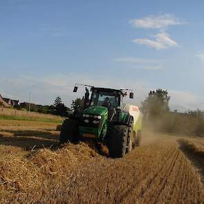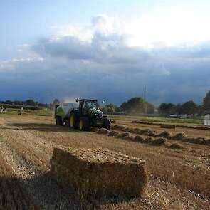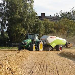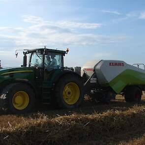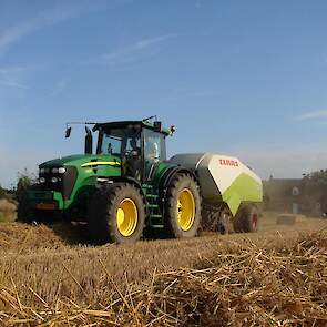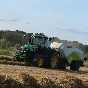 in Velden (Limburg) heeft O.S. Fouragehandel strobalen geperst. dit gebeurde met een John deere 7930 + Claas Quadrant 3200 Fine cut