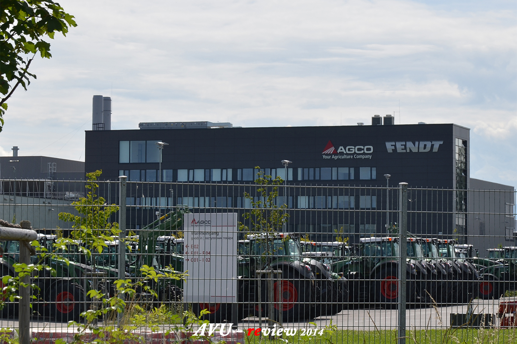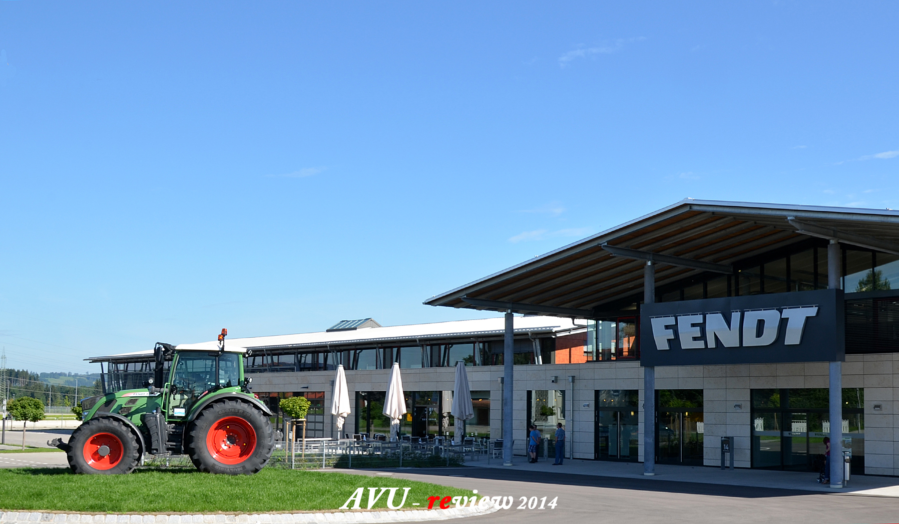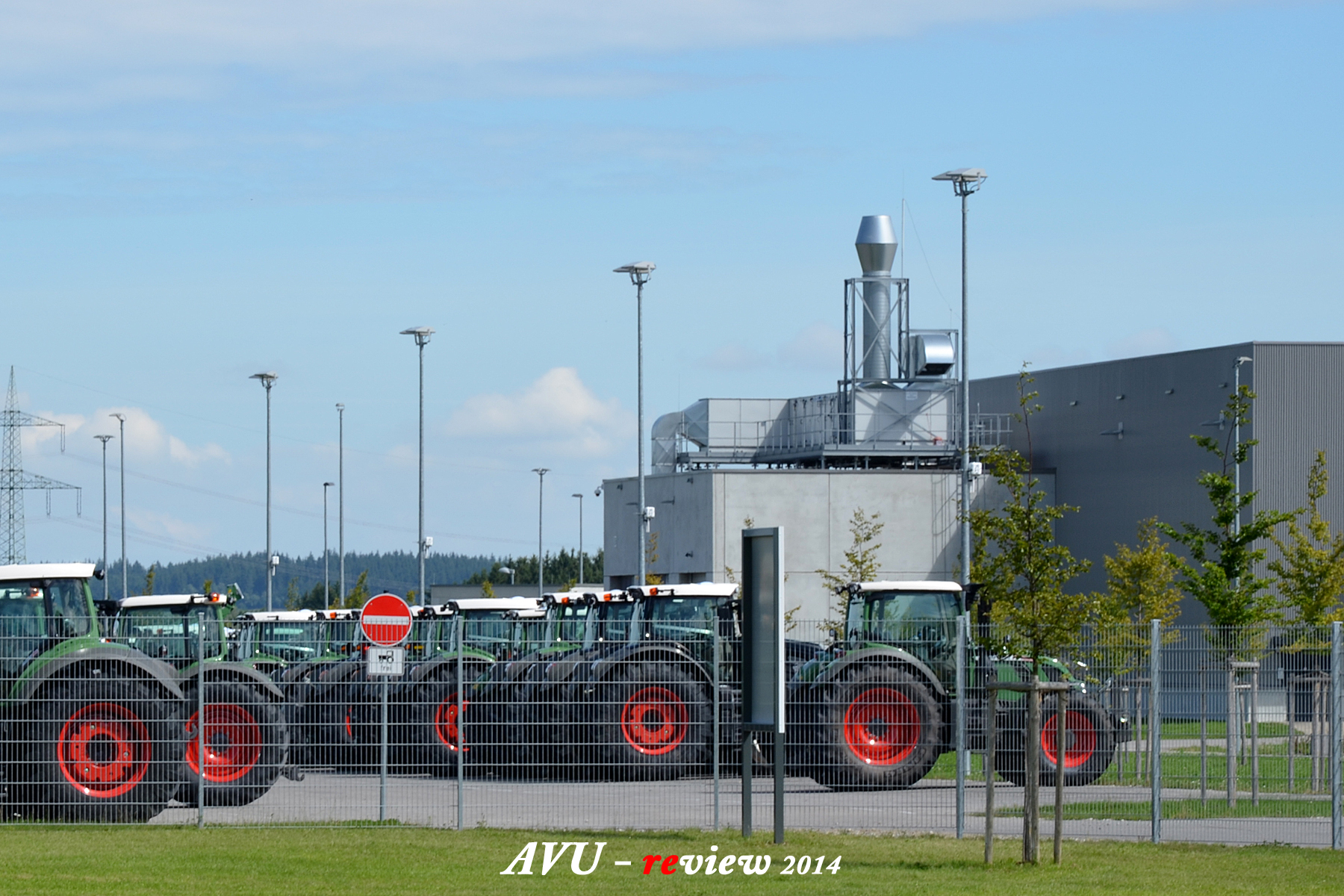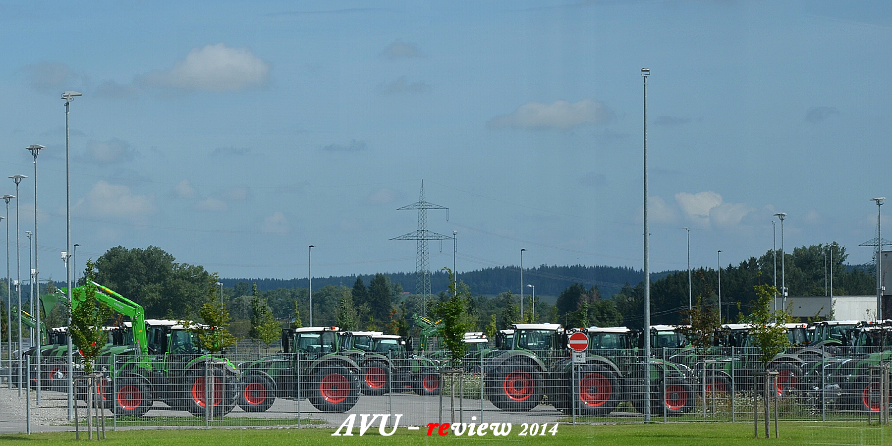 Bij het fabrieksterrein van Fendt in Marktoberdorf. Een kolossale trekker voorzien van enorme gewichten aan de voorzijde, in de achterwielen en in de hef. Bij het wegtrekken, wat enorm soepel en snel in zijn werk ging, zorgde deze 1050 voor een enorme snelheid in enkele seconden, waarbij ook wat bochten genomen werden, en deze trekker dus als een racetrekker getest werd.