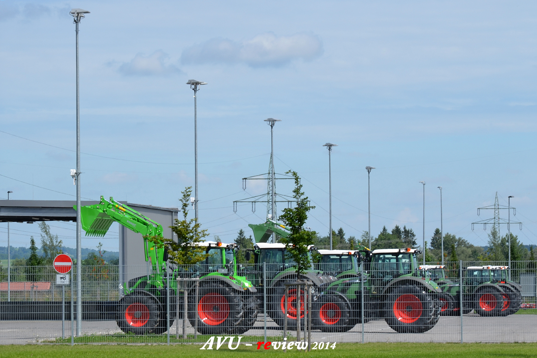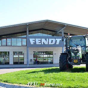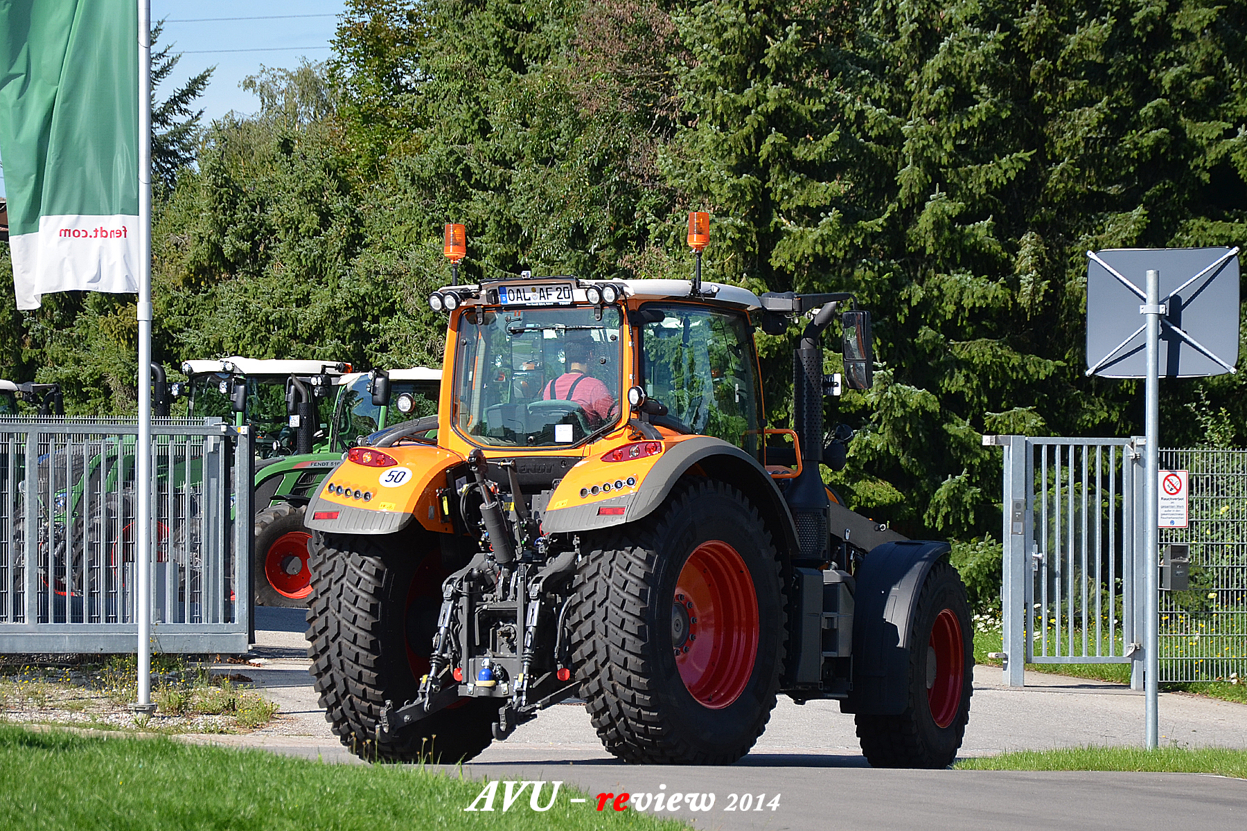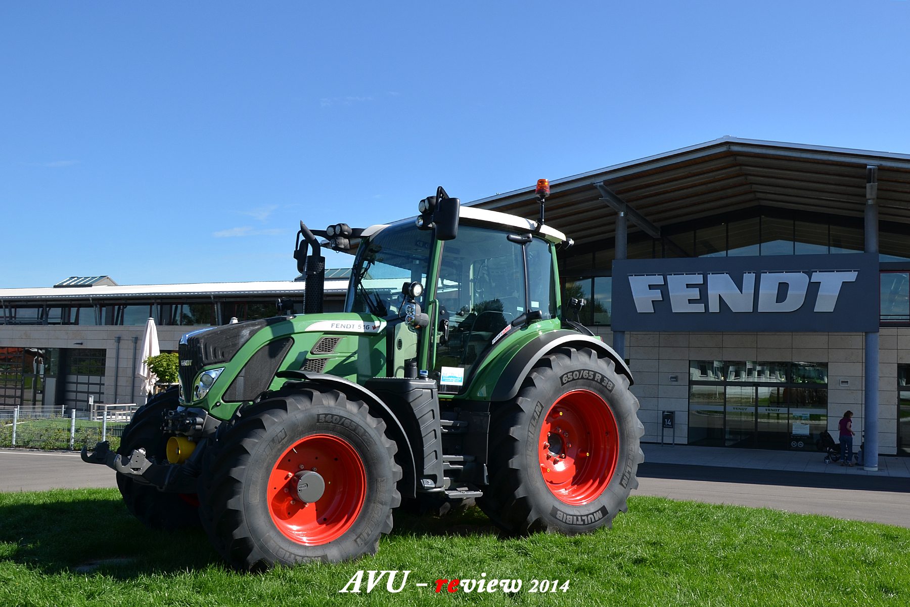 Bij het fabrieksterrein van Fendt in Marktoberdorf. Een kolossale trekker voorzien van enorme gewichten aan de voorzijde, in de achterwielen en in de hef. Bij het wegtrekken, wat enorm soepel en snel in zijn werk ging, zorgde deze 1050 voor een enorme snelheid in enkele seconden, waarbij ook wat bochten genomen werden, en deze trekker dus als een racetrekker getest werd.