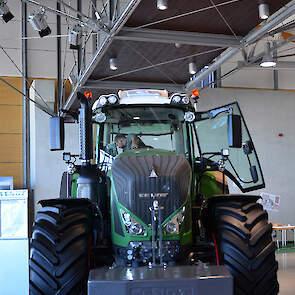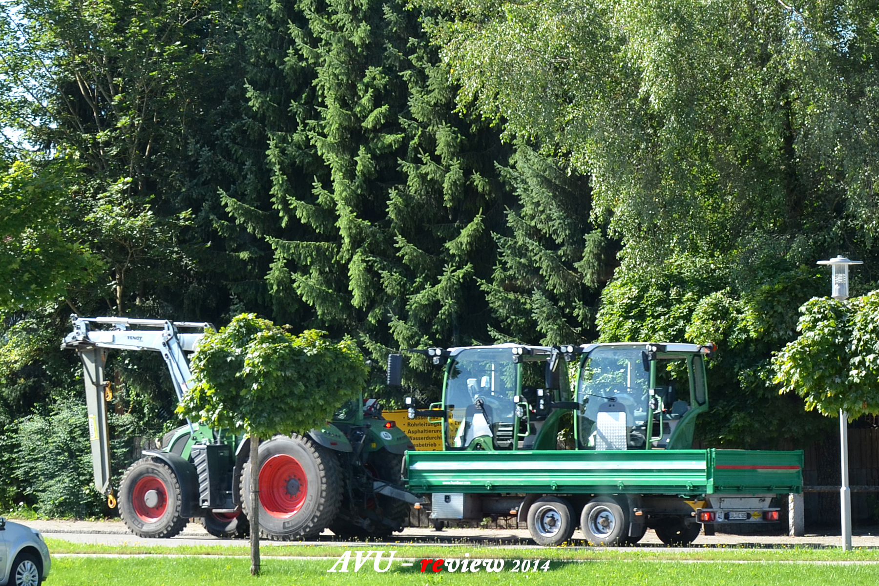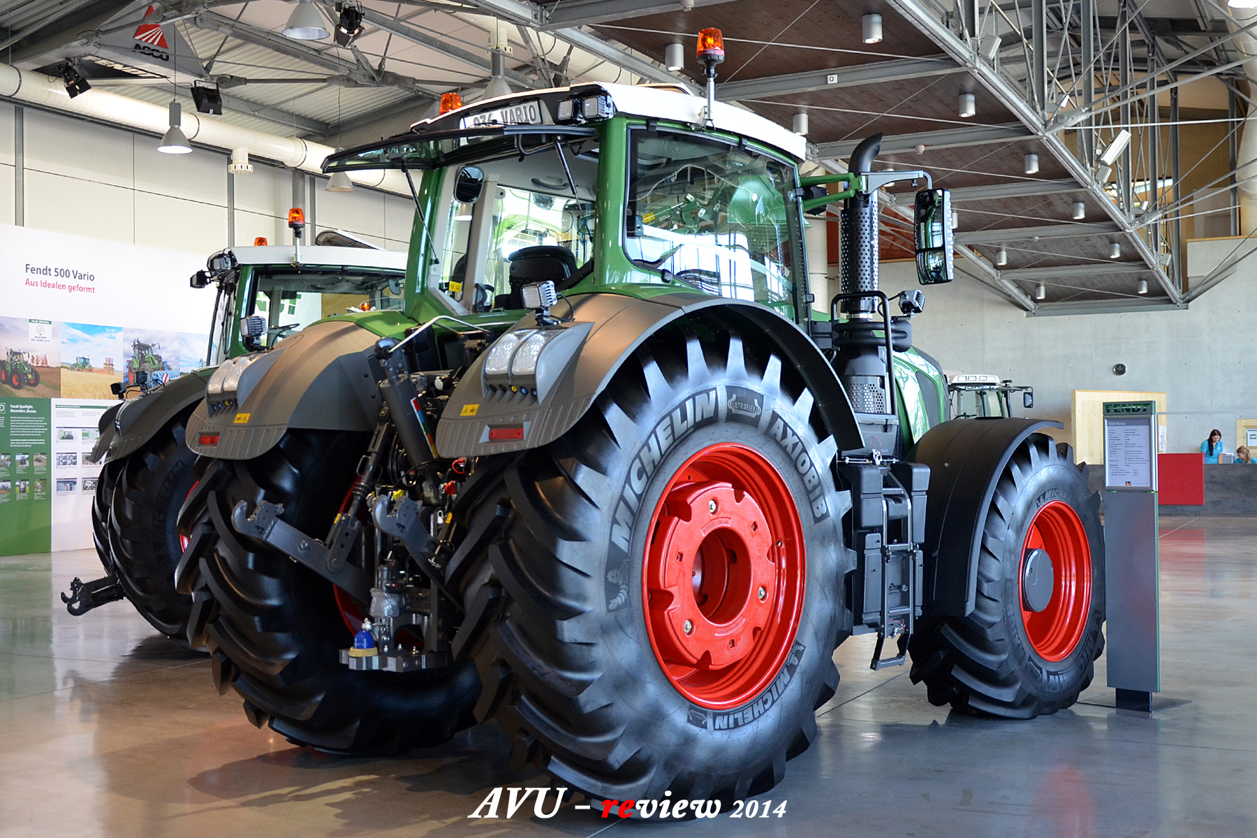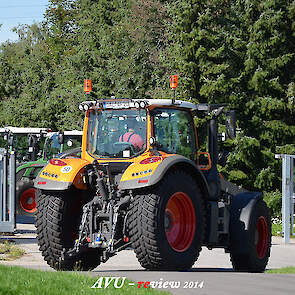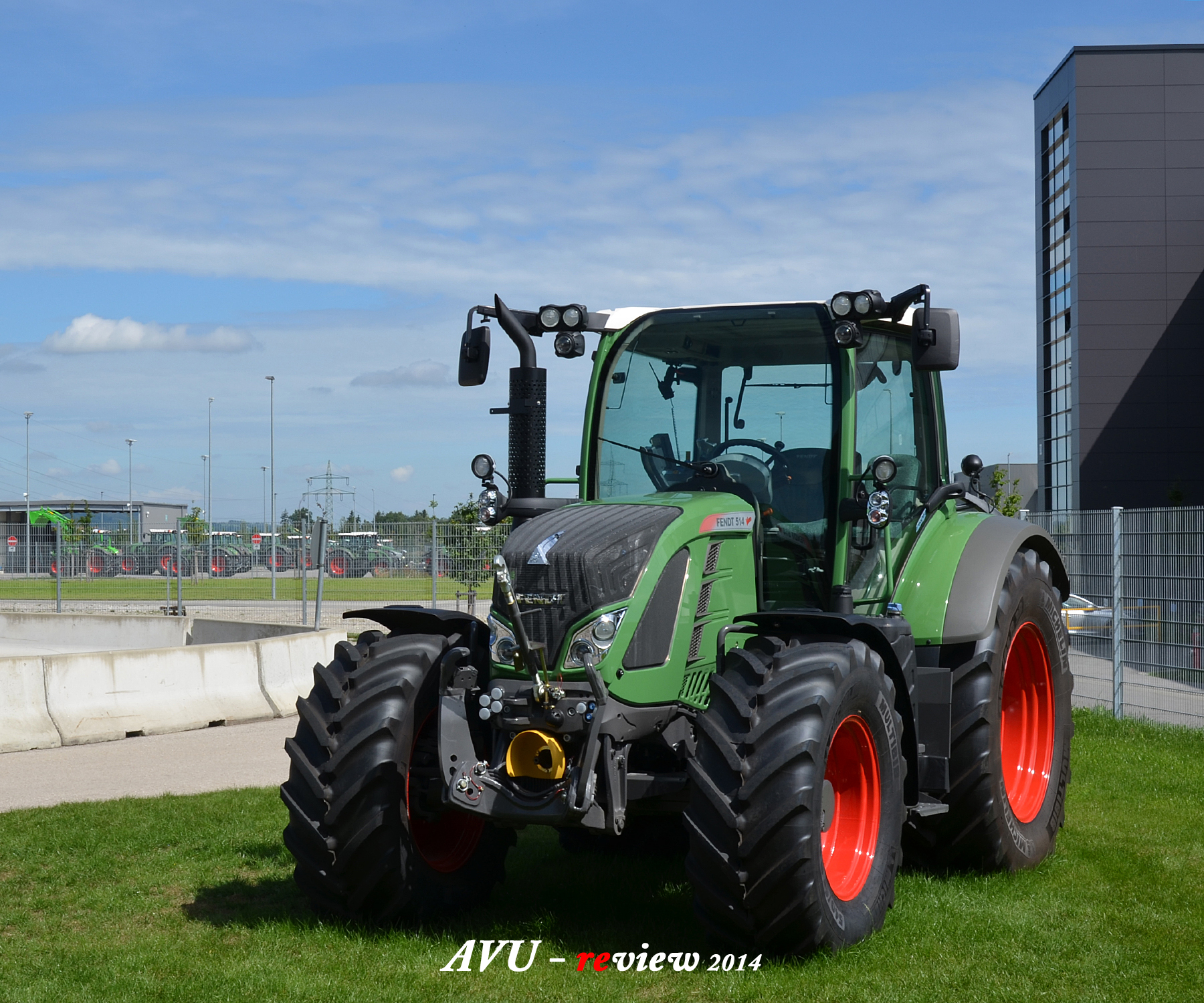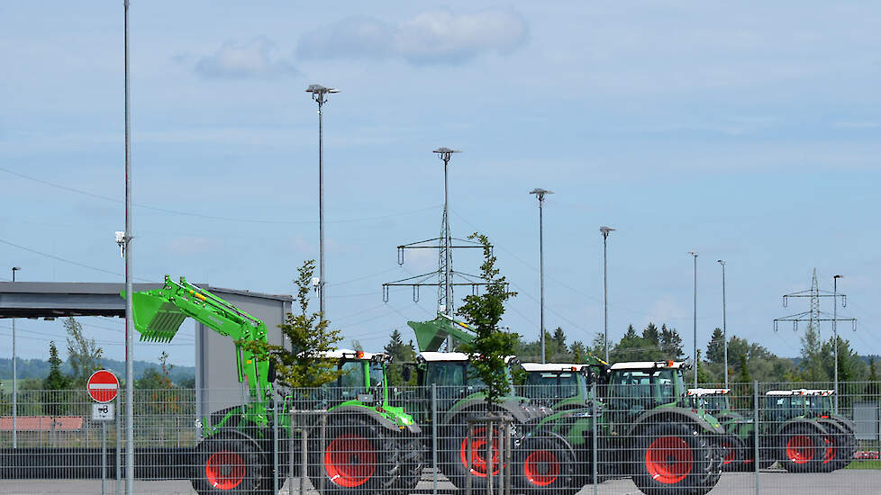 Bij het fabrieksterrein van Fendt in Marktoberdorf. Een kolossale trekker voorzien van enorme gewichten aan de voorzijde, in de achterwielen en in de hef. Bij het wegtrekken, wat enorm soepel en snel in zijn werk ging, zorgde deze 1050 voor een enorme snelheid in enkele seconden, waarbij ook wat bochten genomen werden, en deze trekker dus als een racetrekker getest werd.